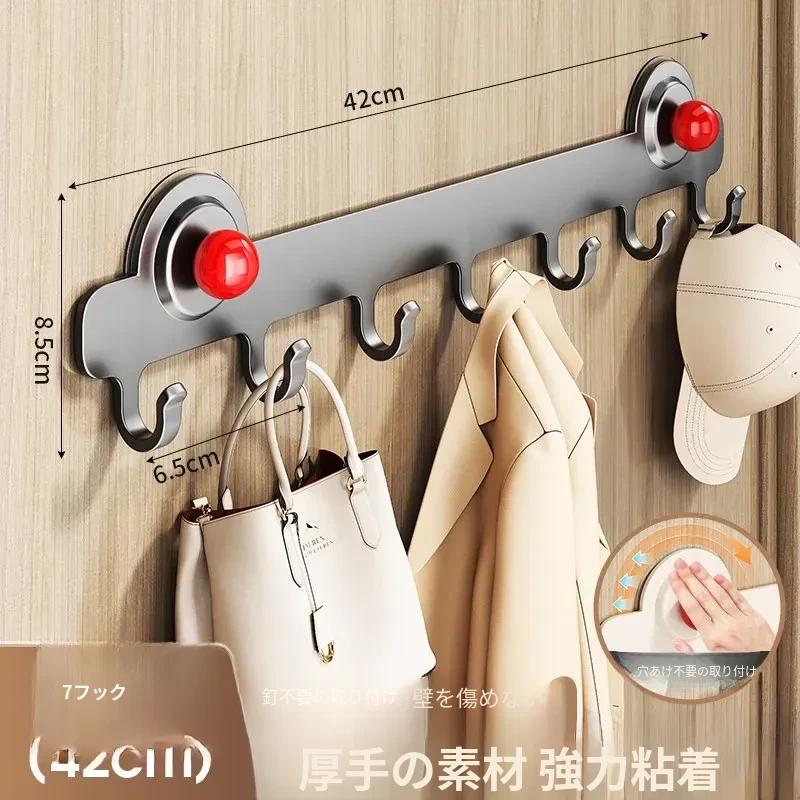 吸盤ドア裏-グレー単フック-7フック【強力吸着/穴あけ不要】