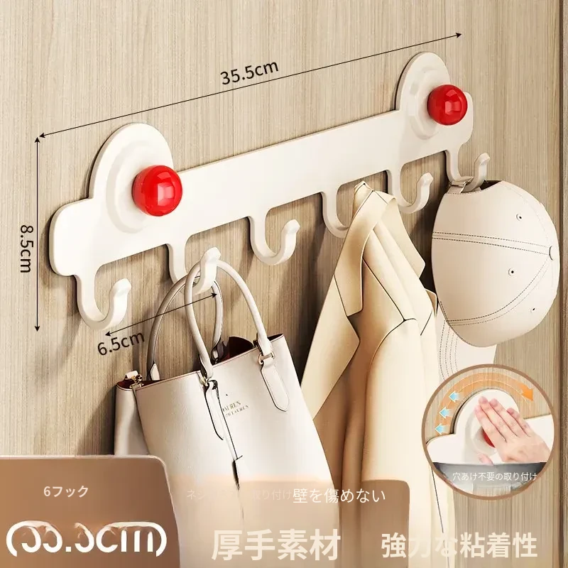 吸盤ドア裏-クリームホワイト単フック-6フック【強力吸着/穴あけ不要】