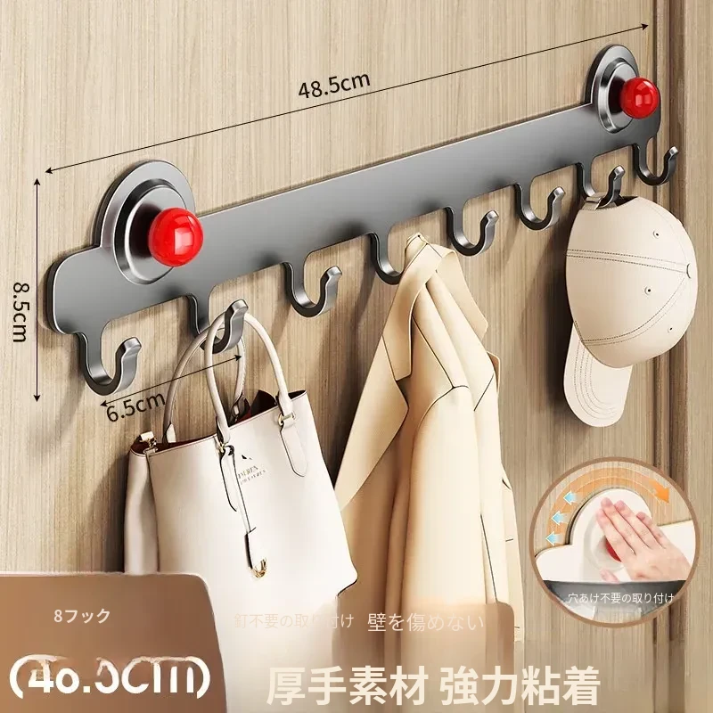 吸盤ドア裏-グレー単フック-8フック【強力吸着/穴あけ不要】