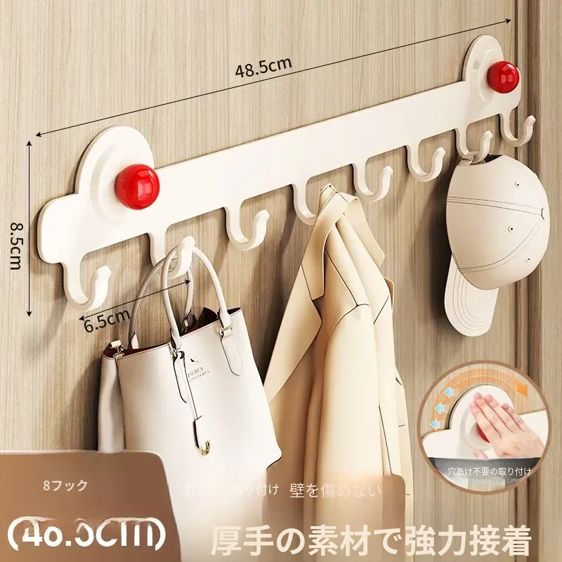 吸盤ドア裏-クリームホワイト単フック-8フック【強力吸着/穴あけ不要】