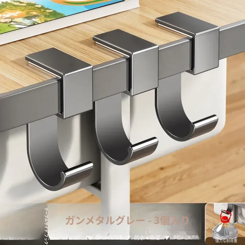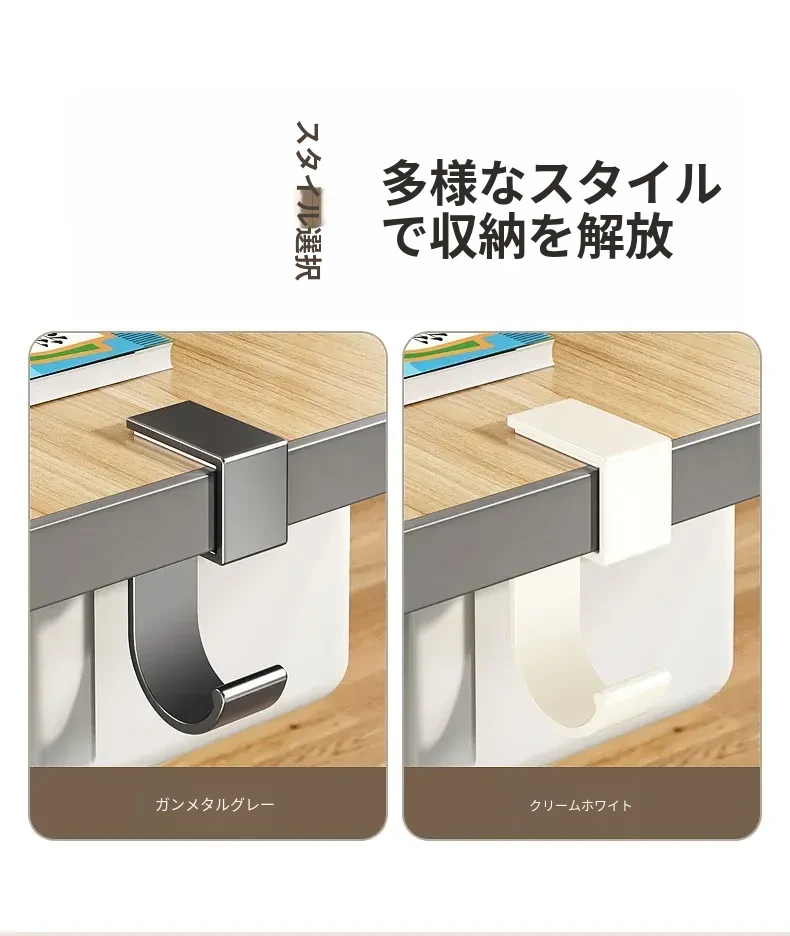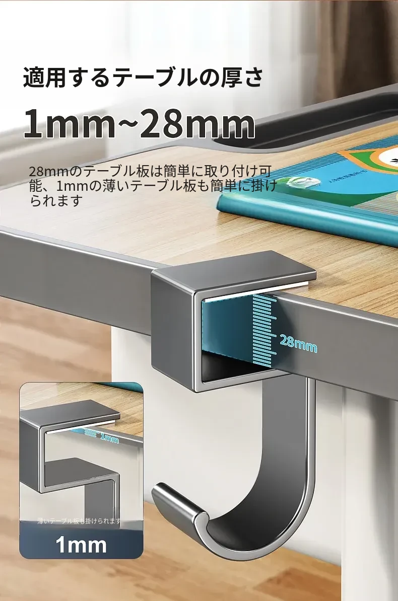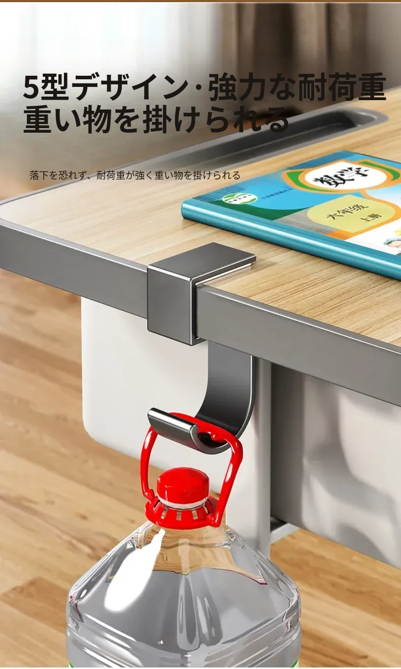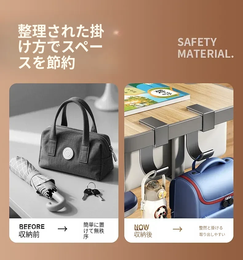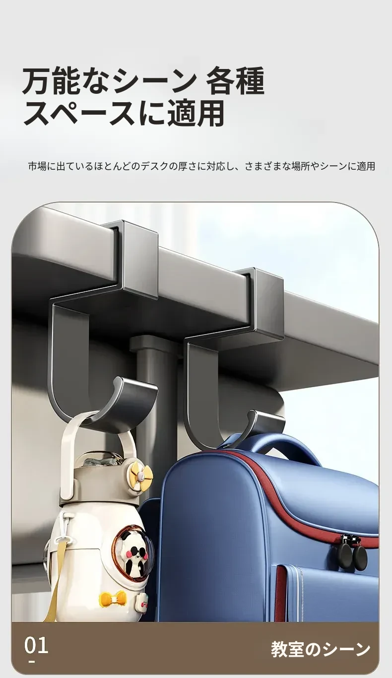 学生用デスクサイドフック - 穴を開けずに取り付け可能!強力耐荷重で教室のデスクに最適!バッグや水筒、傘をスッキリ整理できる便利な収納ラックです。