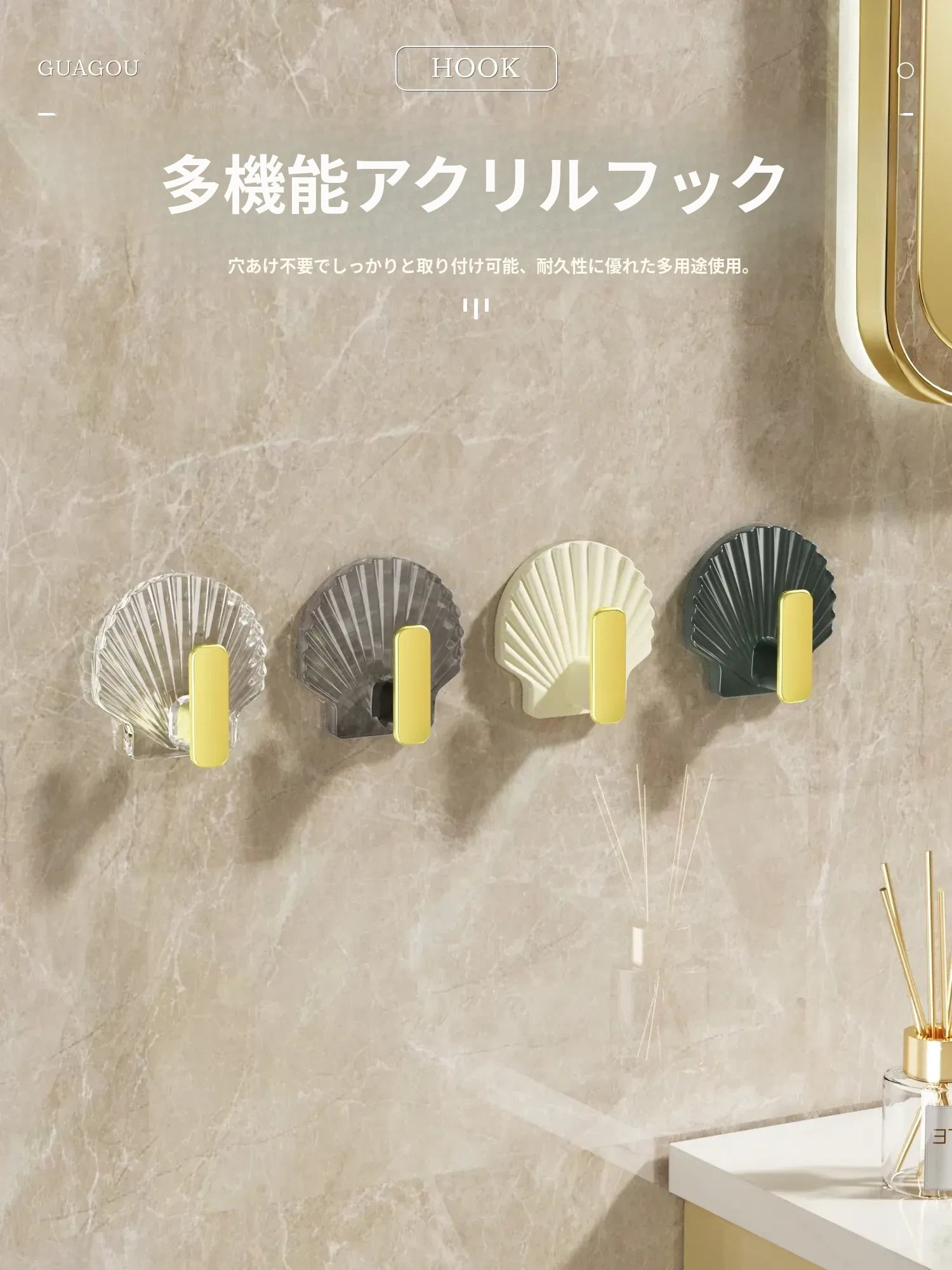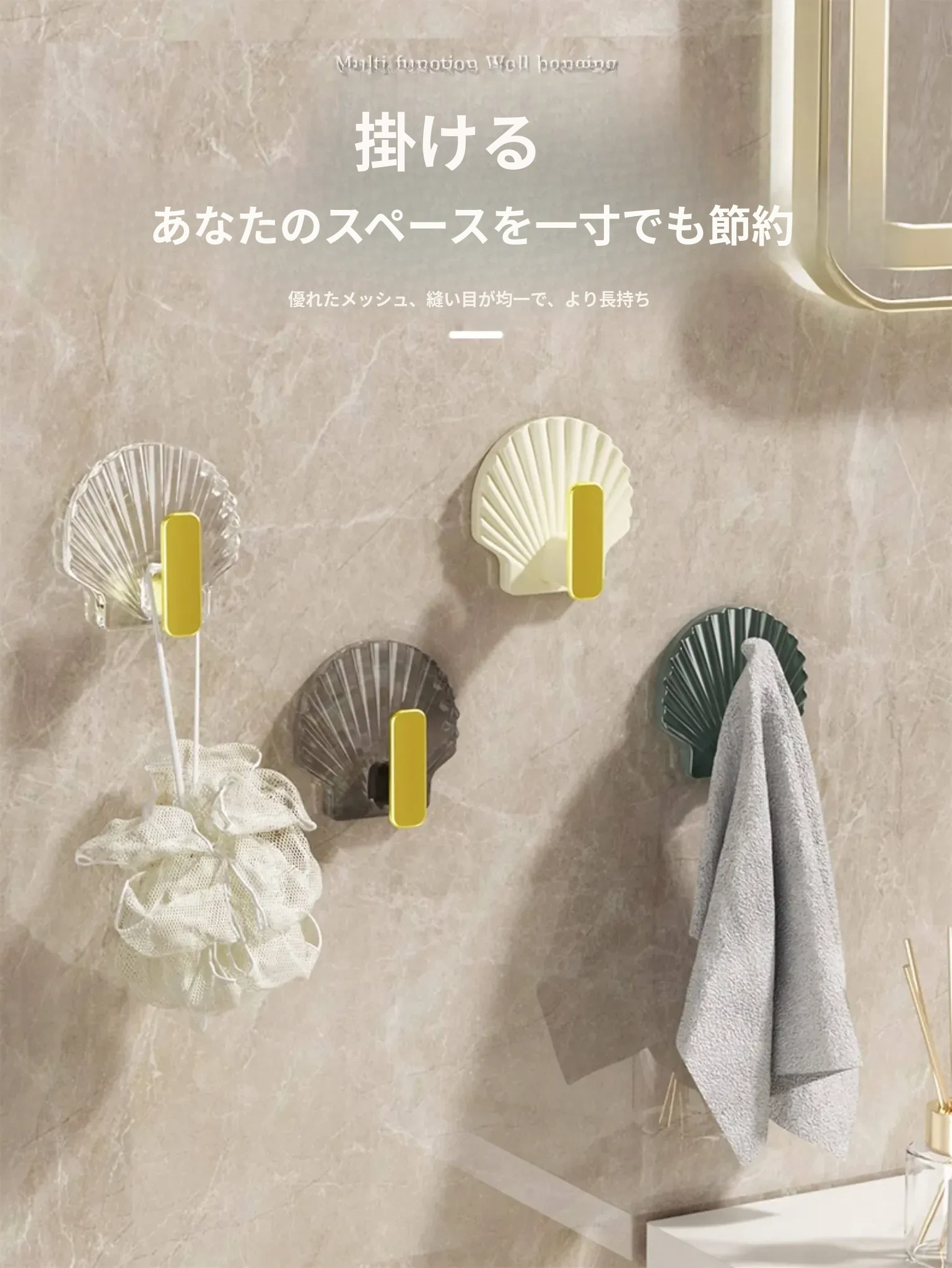 軽やかにスタイルアップ!強力粘着フック - 穴を開けずに取り付け可能なバスルーム・トイレ用壁掛けフック。後ろのドアにも取り付けられ、跡が残らない衣類フックで、すっきりした空間を実現!