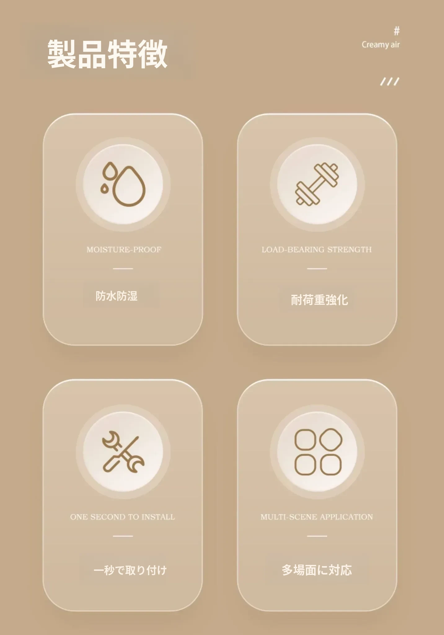 クリームホワイト【4個セット】ラグジュアリーシェルフック