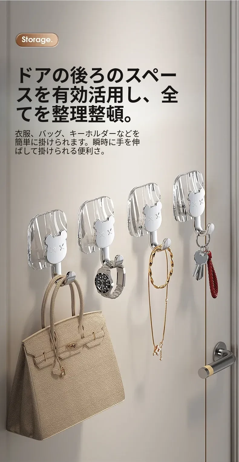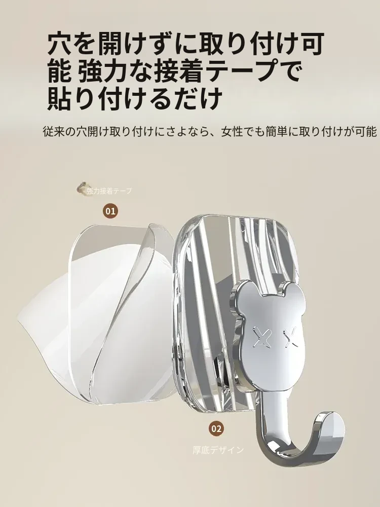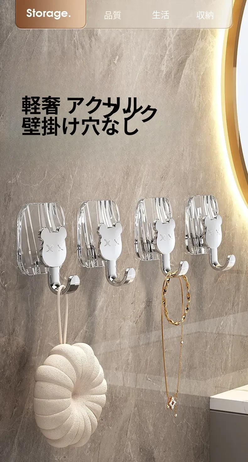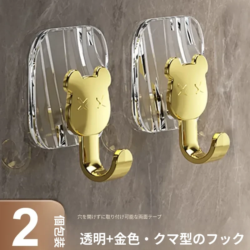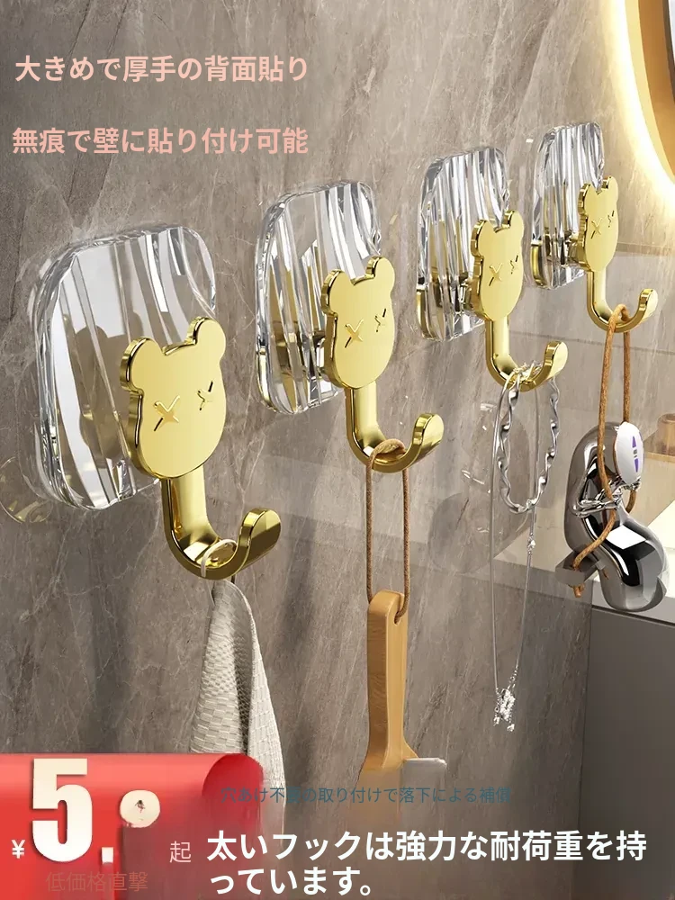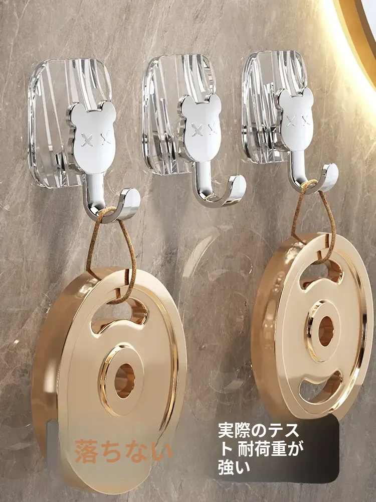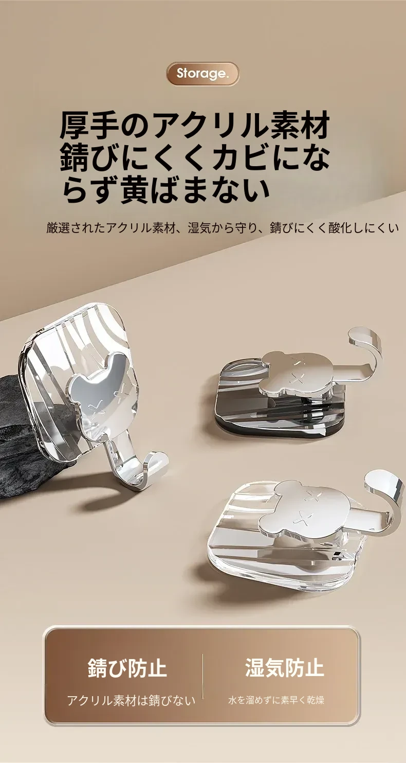 軽やかな高級感!強力耐荷重・穴あけ不要の粘着フック。バスルームやトイレの壁、ドア裏に無痕で衣類やタオルをスタイリッシュに収納!