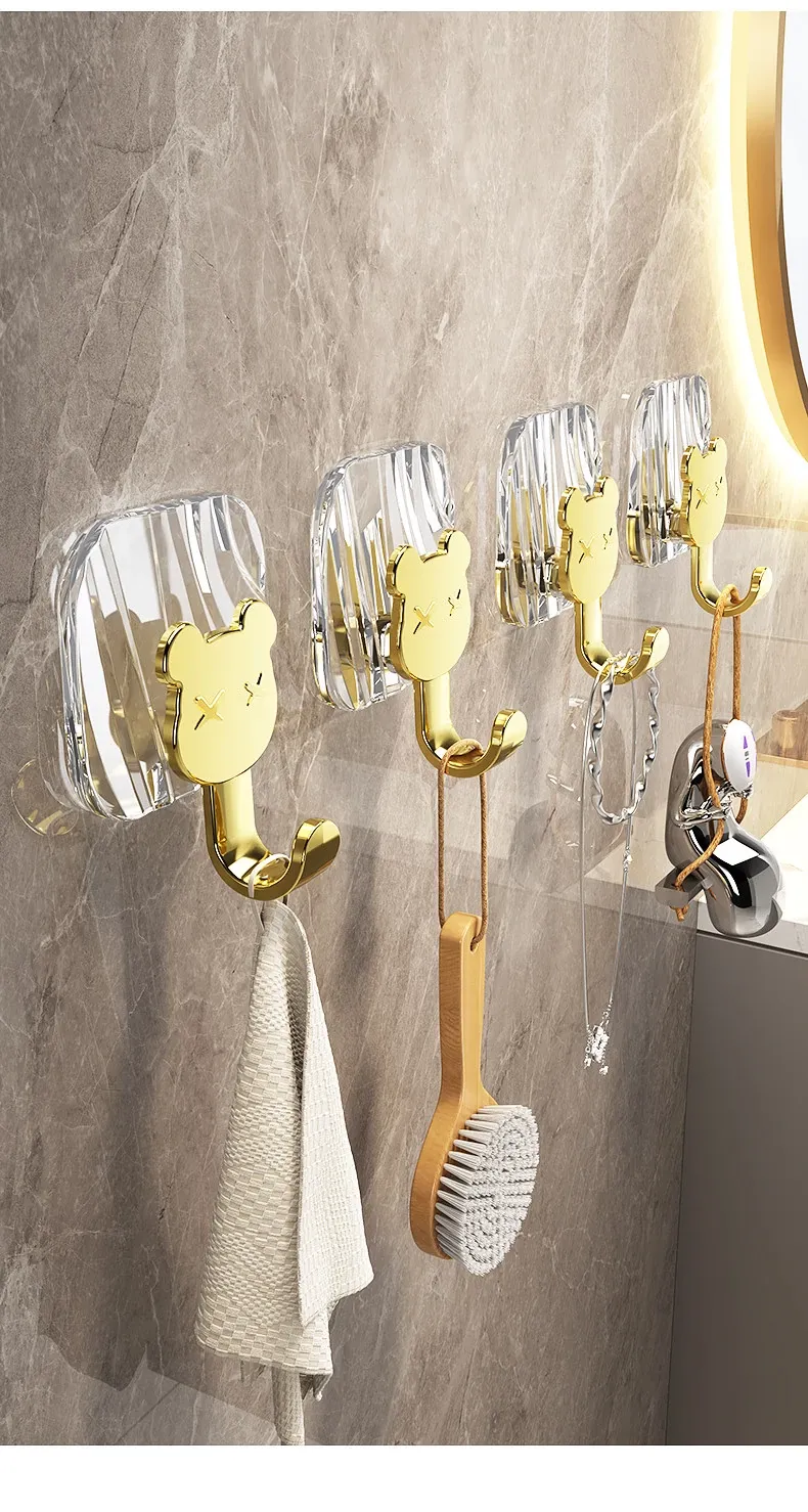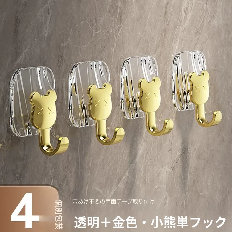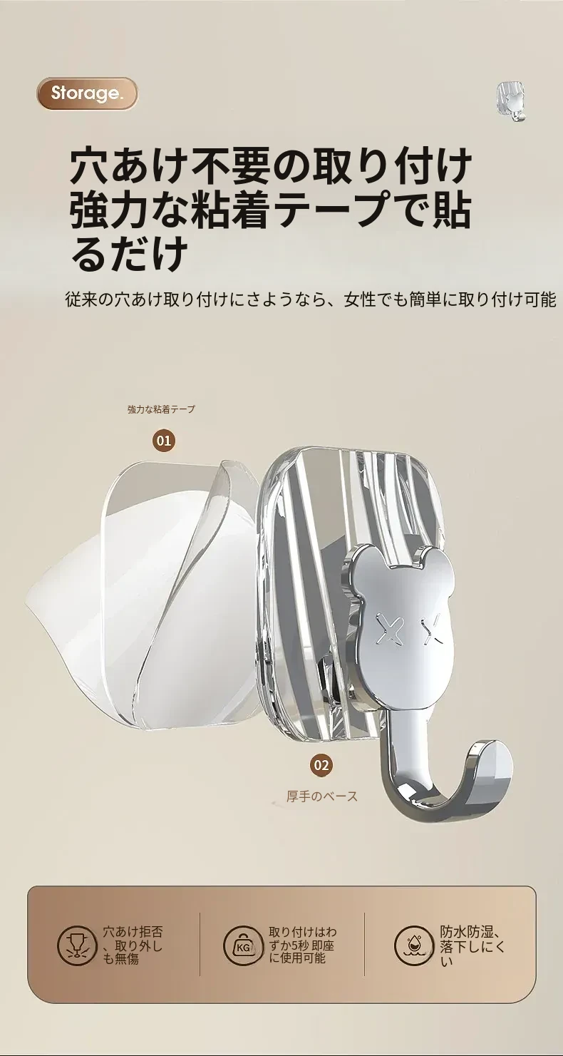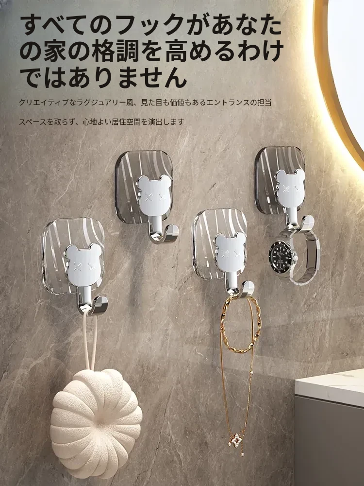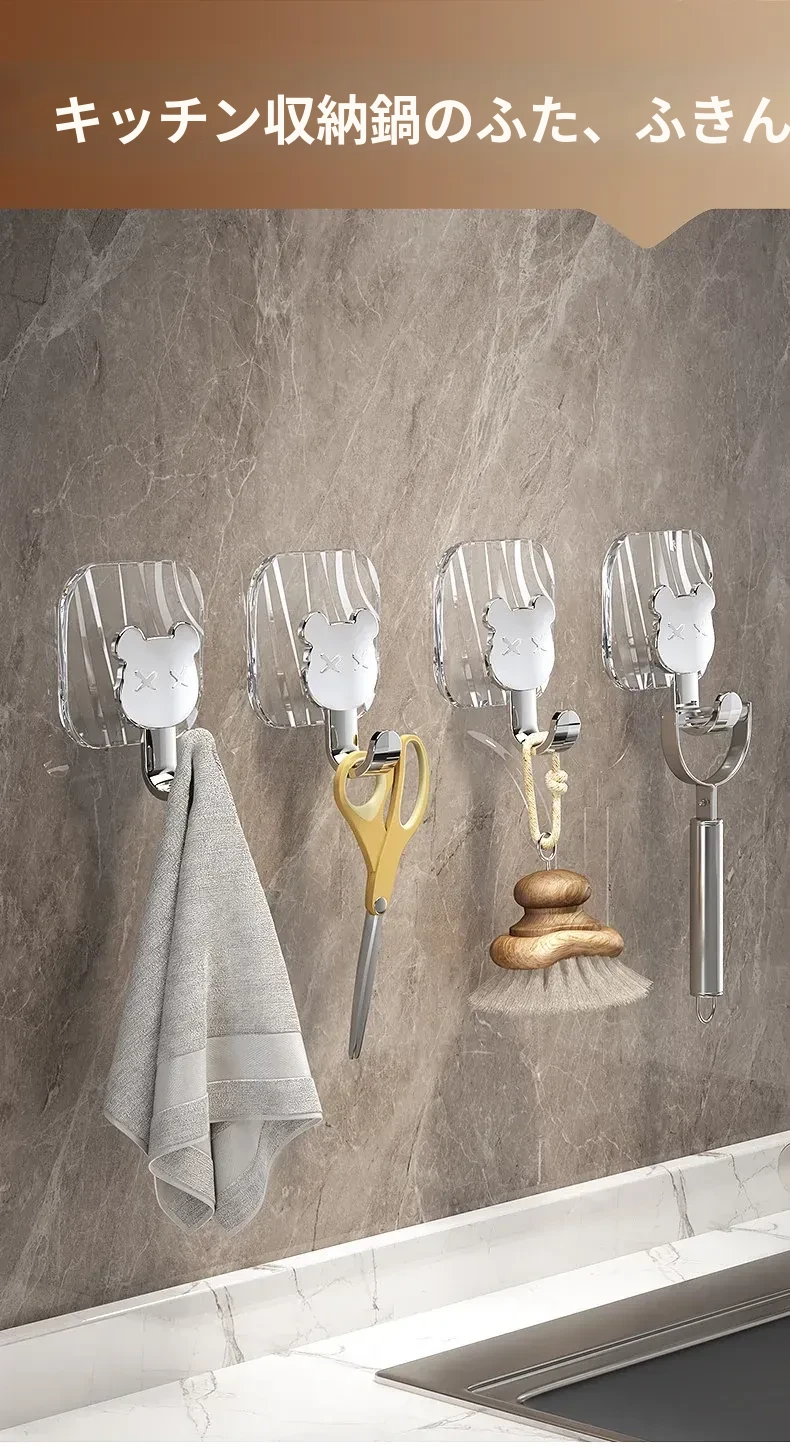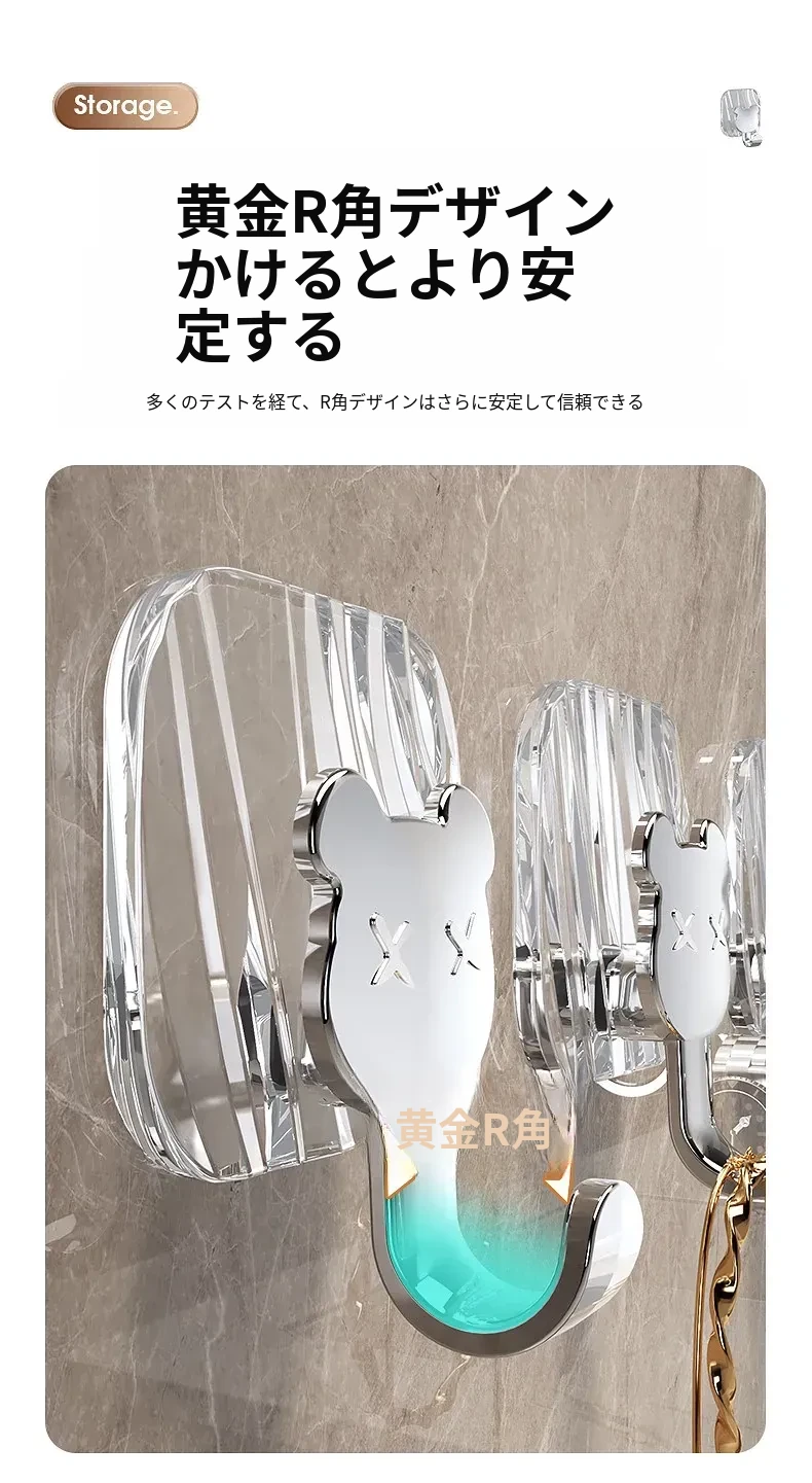 軽やかな高級感!強力耐荷重・穴あけ不要の粘着フック。バスルームやトイレの壁、ドア裏に無痕で衣類やタオルをスタイリッシュに収納!