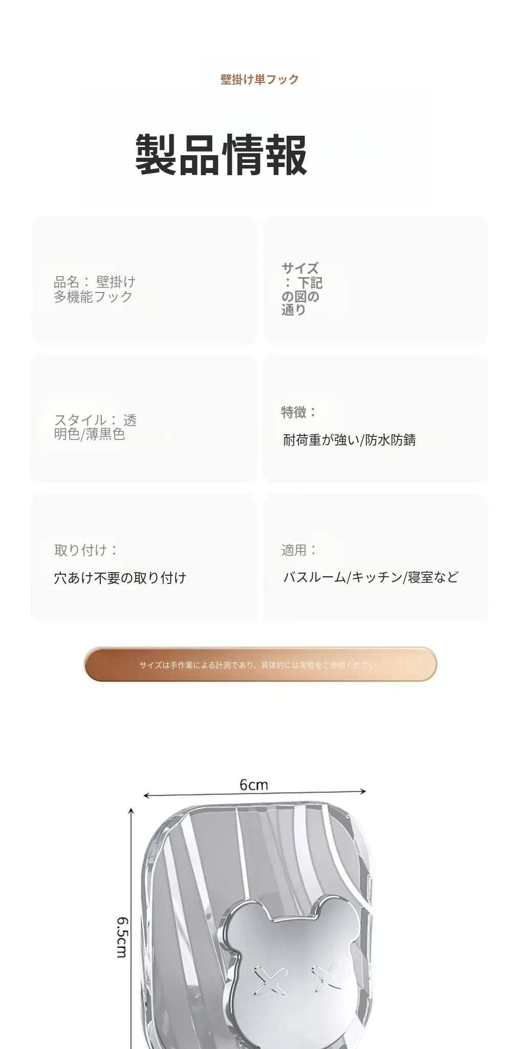 透明ゴールド●6個セット【耐荷重アップ✅超強吸着】