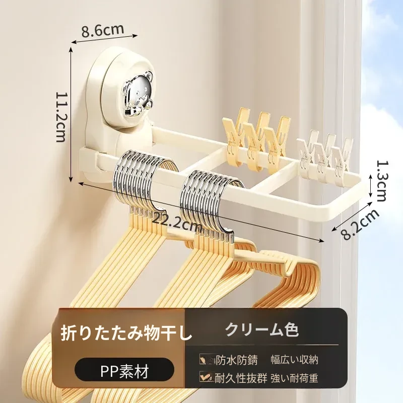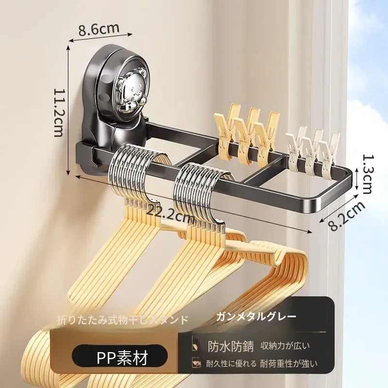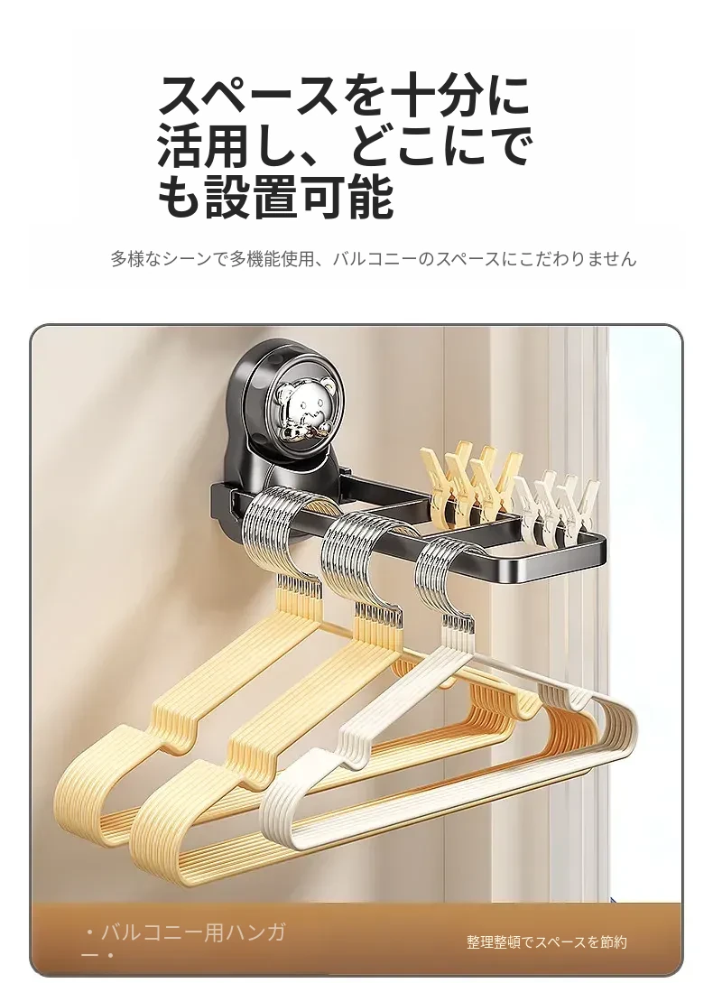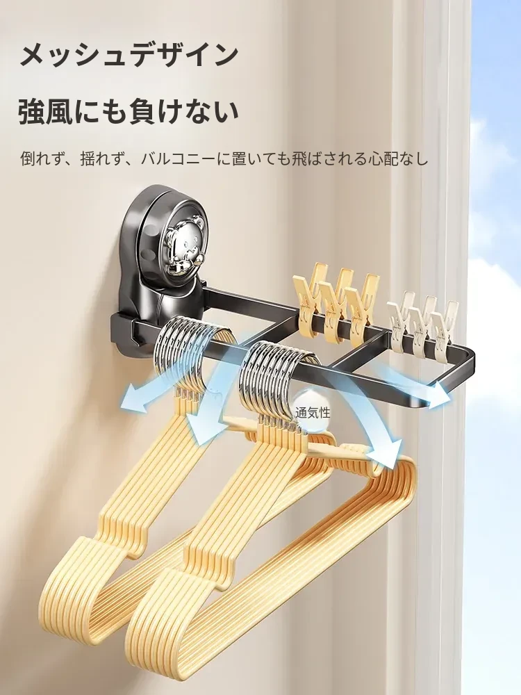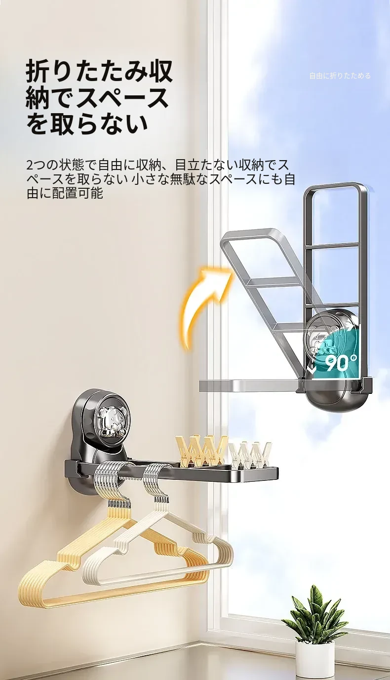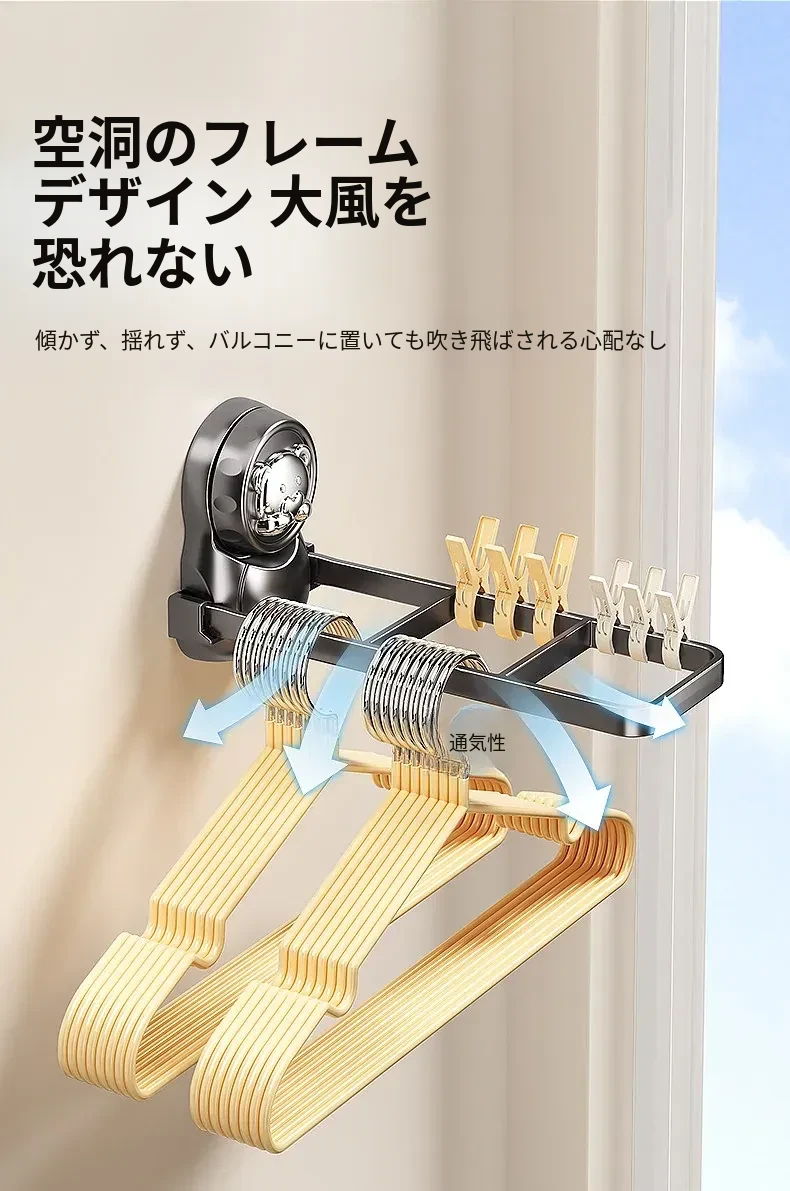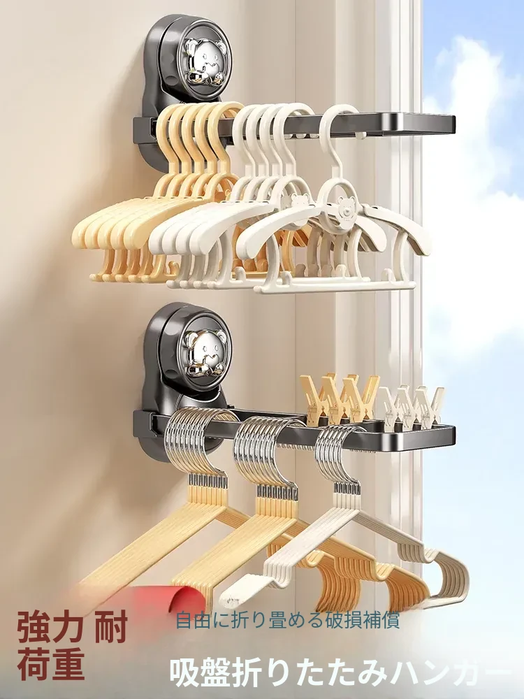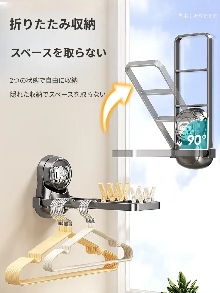 吸盤式バルコニー衣類ハンガー収納神器|打孔不要の多機能壁掛け折りたたみ式|壁に傷をつけずに便利に衣類を収納!