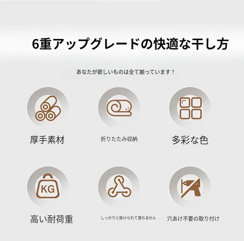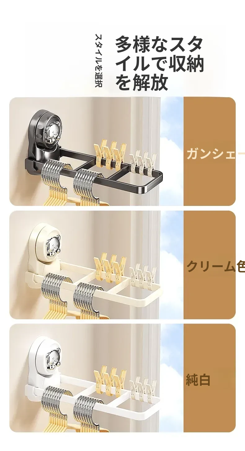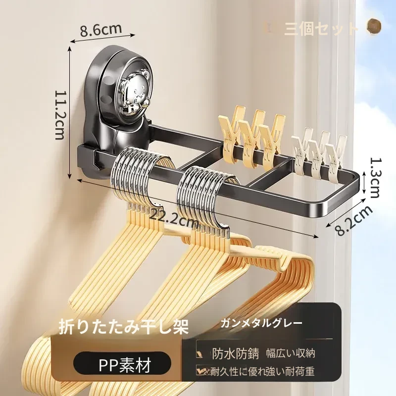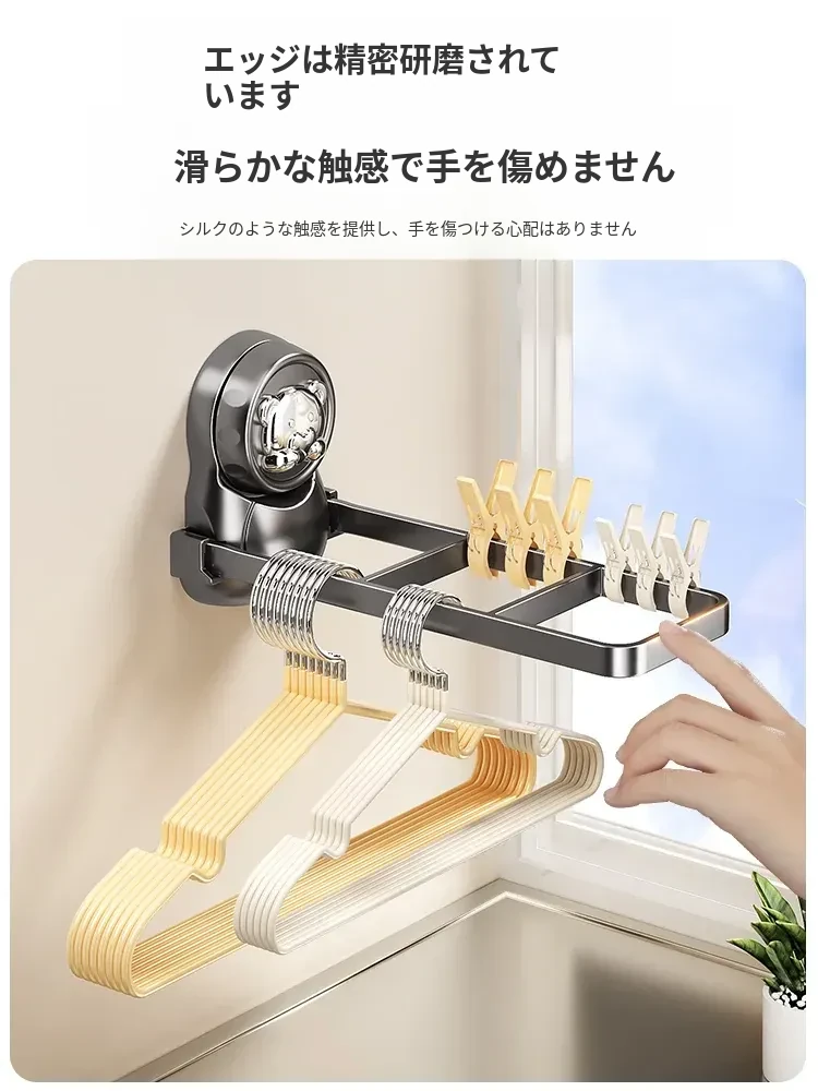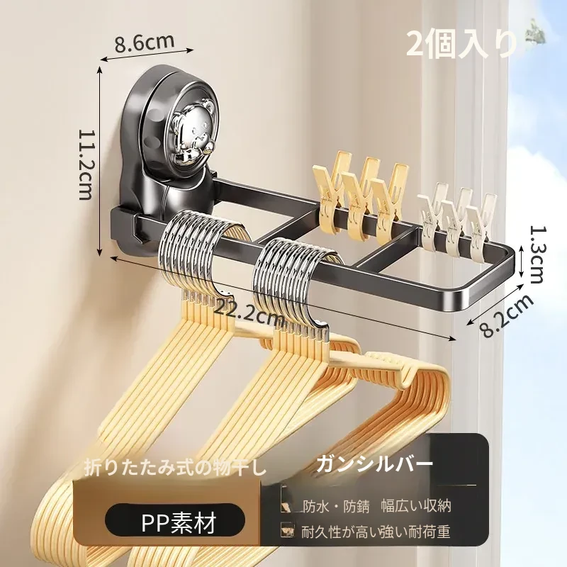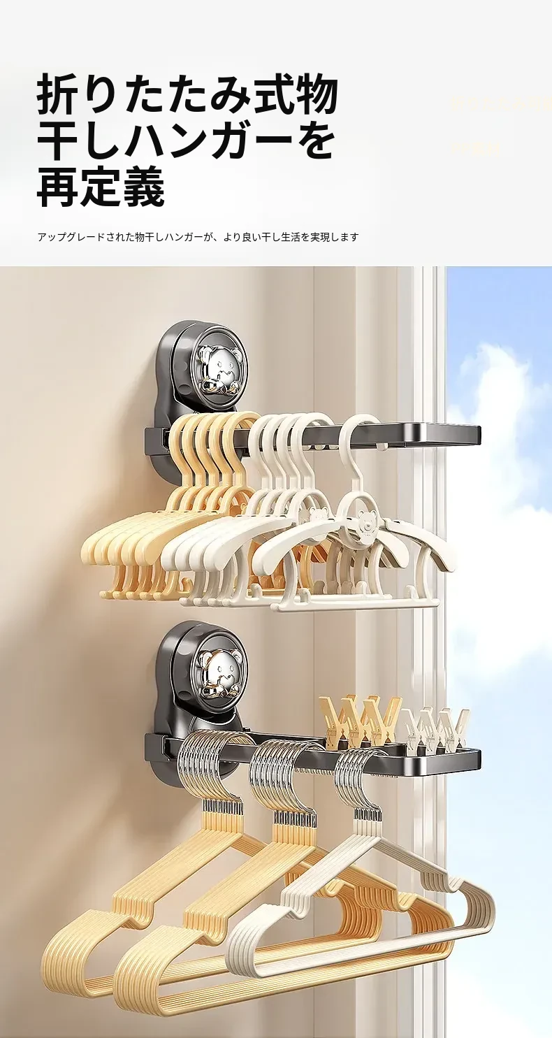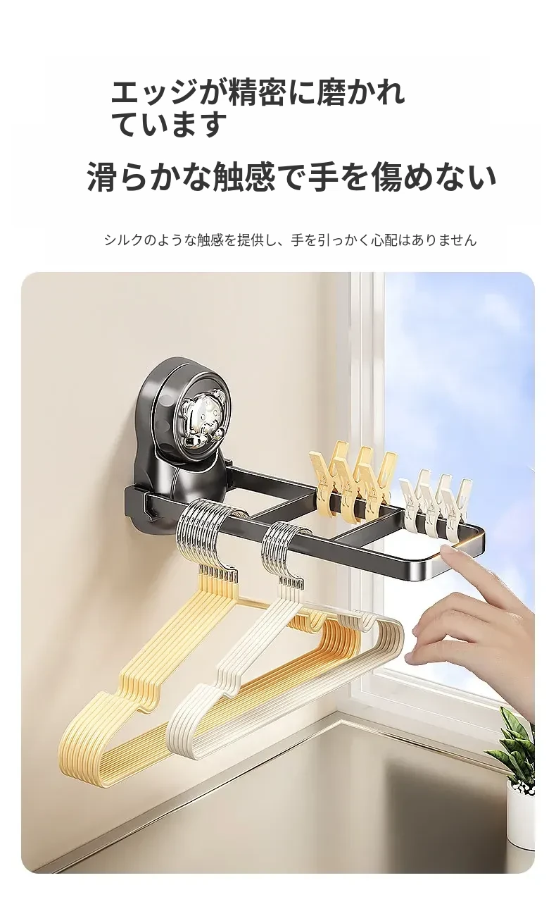 吸盤式バルコニー衣類ハンガー収納神器|打孔不要の多機能壁掛け折りたたみ式|壁に傷をつけずに便利に衣類を収納!