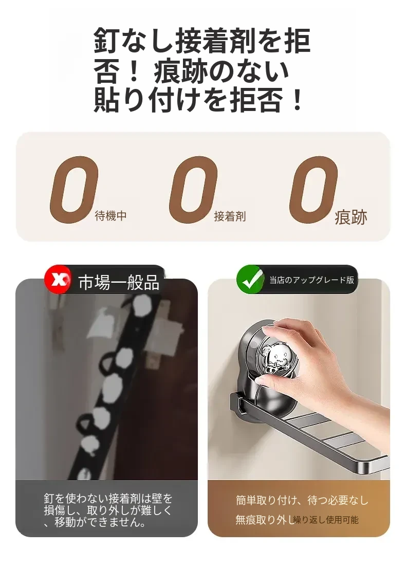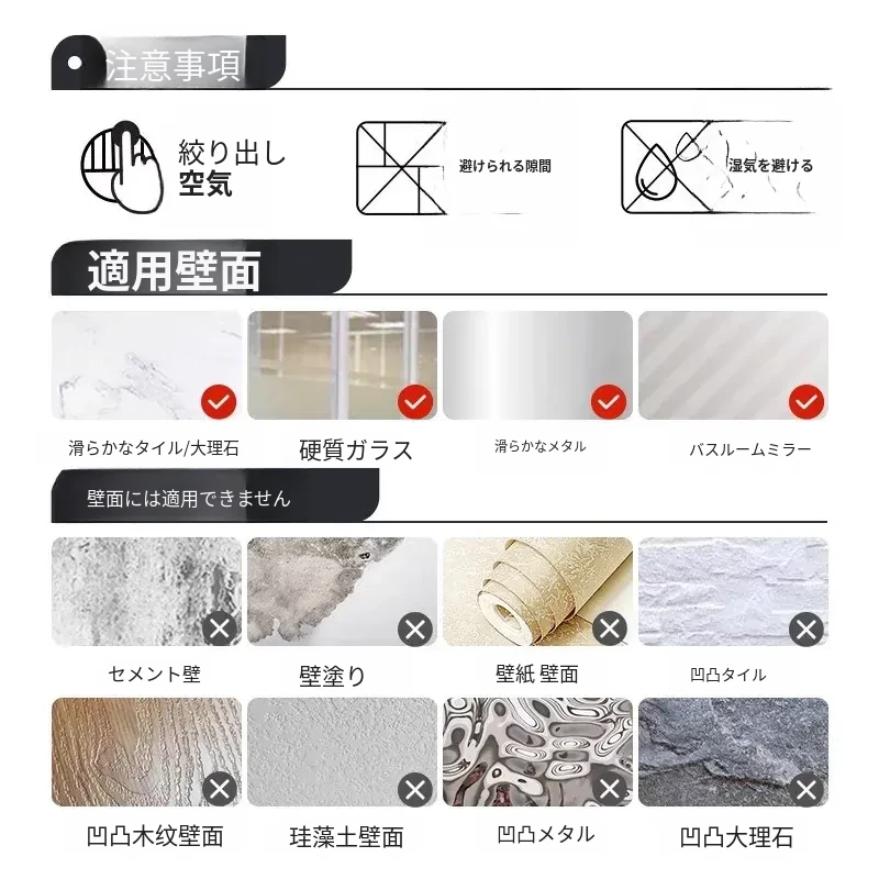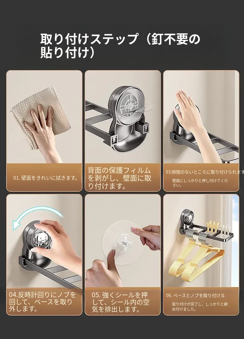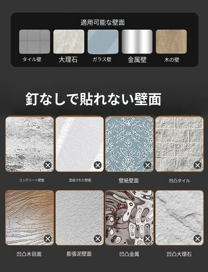 ❗注:"吸盤は壁面に使用できます" 説明をクリックして確認⭐タイル面の使用を推奨⭐