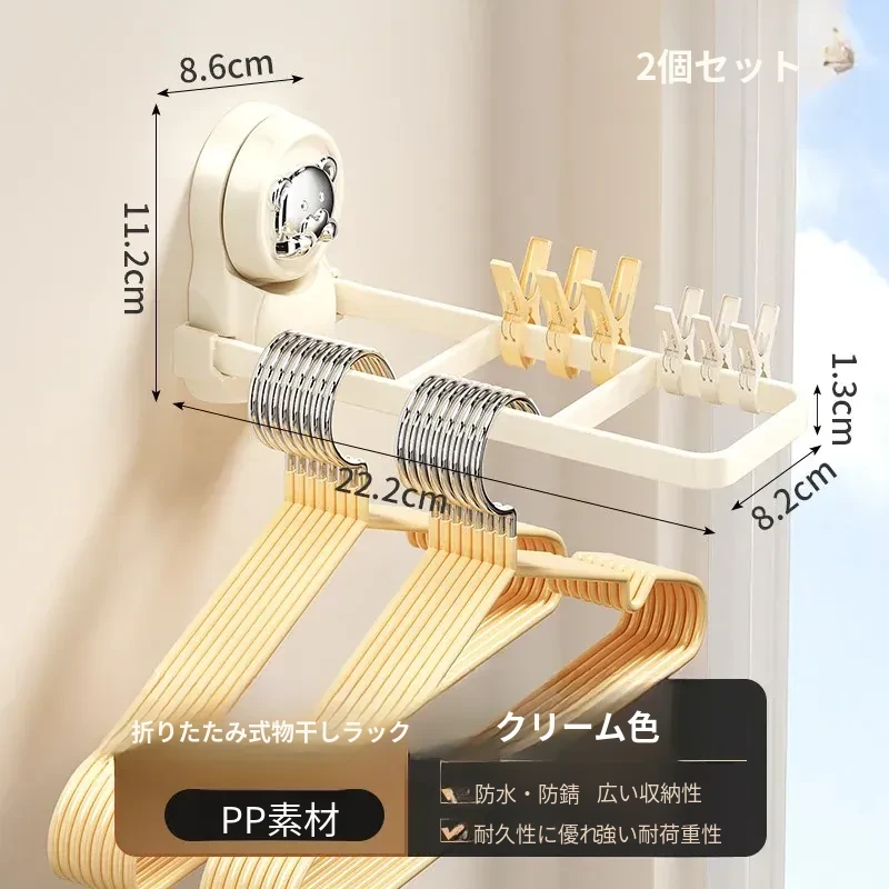 クリーム色 - 吸盤折りたたみ衣類ハンガー【2個入り】
