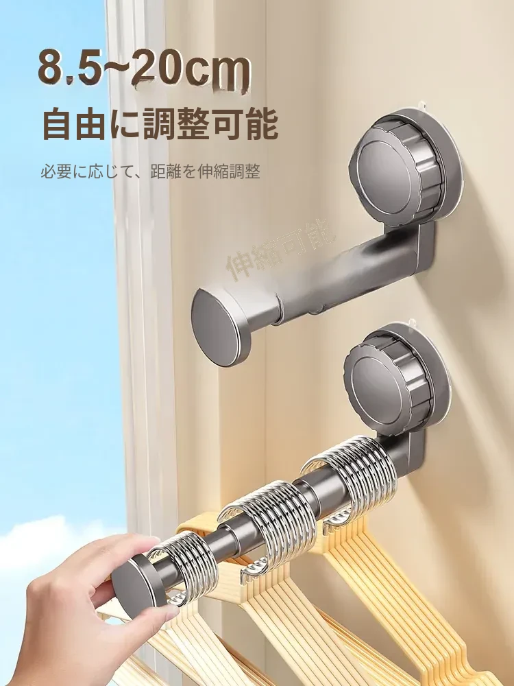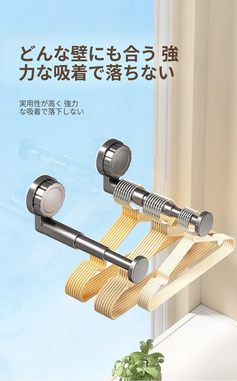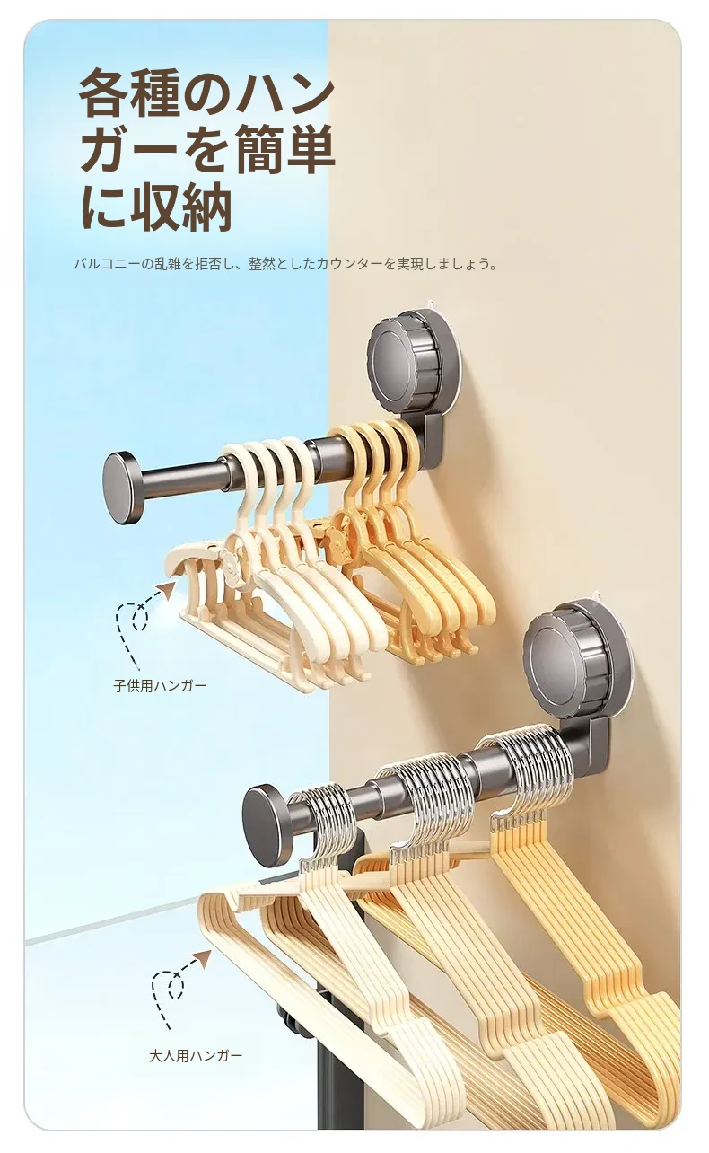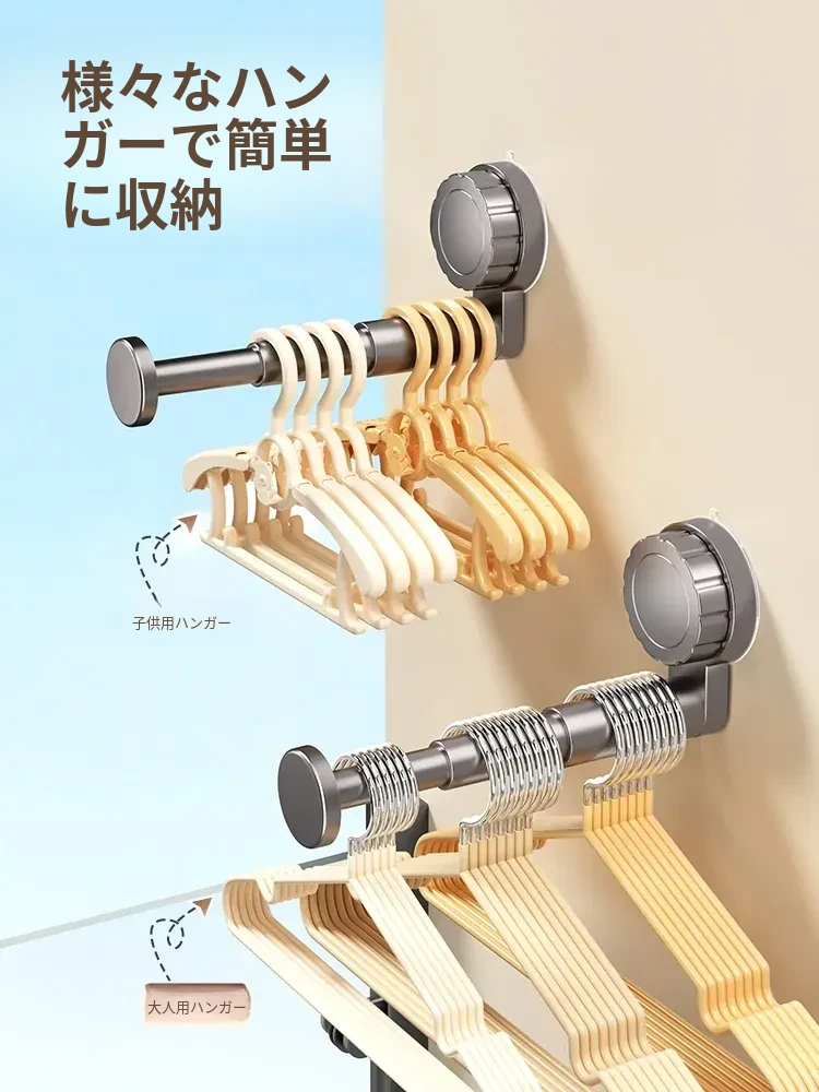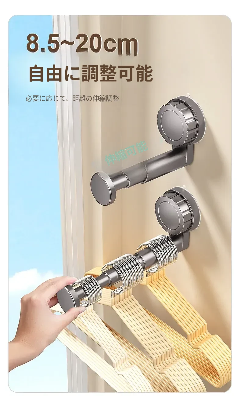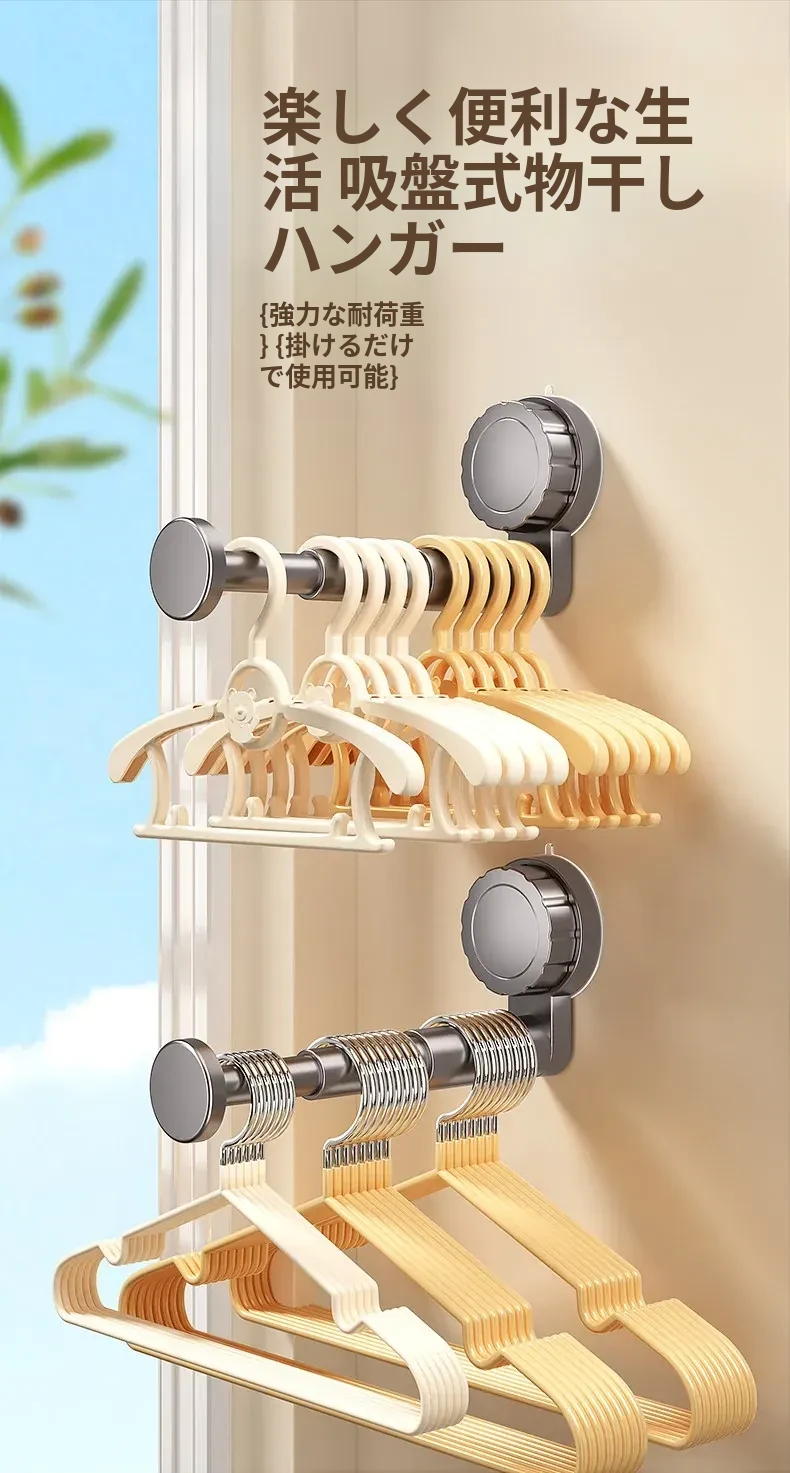 吸盤式衣類ハンガー収納神器!家庭用バルコニーに最適な多機能伸縮式、壁掛けタイプで穴あけ不要。無痕で衣類をスマートに収納できる!おしゃれで便利な衣類収納ソリューション!