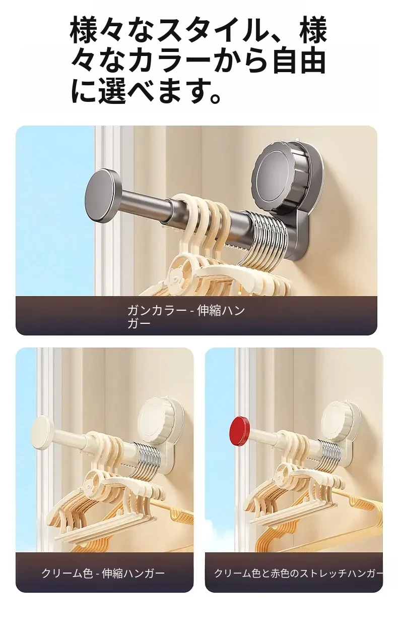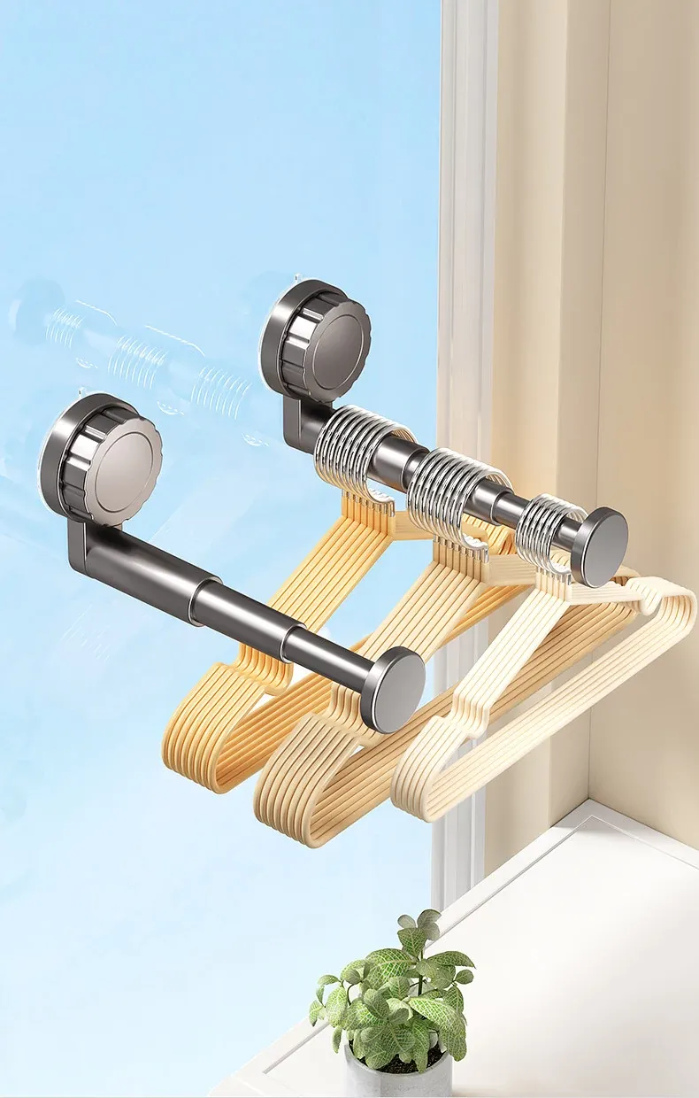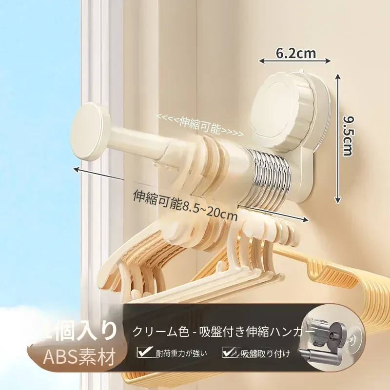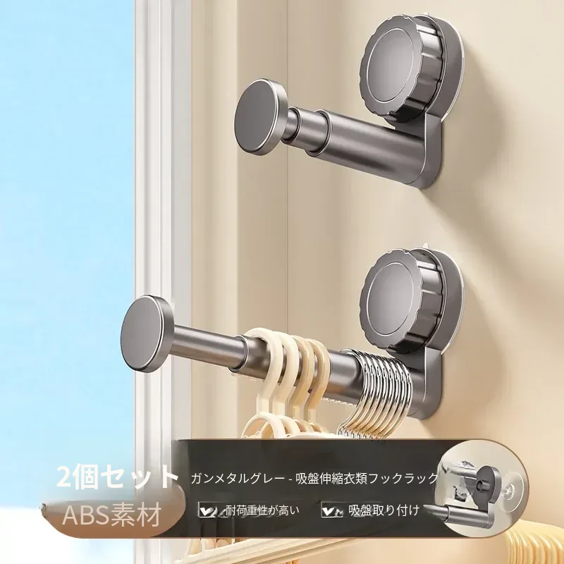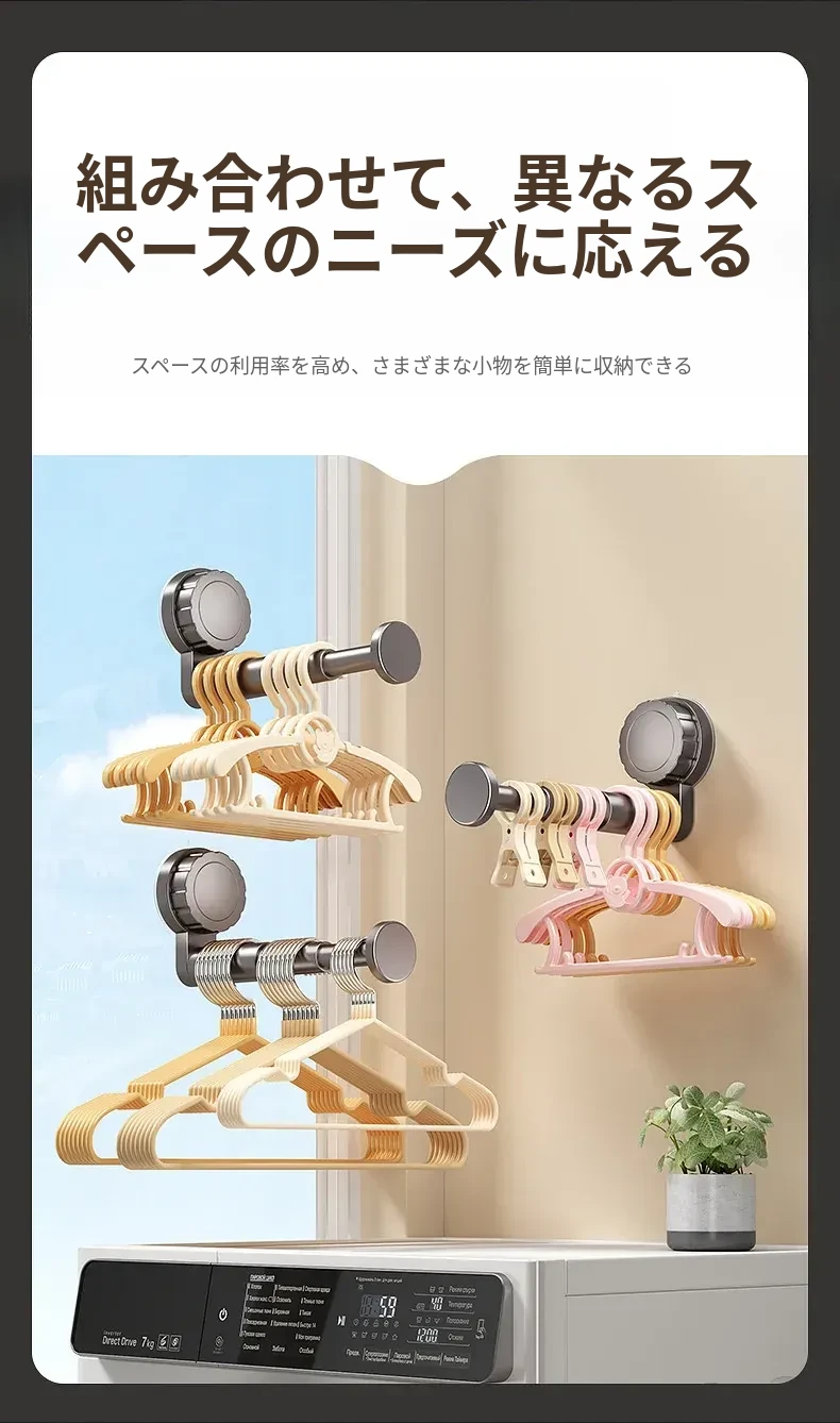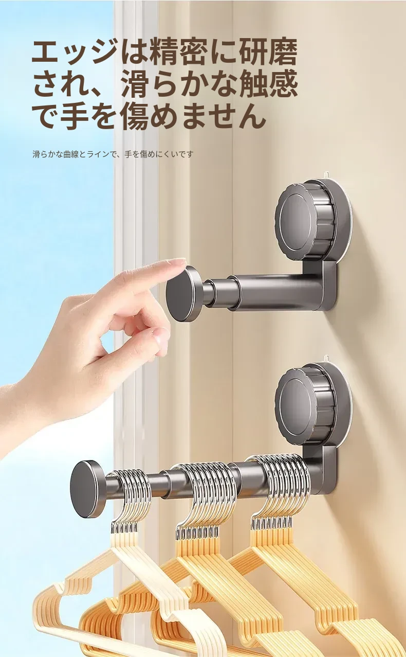 吸盤式衣類ハンガー収納神器!家庭用バルコニーに最適な多機能伸縮式、壁掛けタイプで穴あけ不要。無痕で衣類をスマートに収納できる!おしゃれで便利な衣類収納ソリューション!