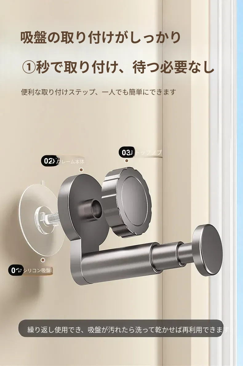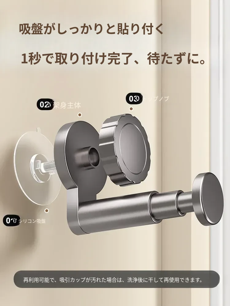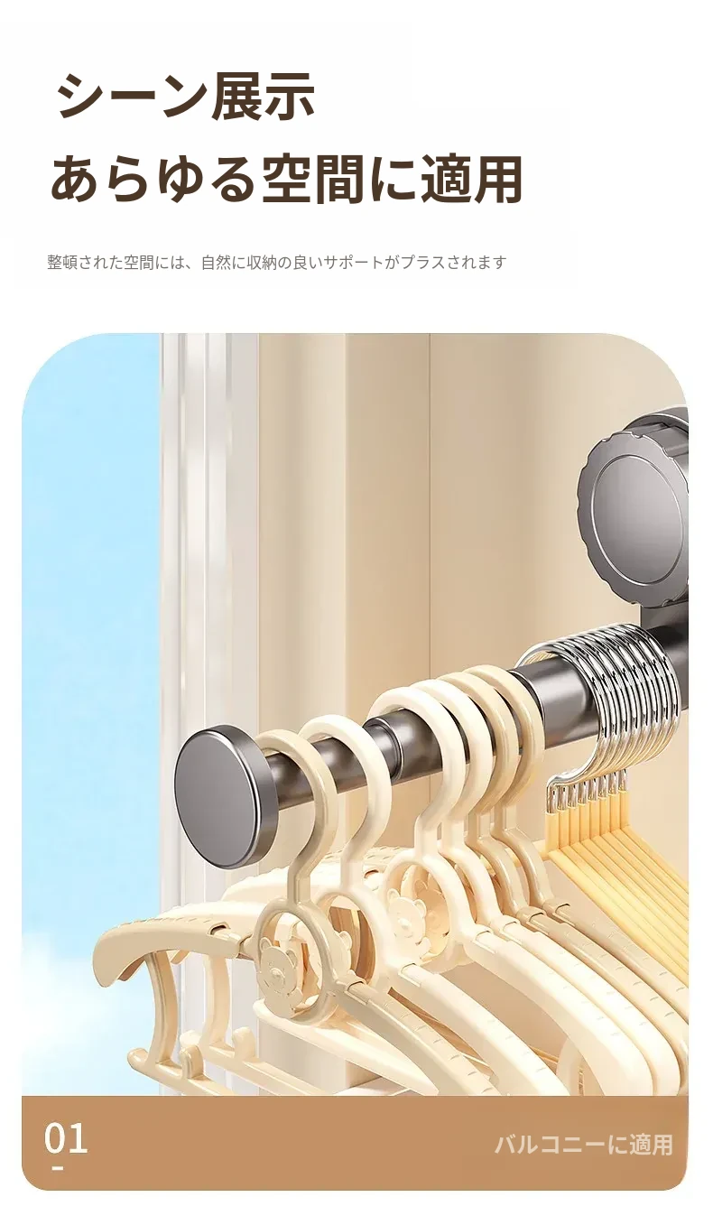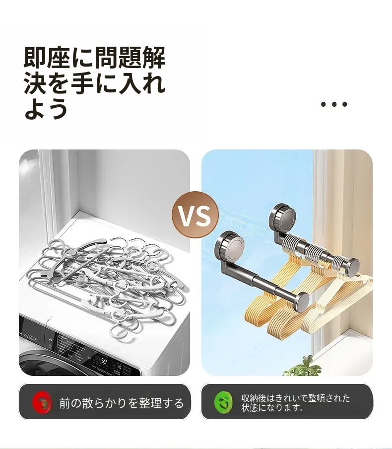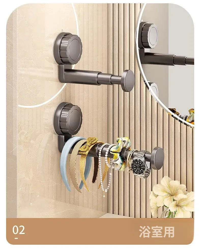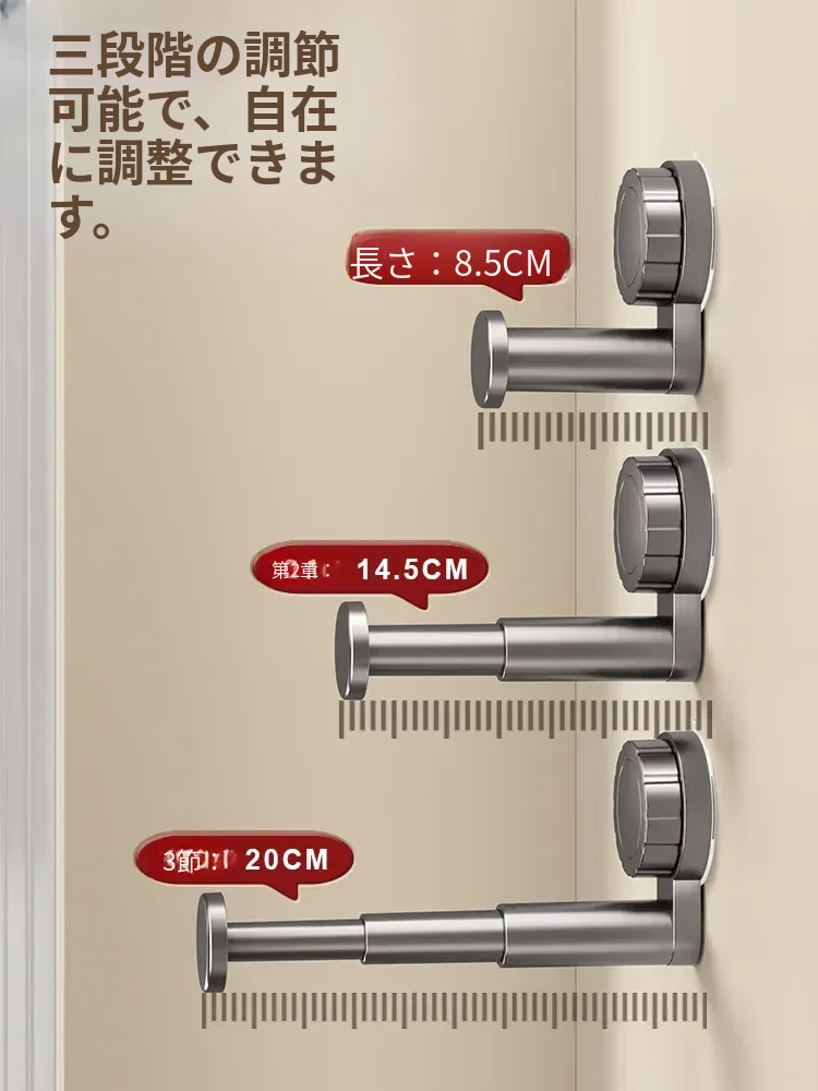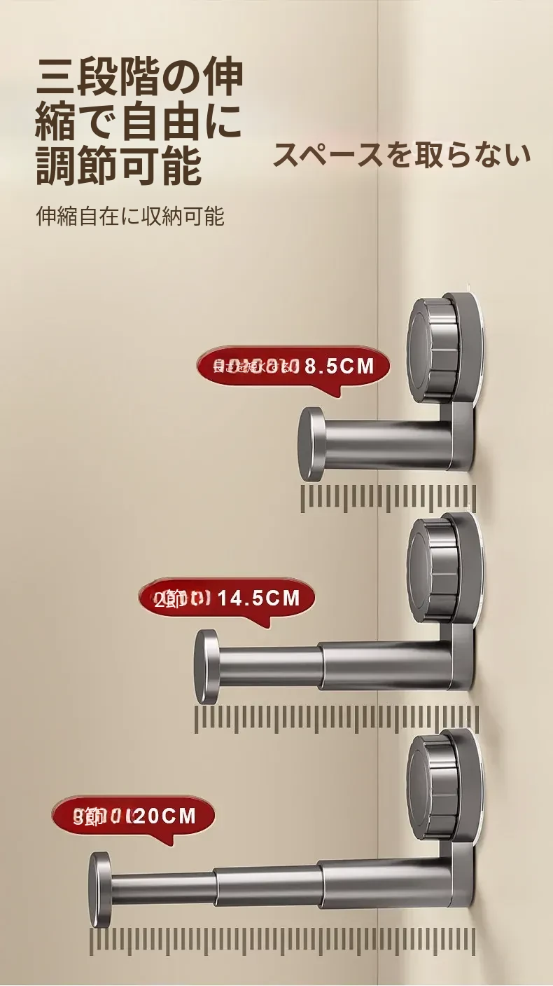 吸盤式衣類ハンガー収納神器!家庭用バルコニーに最適な多機能伸縮式、壁掛けタイプで穴あけ不要。無痕で衣類をスマートに収納できる!おしゃれで便利な衣類収納ソリューション!