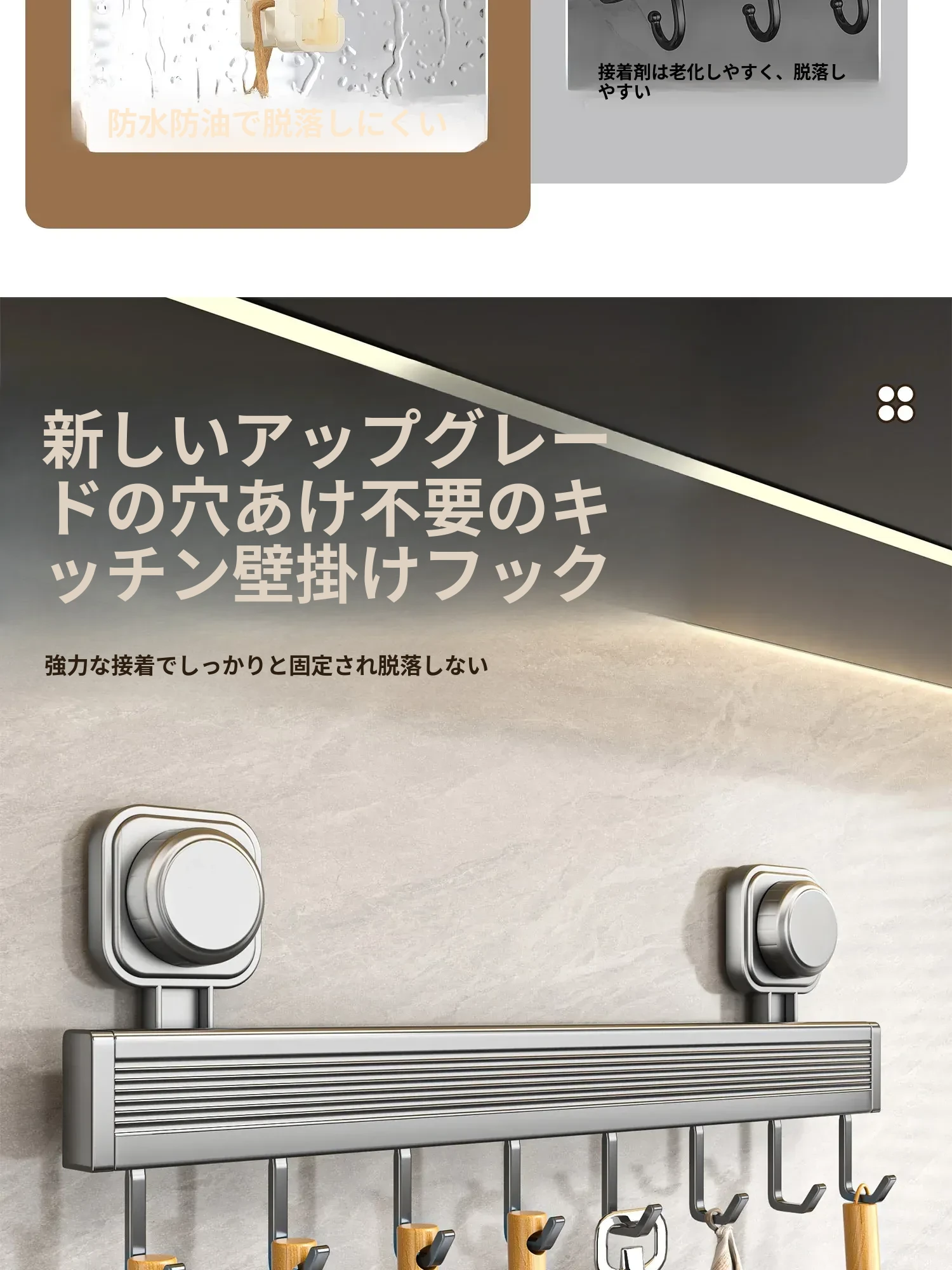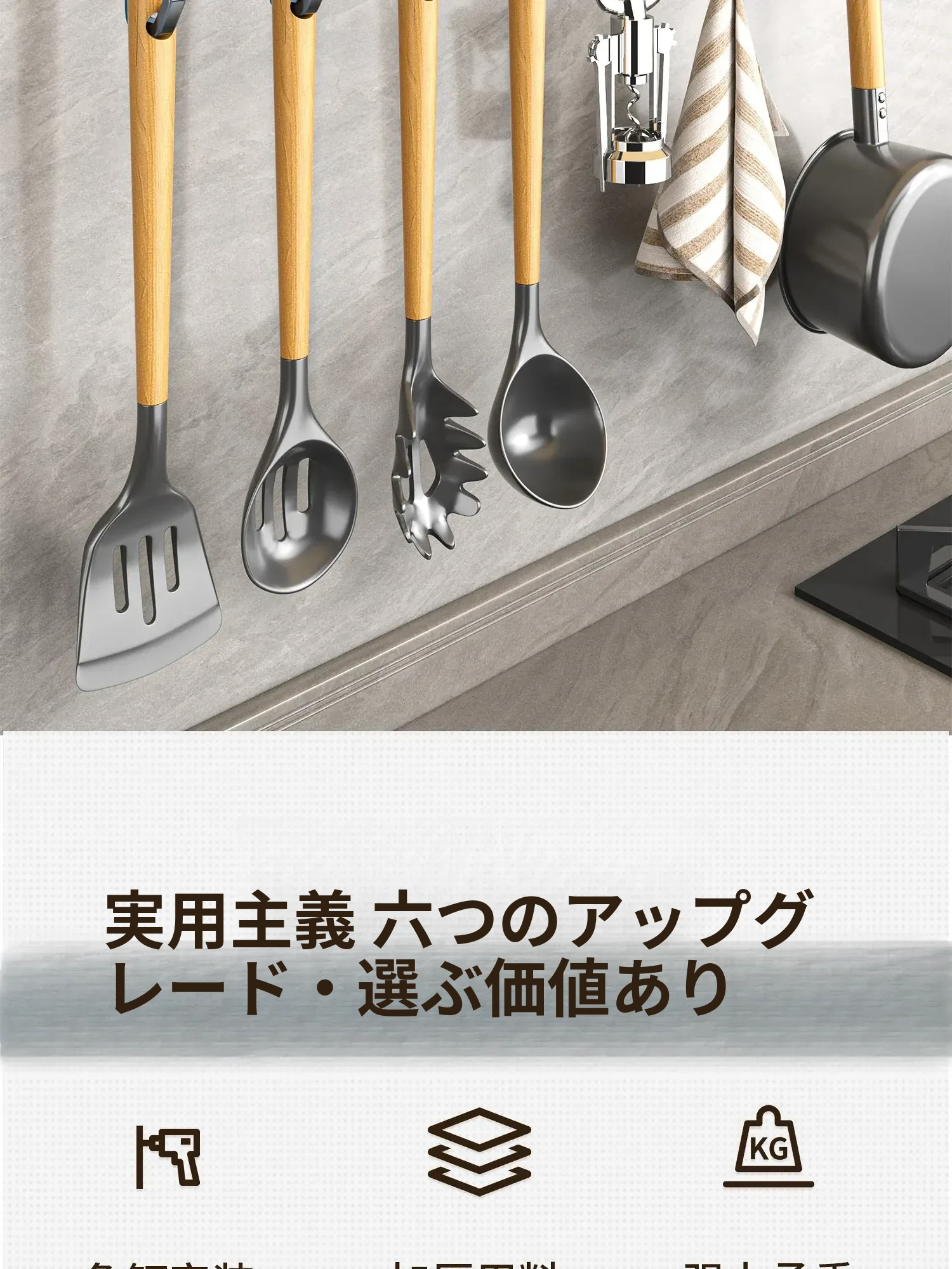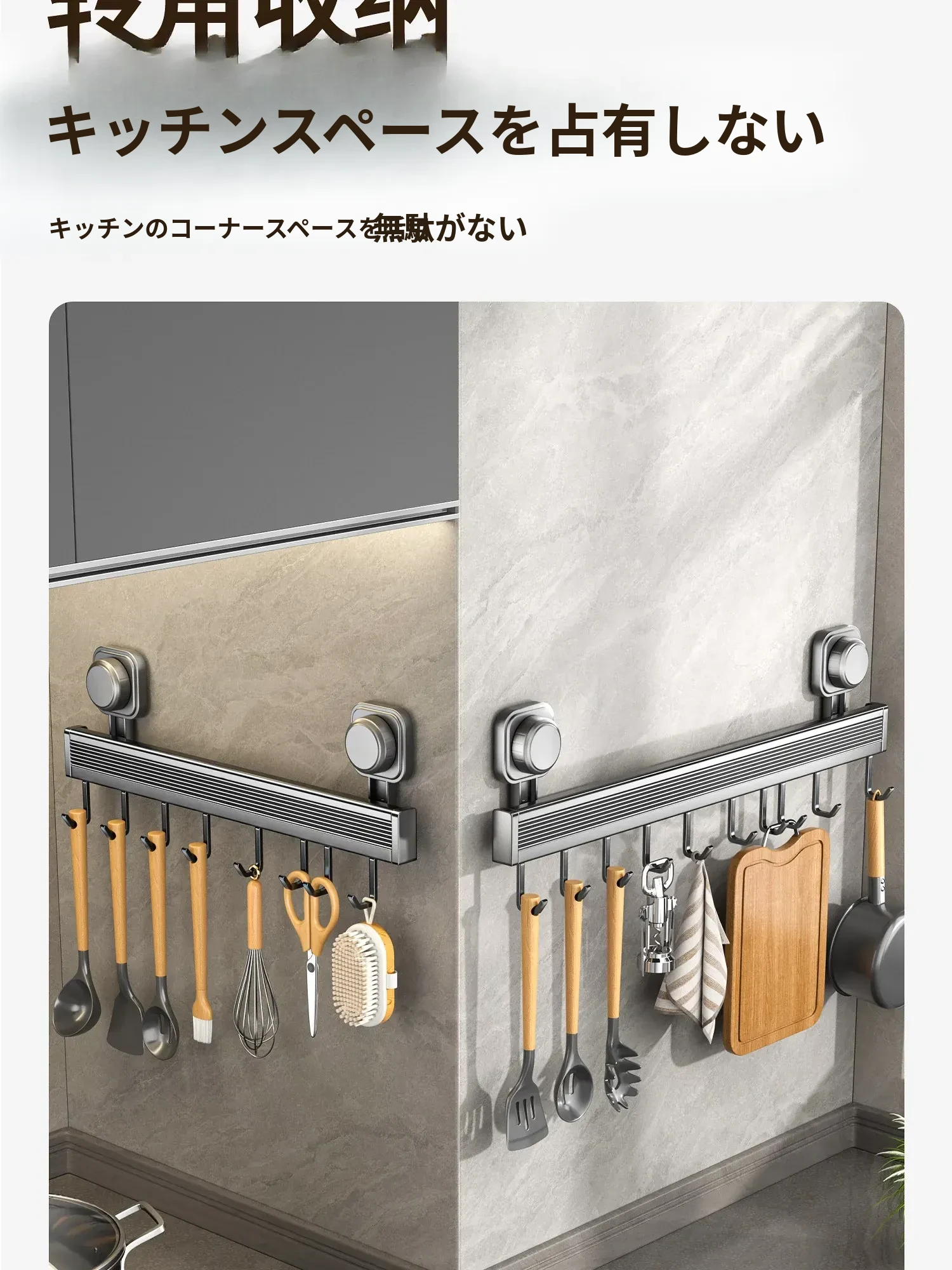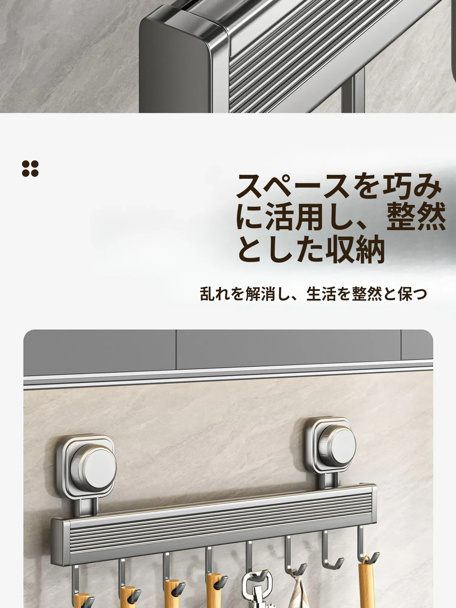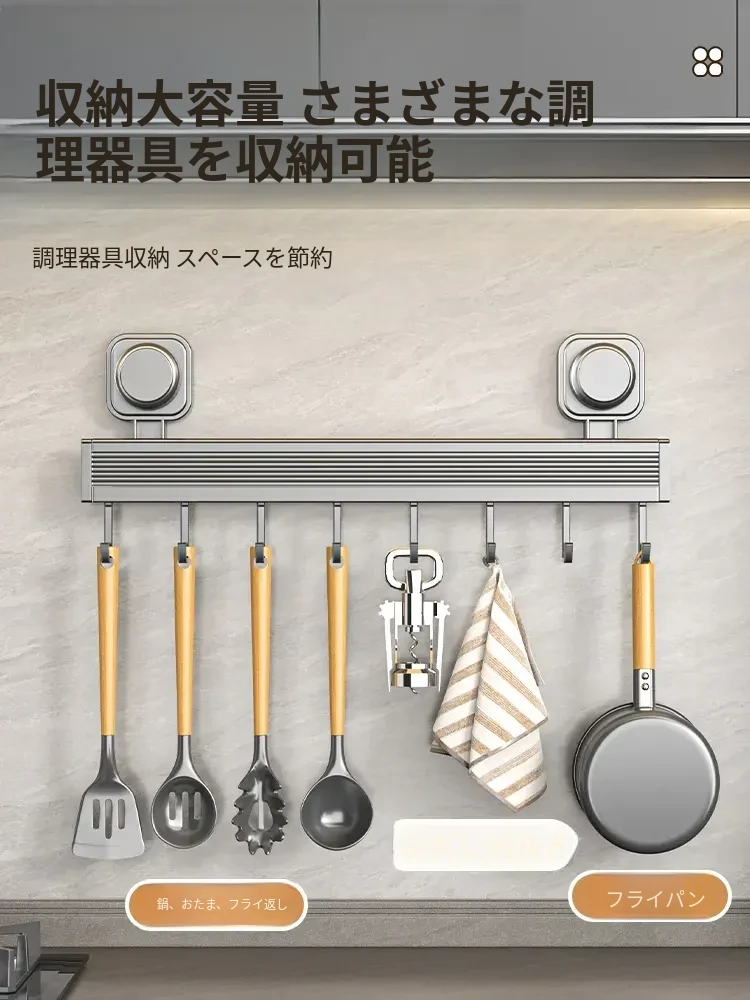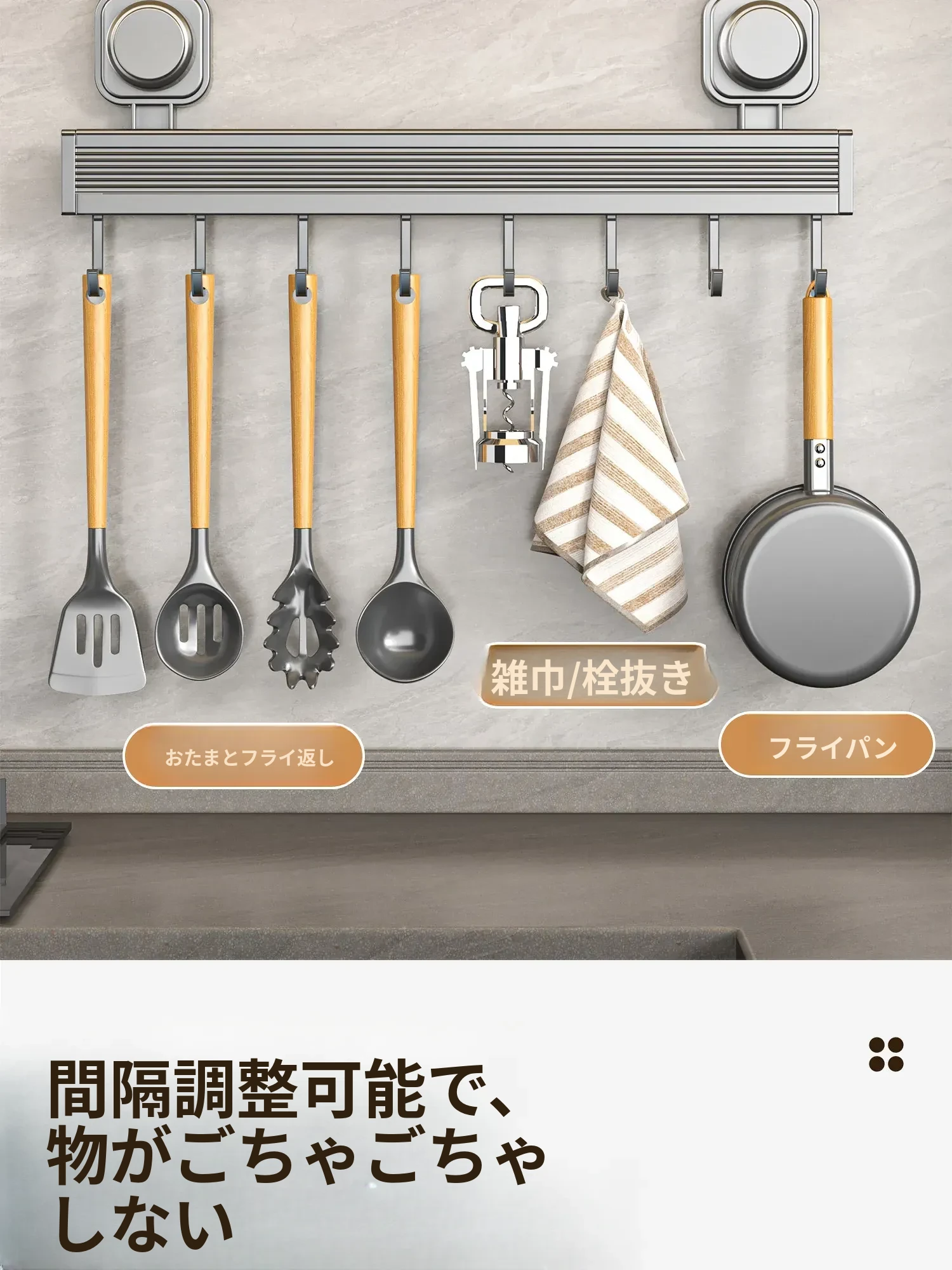 吸盤式キッチンフックラック - 壁掛けで簡単取り付け、穴あけ不要!多機能調理器具スタンドで、スプーンやヘラをスッキリ収納。キッチンをおしゃれに整理整頓!