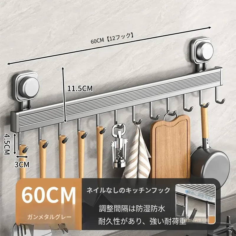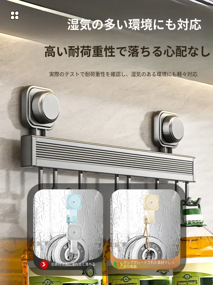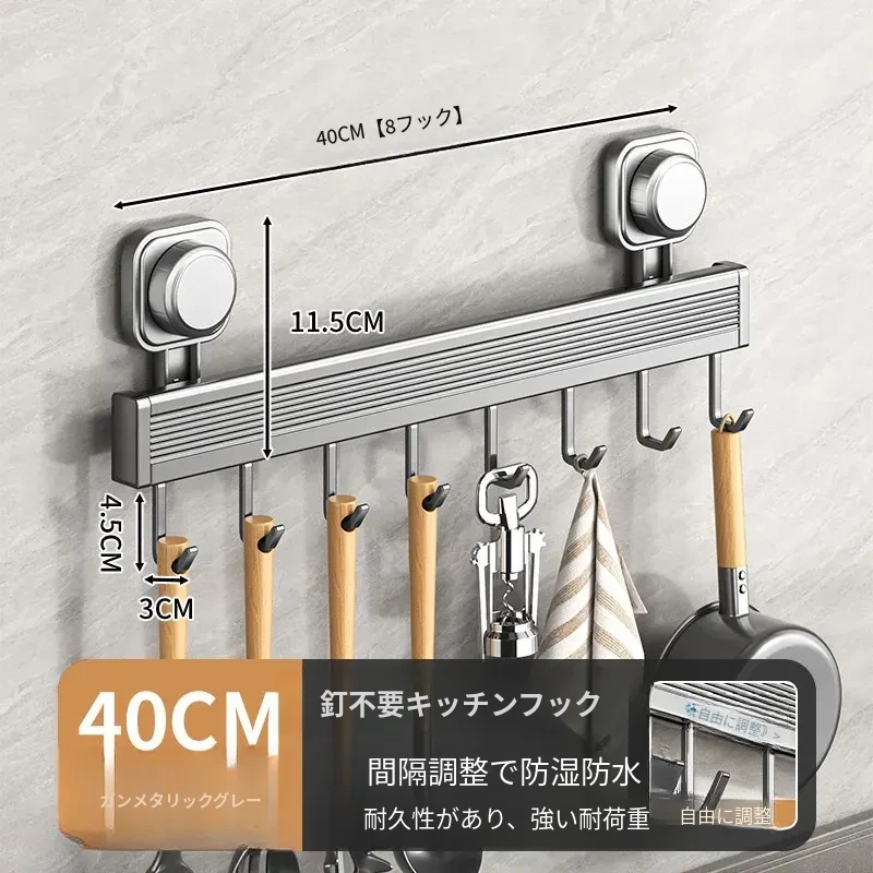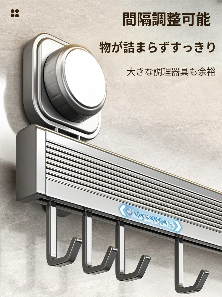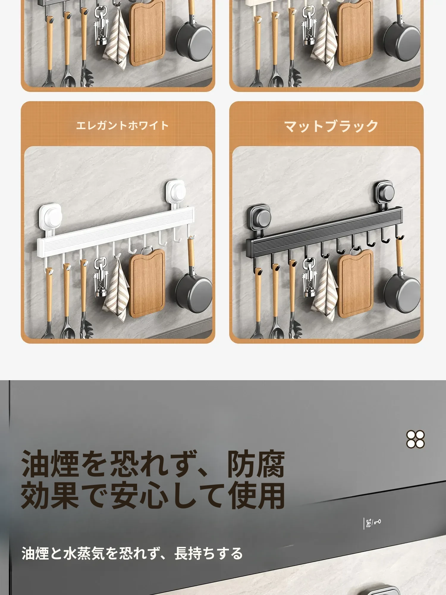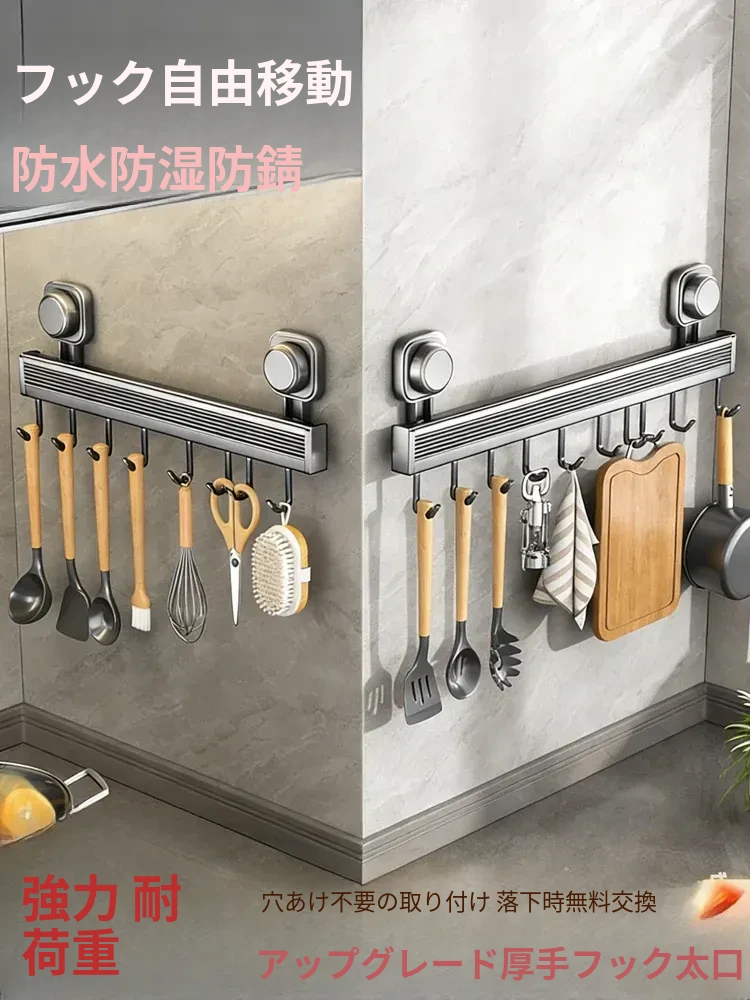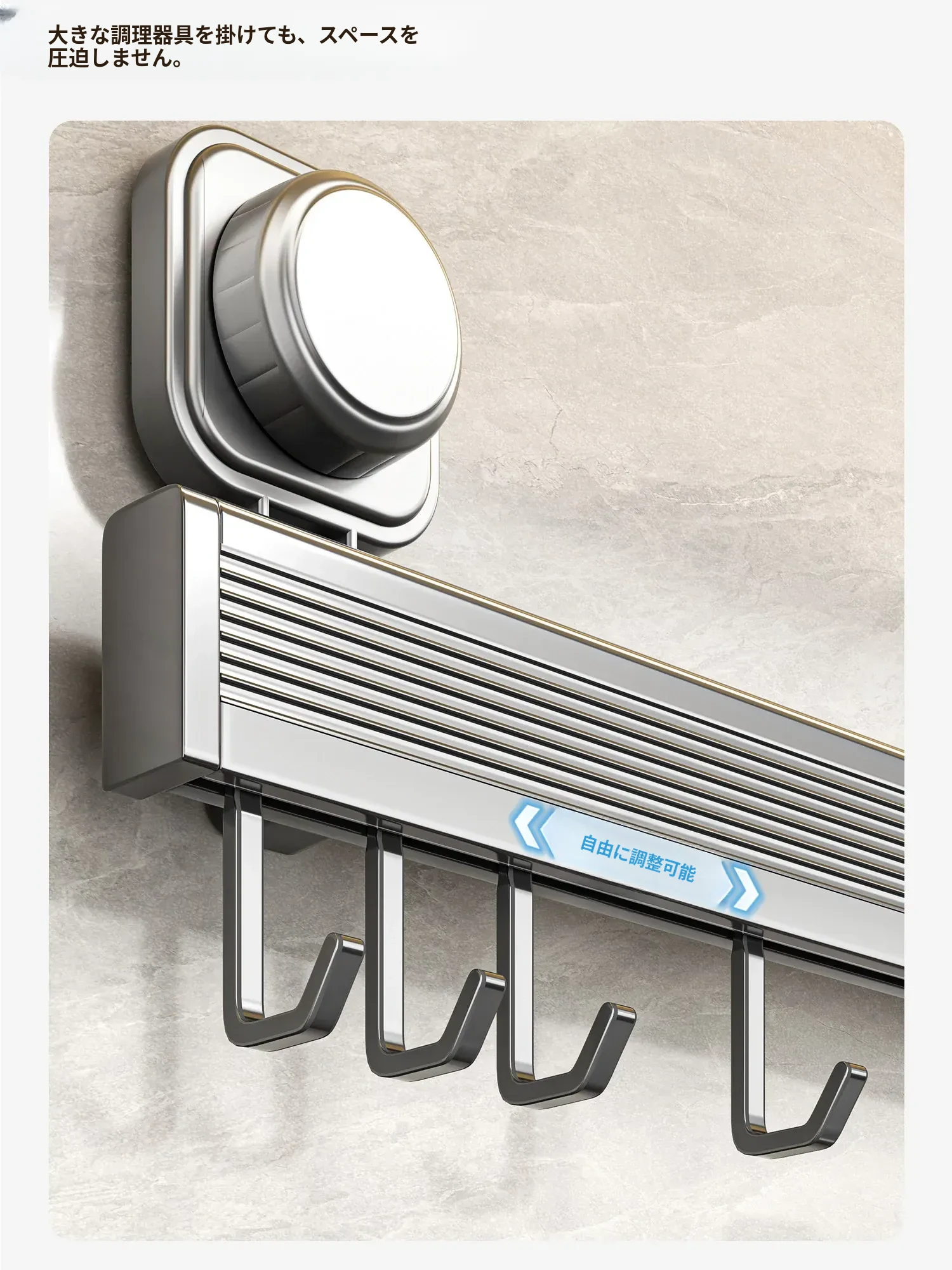 吸盤式キッチンフックラック - 壁掛けで簡単取り付け、穴あけ不要!多機能調理器具スタンドで、スプーンやヘラをスッキリ収納。キッチンをおしゃれに整理整頓!