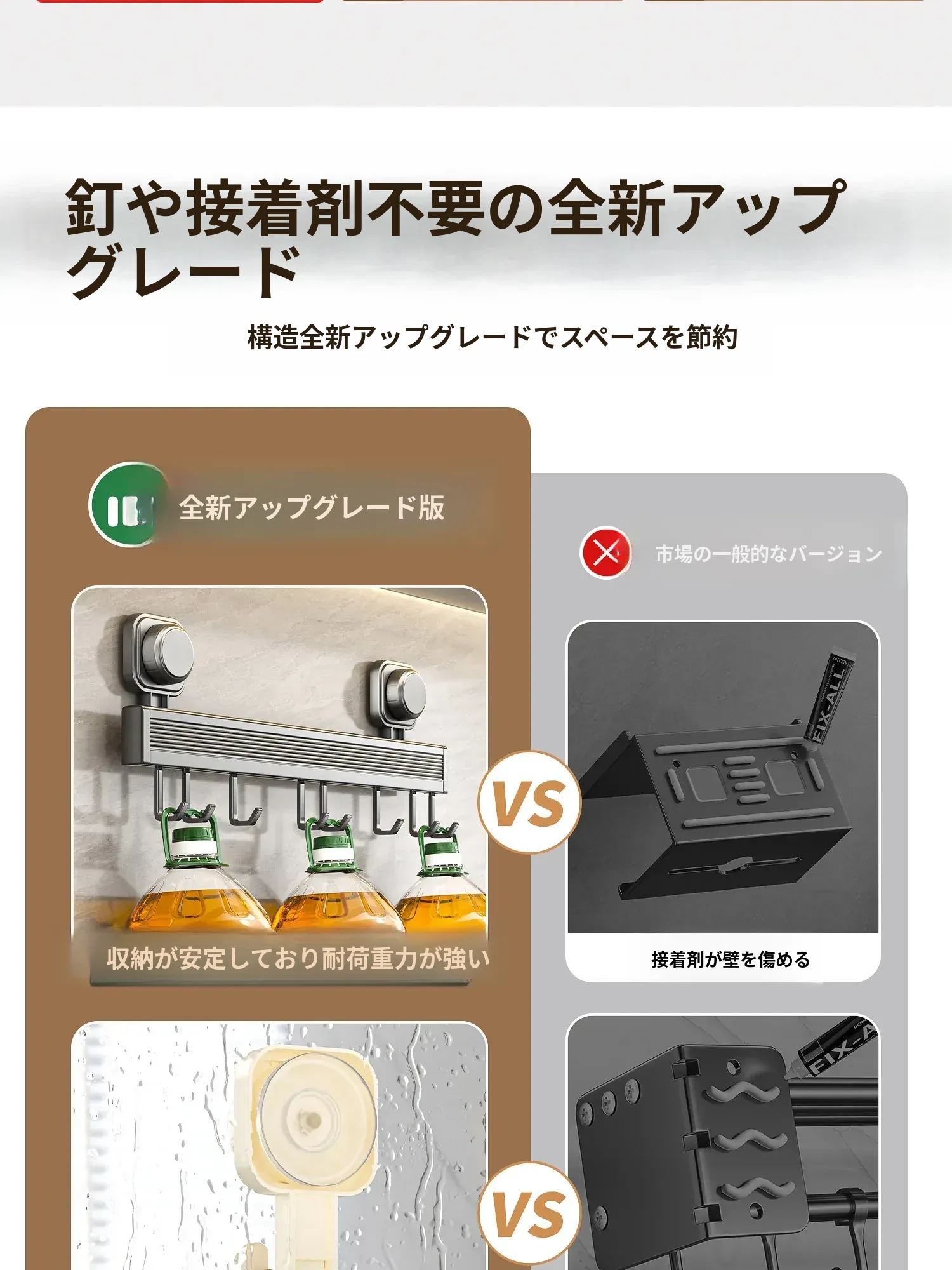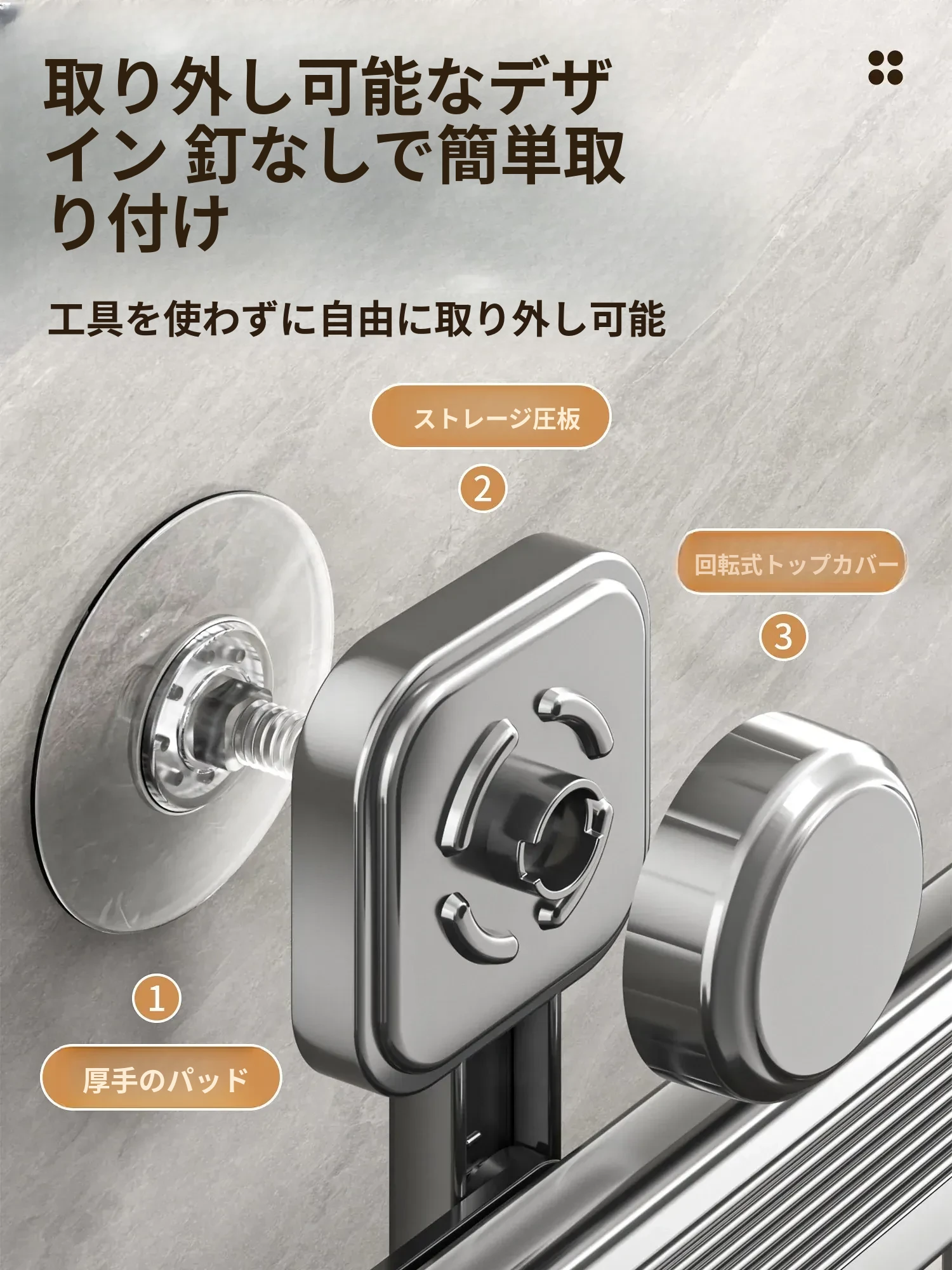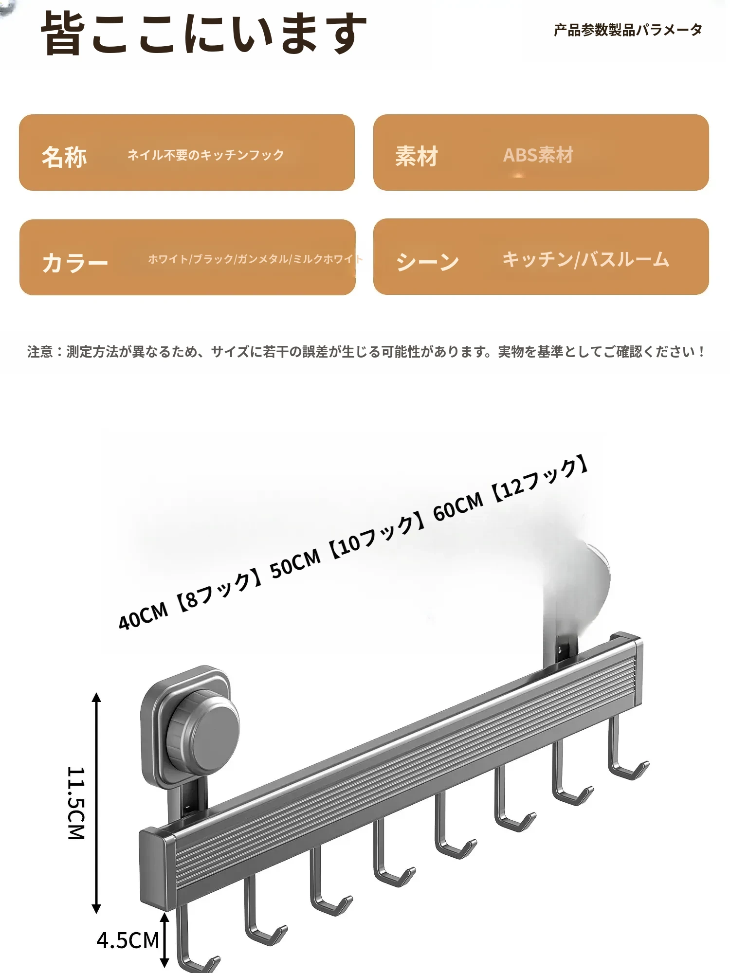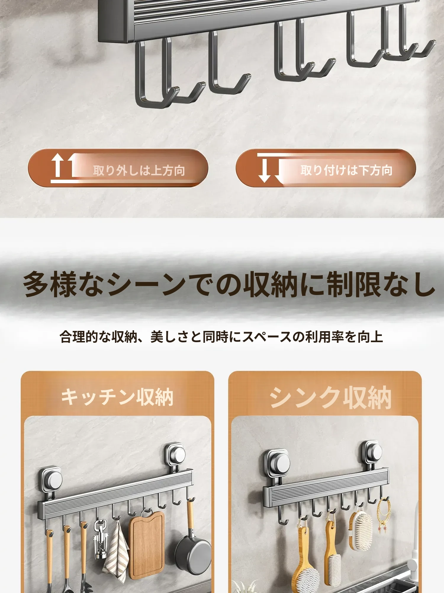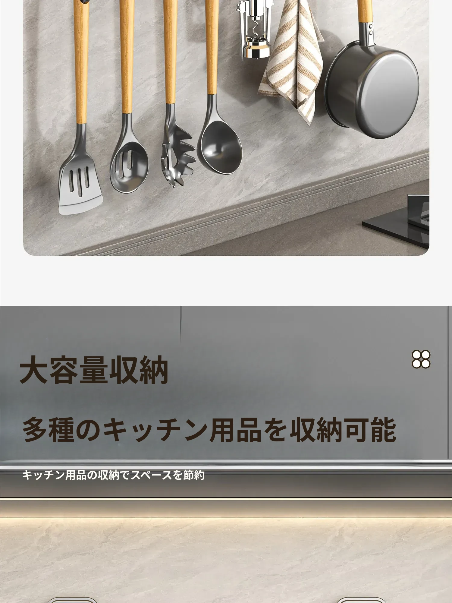 吸盤式キッチンフックラック - 壁掛けで簡単取り付け、穴あけ不要!多機能調理器具スタンドで、スプーンやヘラをスッキリ収納。キッチンをおしゃれに整理整頓!