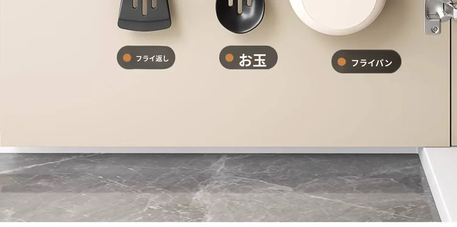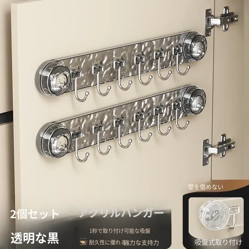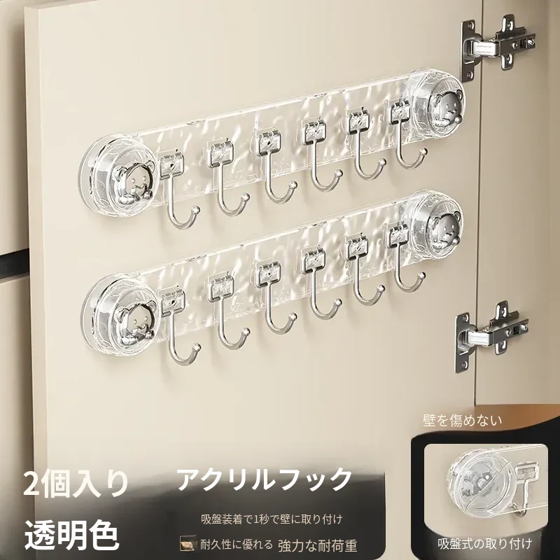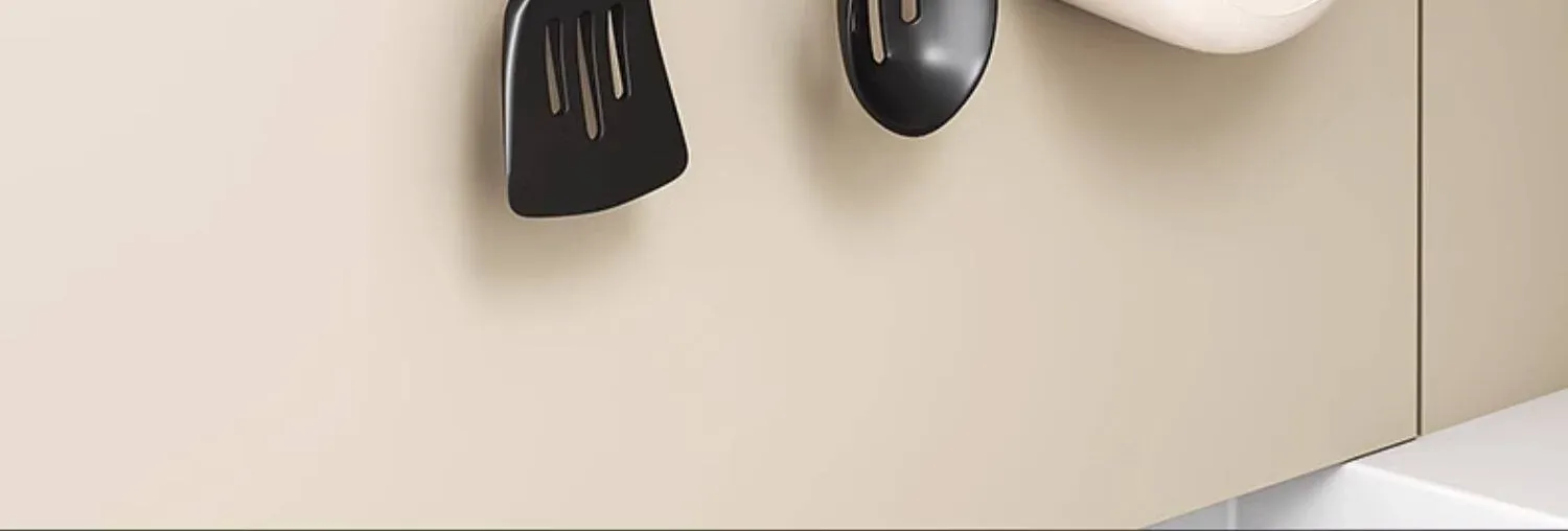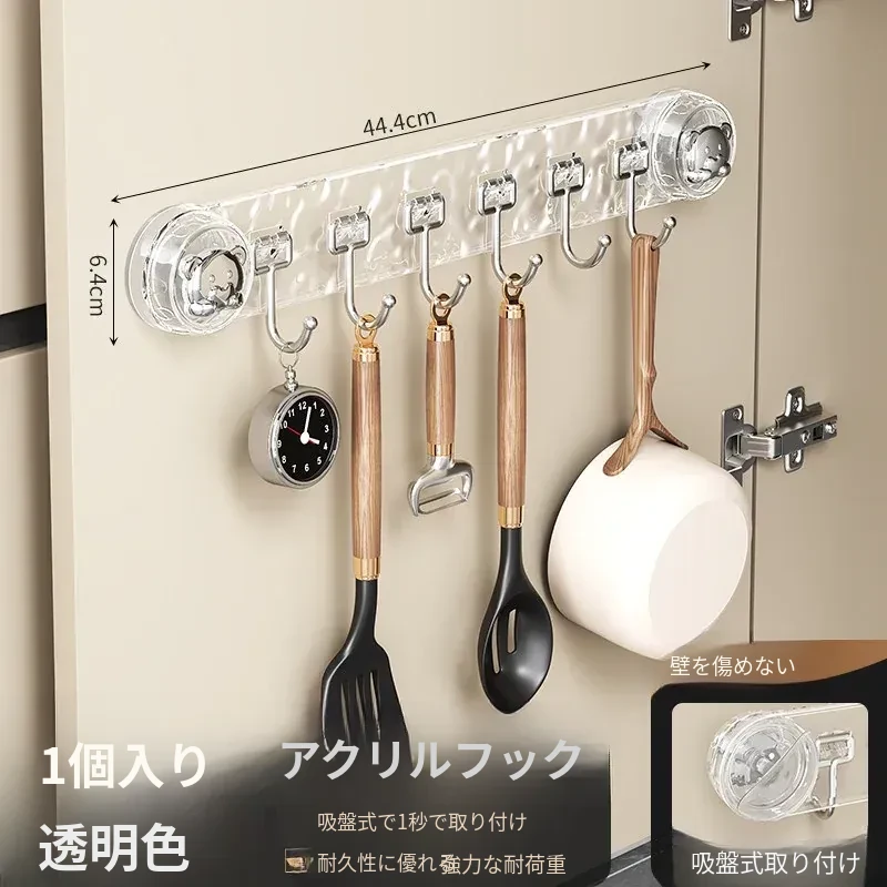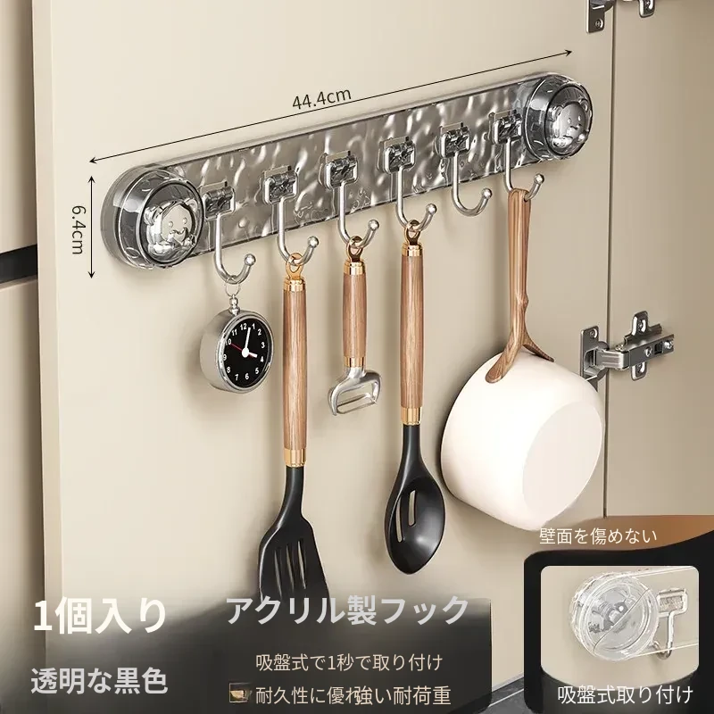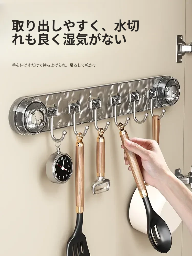 吸盤式キッチンフック - 穴あけ不要で簡単取り付け!スプーンやヘラをスッキリ収納できる、キッチンキャビネット内側用の便利な収納ラック。スペースを有効活用し、料理をもっと楽しく!