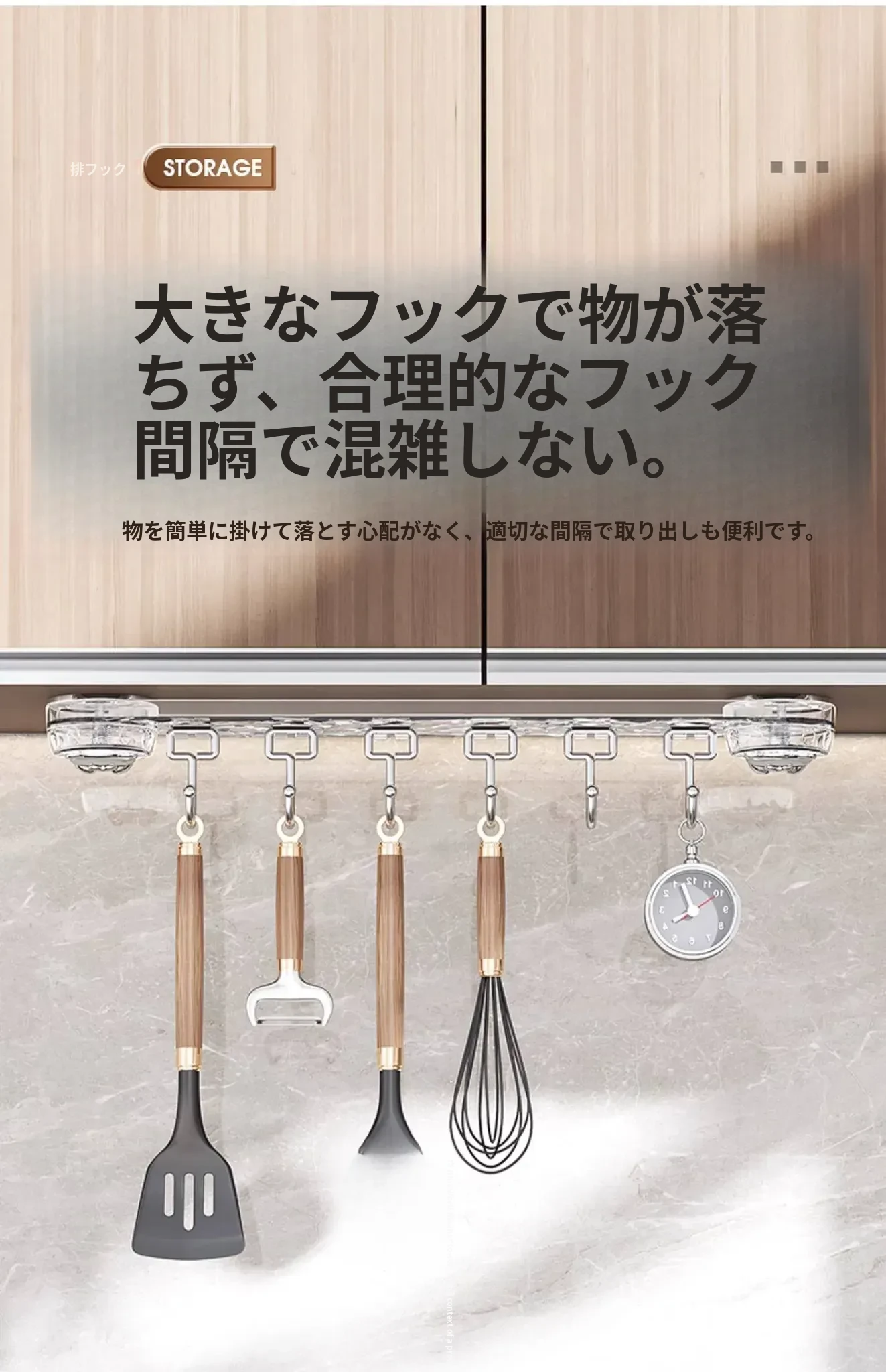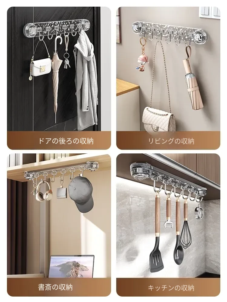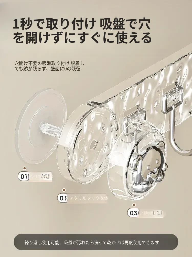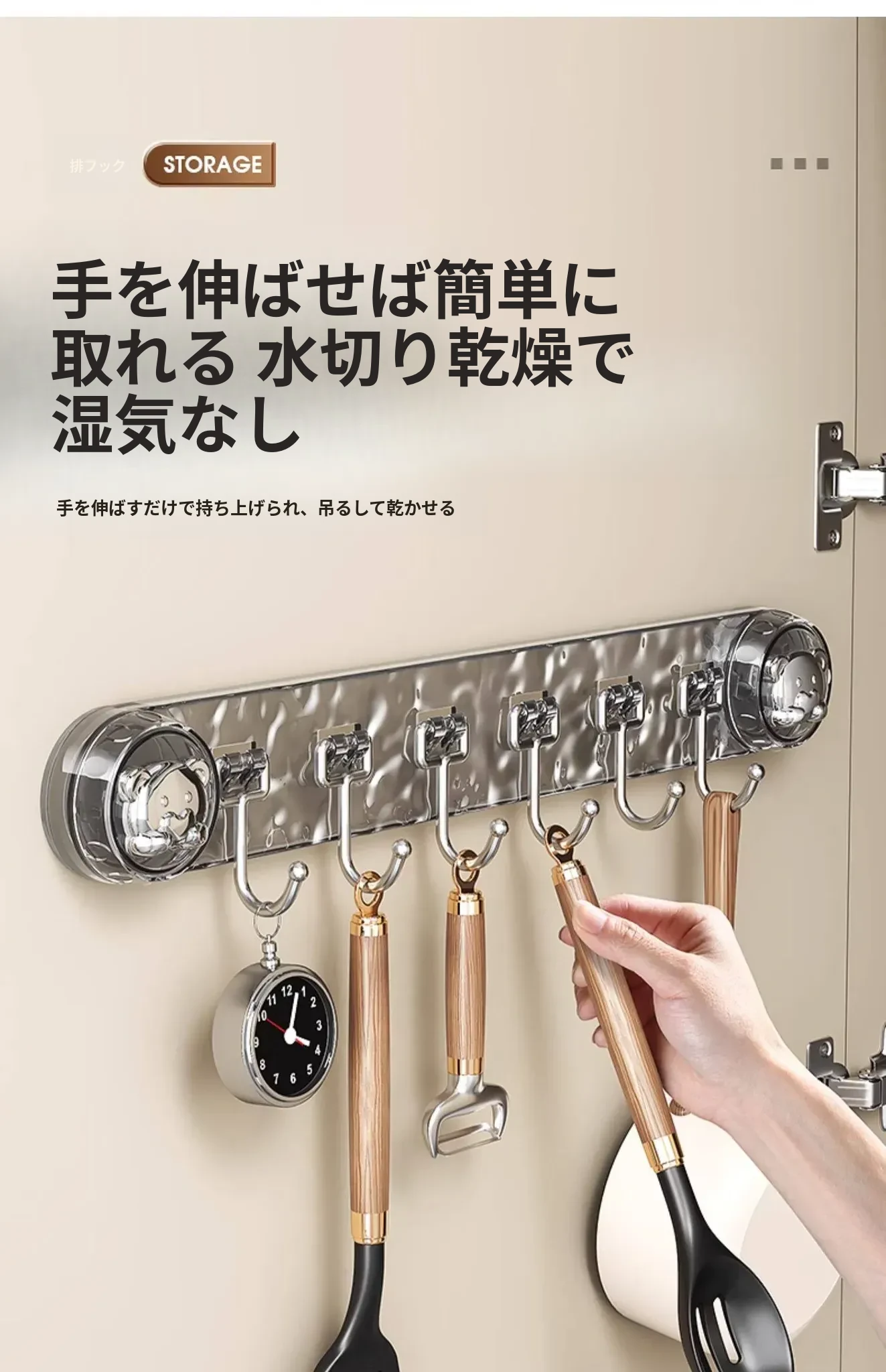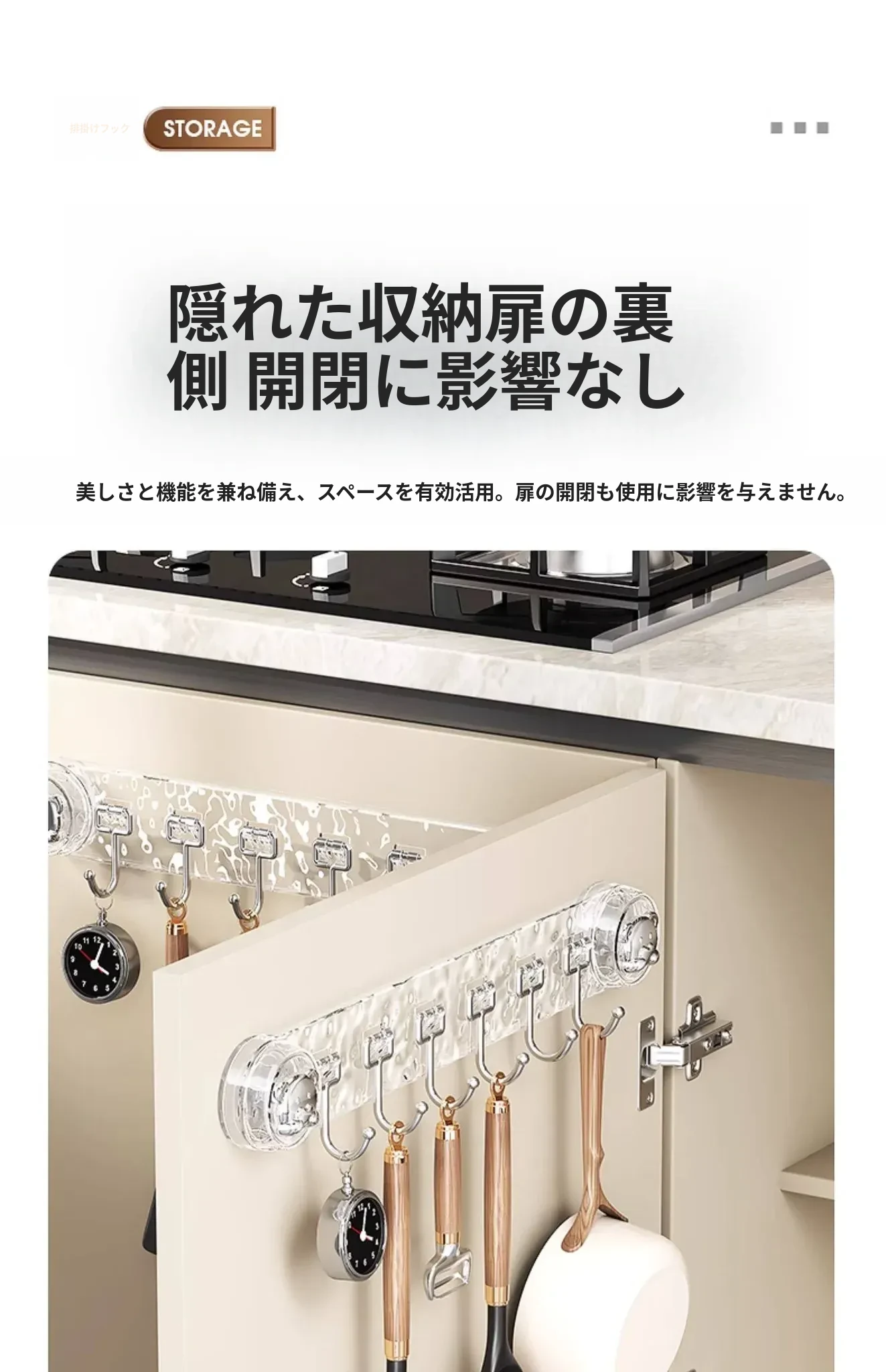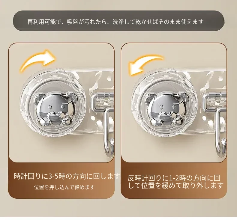 吸盤式キッチンフック - 穴あけ不要で簡単取り付け!スプーンやヘラをスッキリ収納できる、キッチンキャビネット内側用の便利な収納ラック。スペースを有効活用し、料理をもっと楽しく!