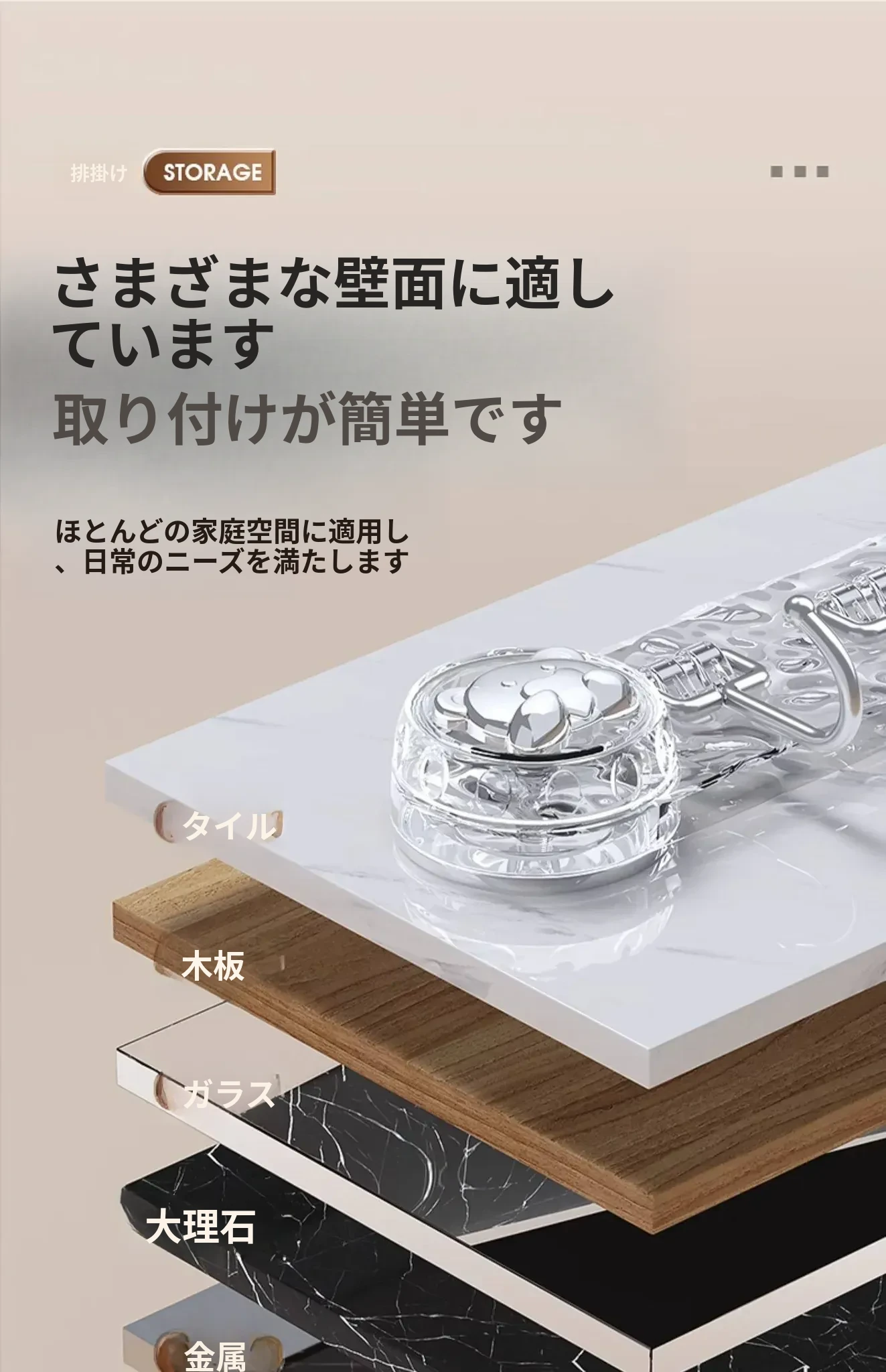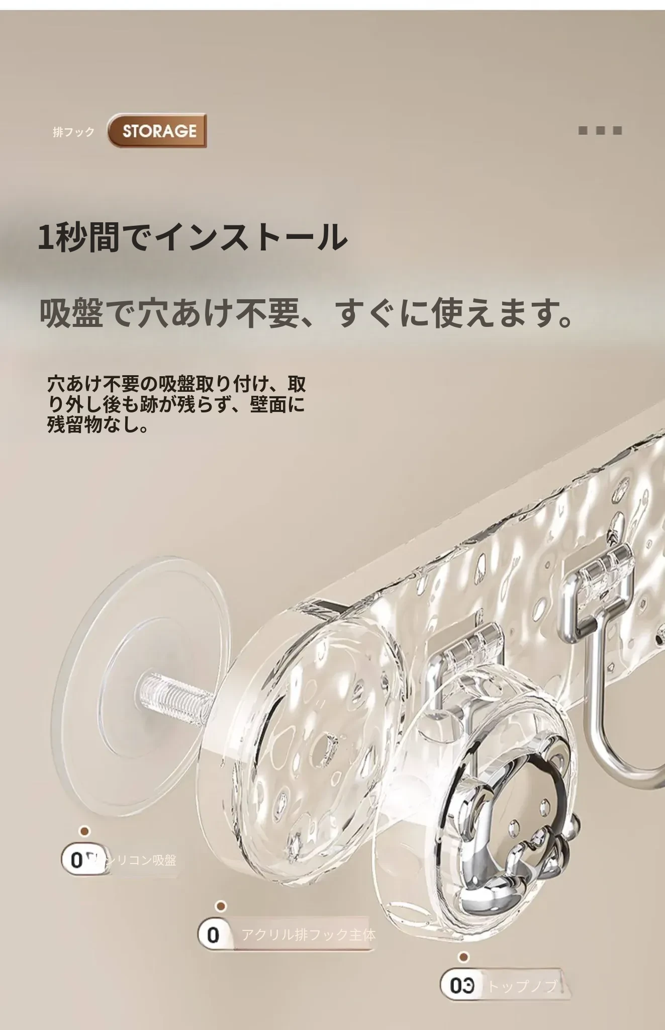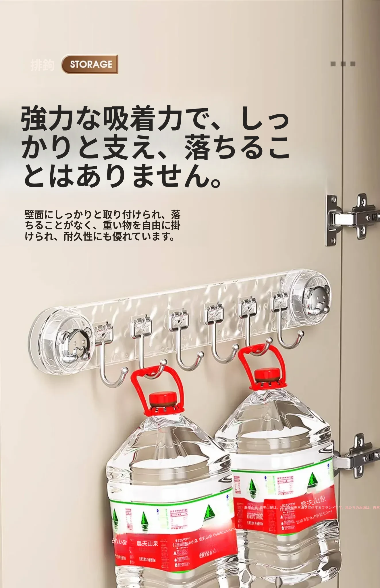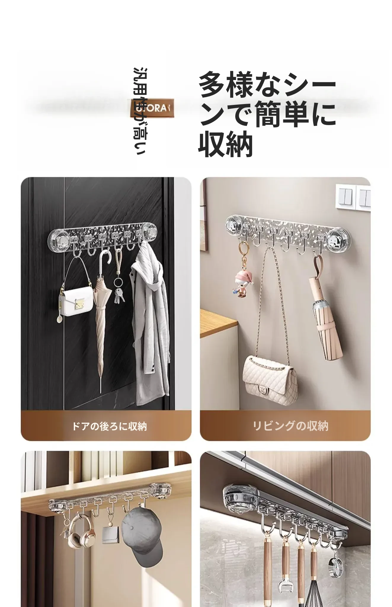 吸盤式キッチンフック - 穴あけ不要で簡単取り付け!スプーンやヘラをスッキリ収納できる、キッチンキャビネット内側用の便利な収納ラック。スペースを有効活用し、料理をもっと楽しく!