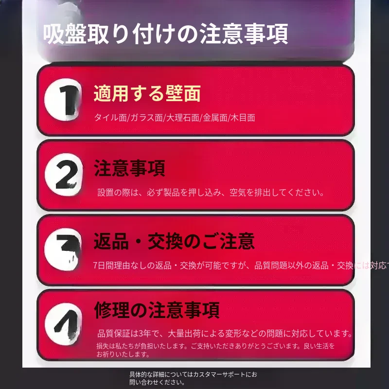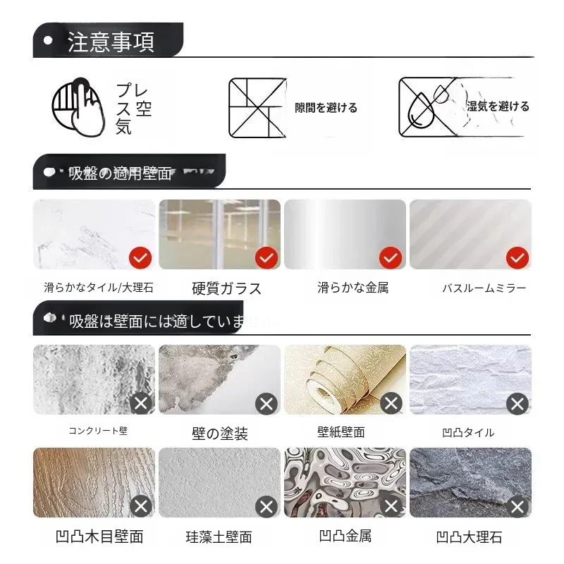 ❗注:"吸盤は壁面に使用できます" 説明をクリックしてください⭐タイル面の使用をお勧めします⭐