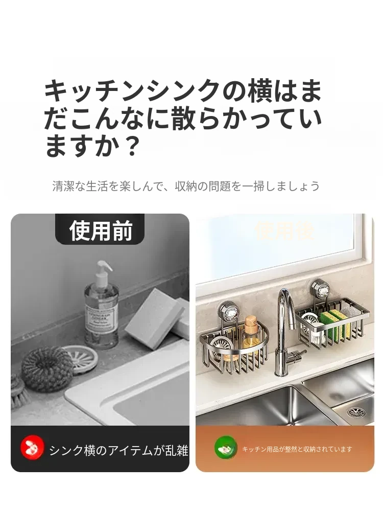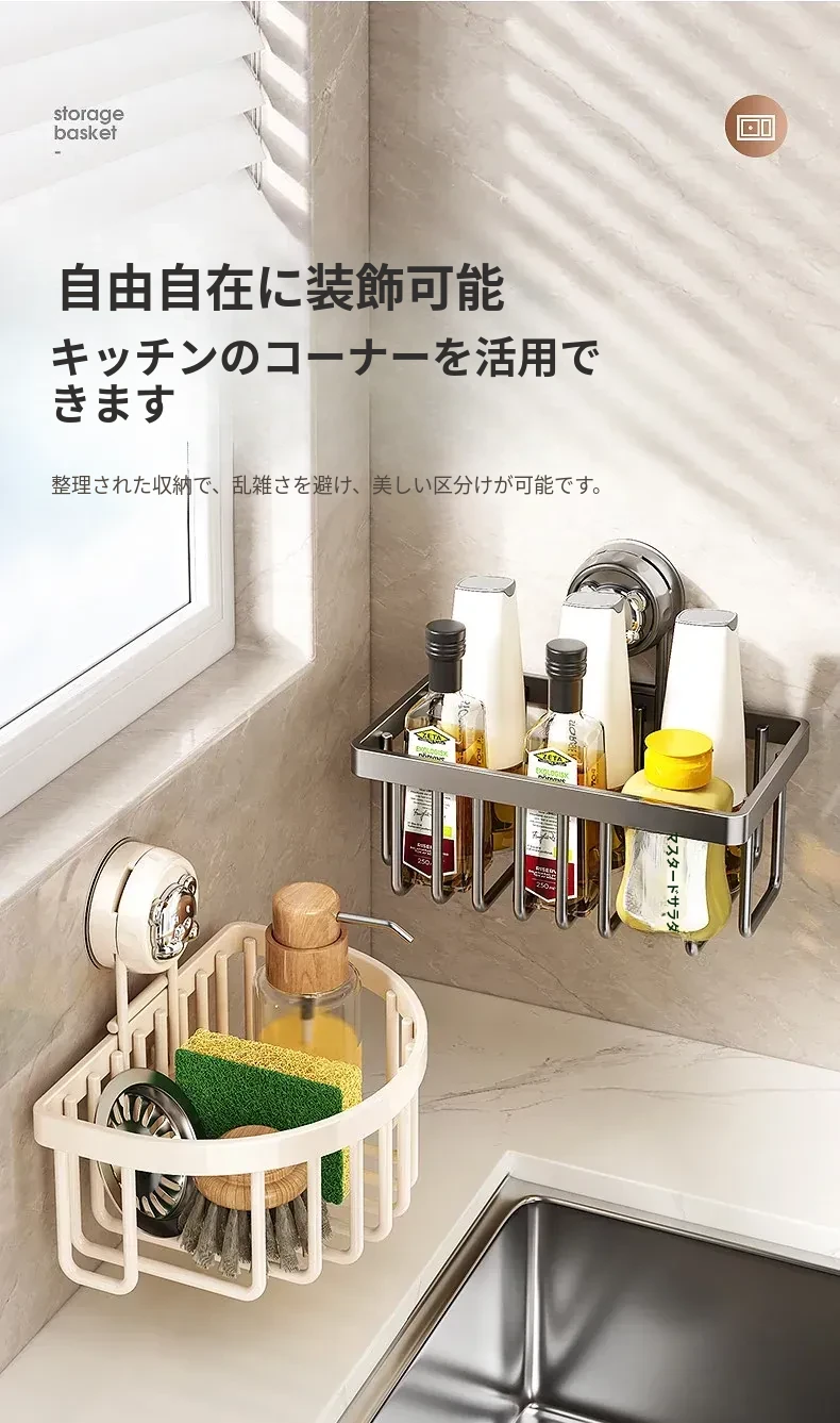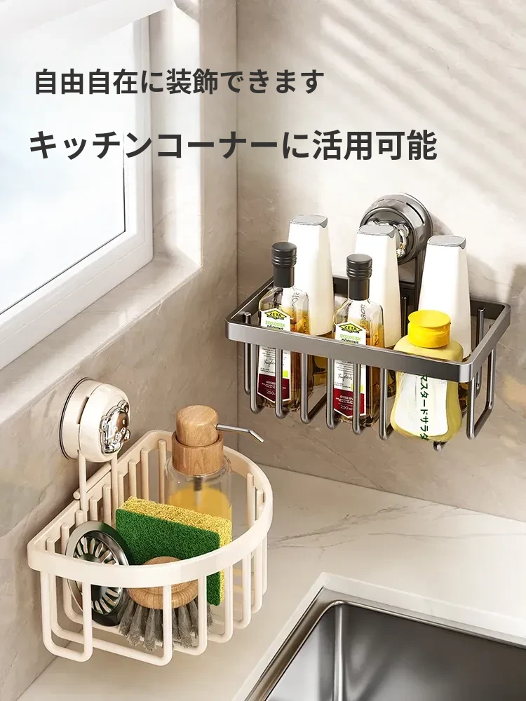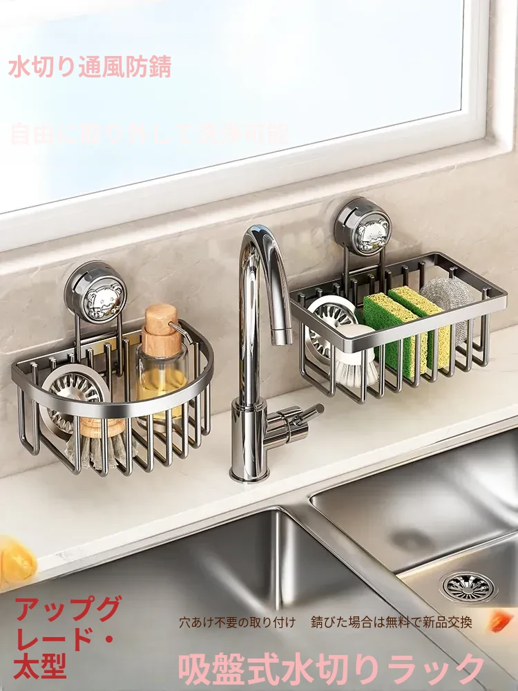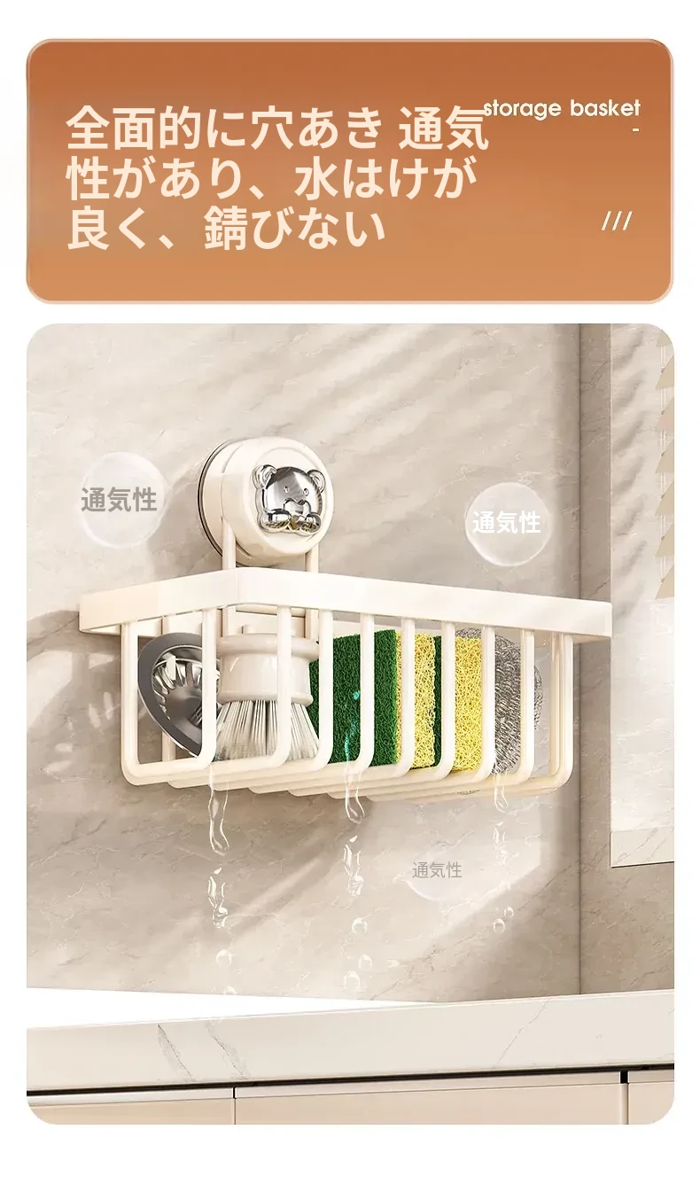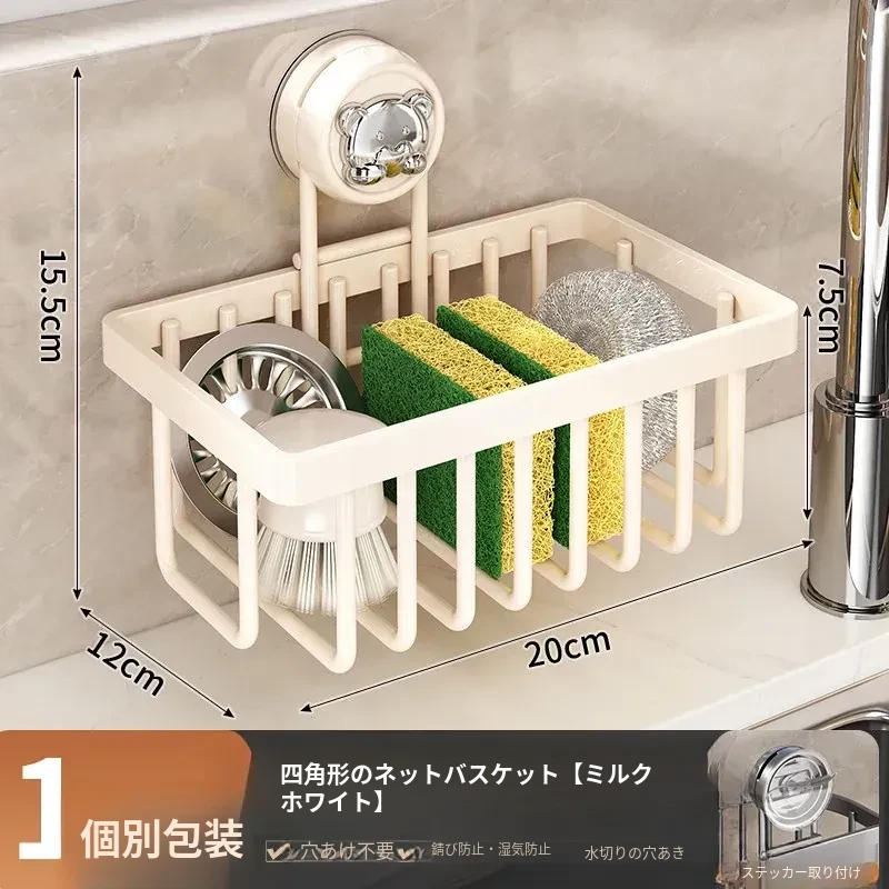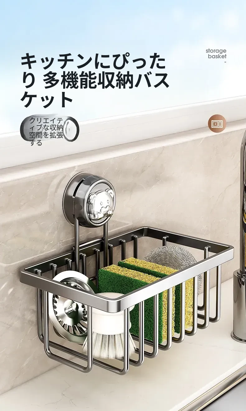 吸盤式キッチン水槽収納ラック - おしゃれで便利なふきん・水切りラック!穴あけ不要の壁掛け設計で、蛇口やスポンジをスマートに収納。キッチンをスッキリさせる必需品!