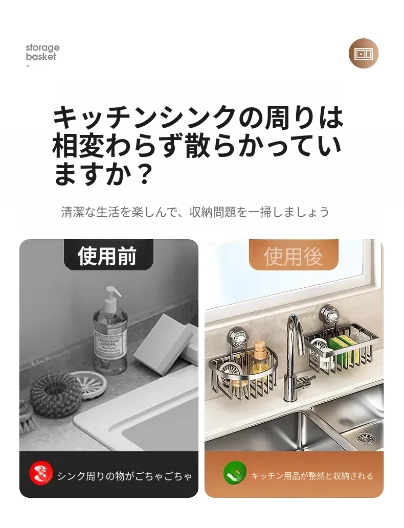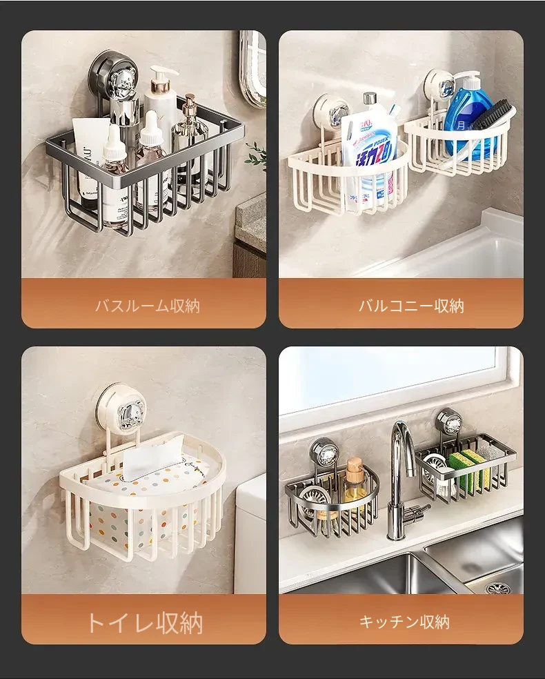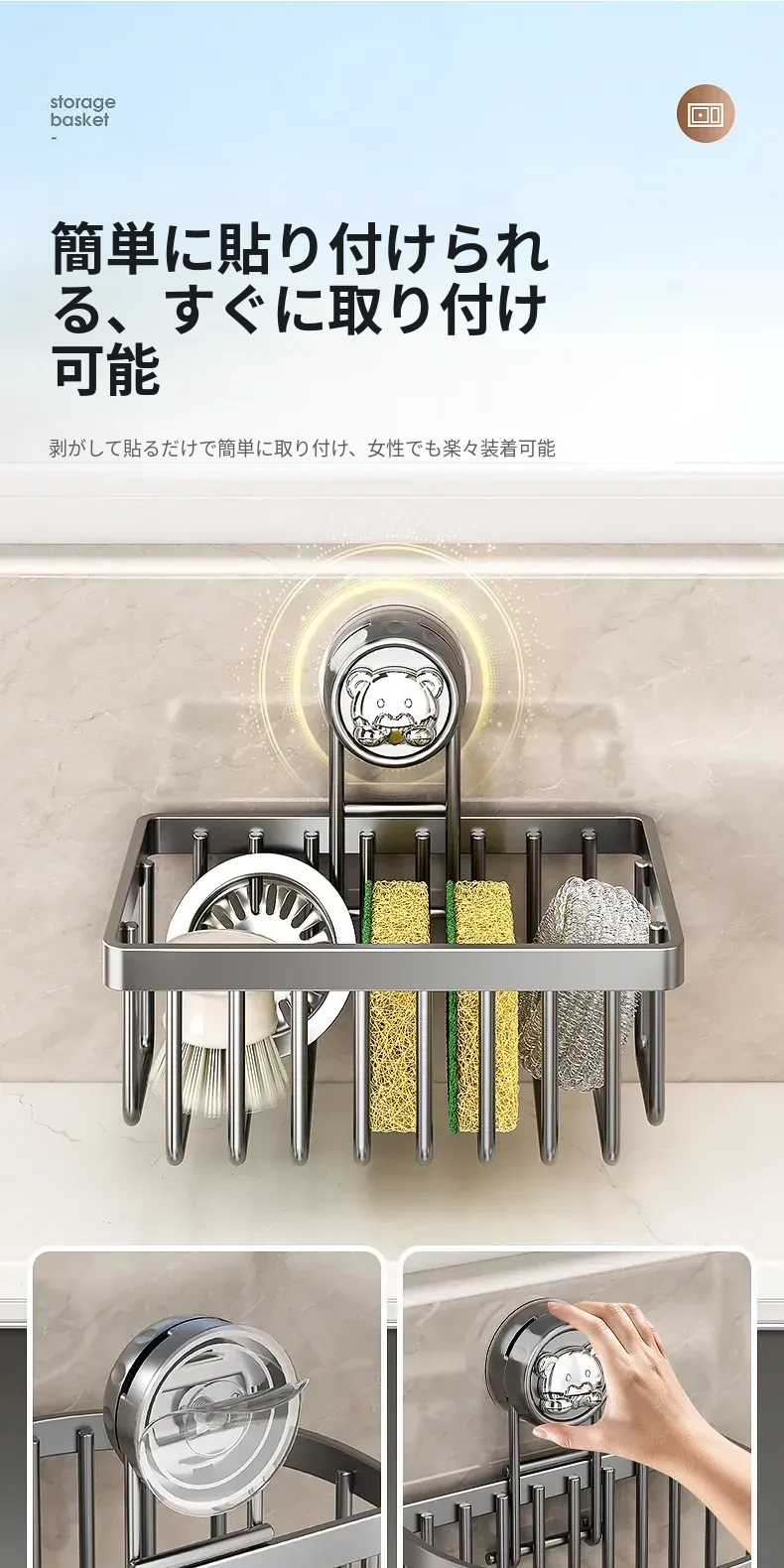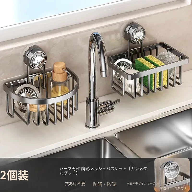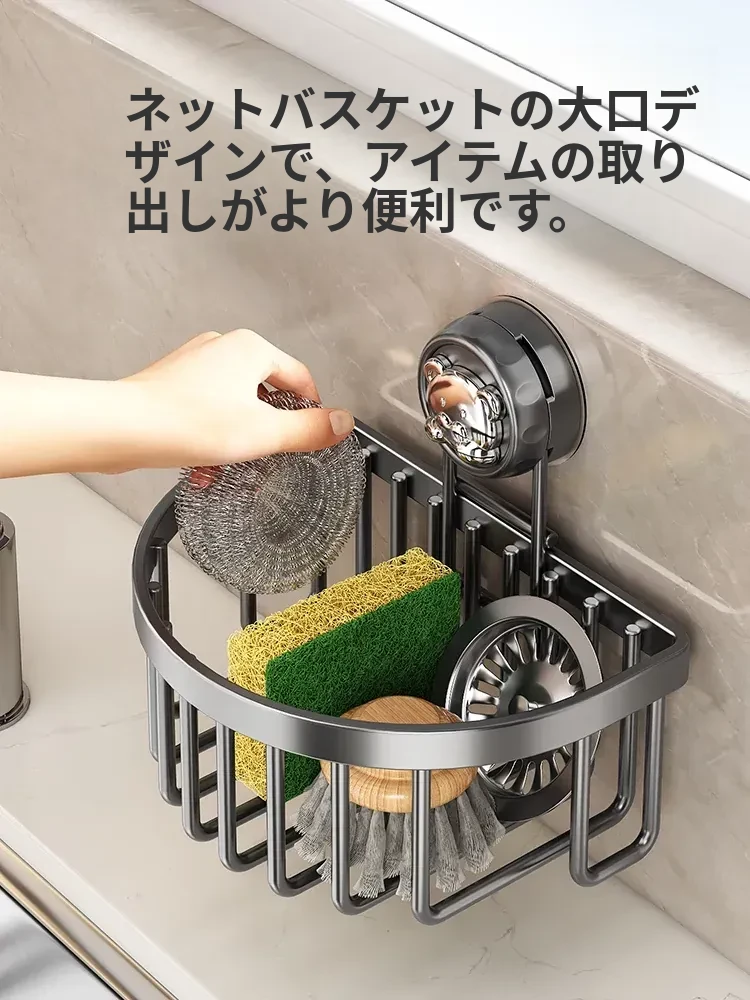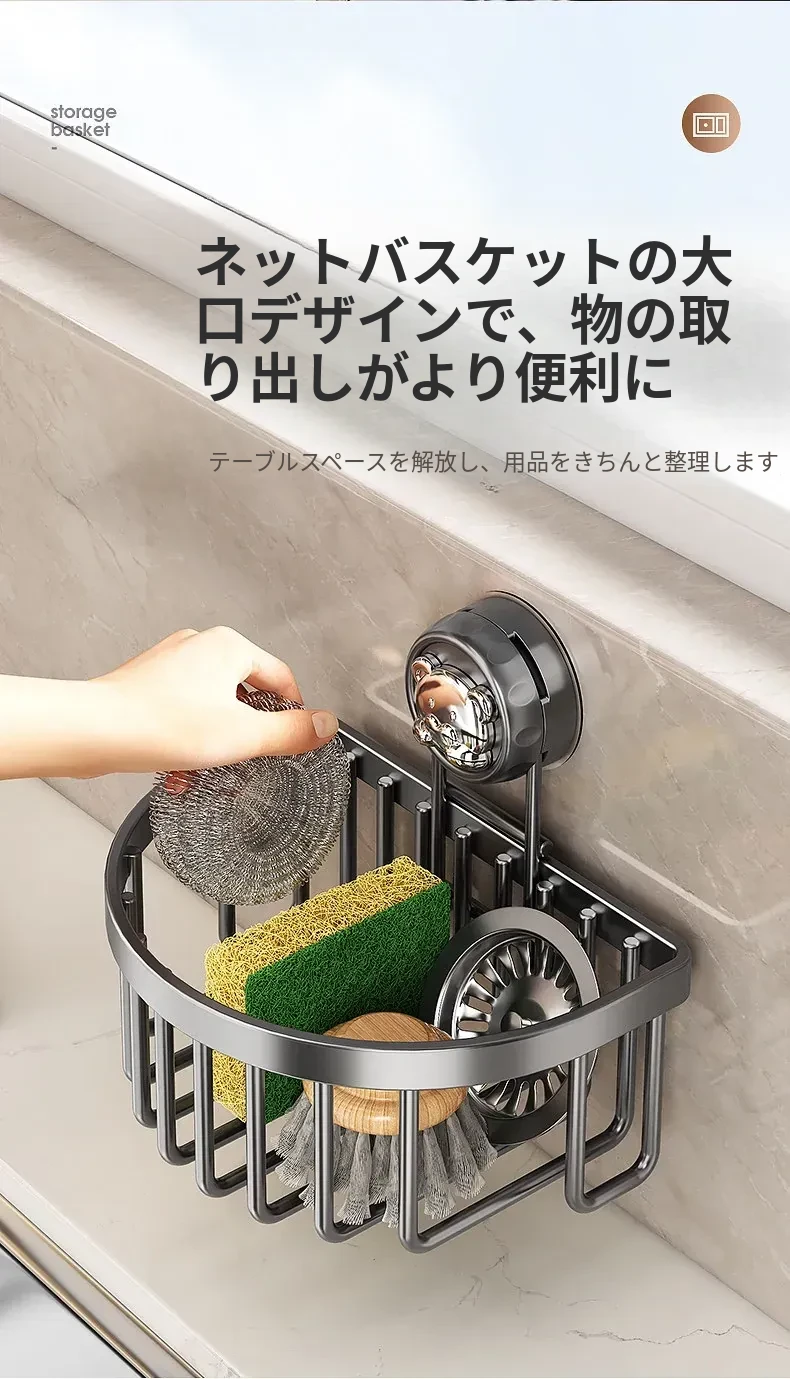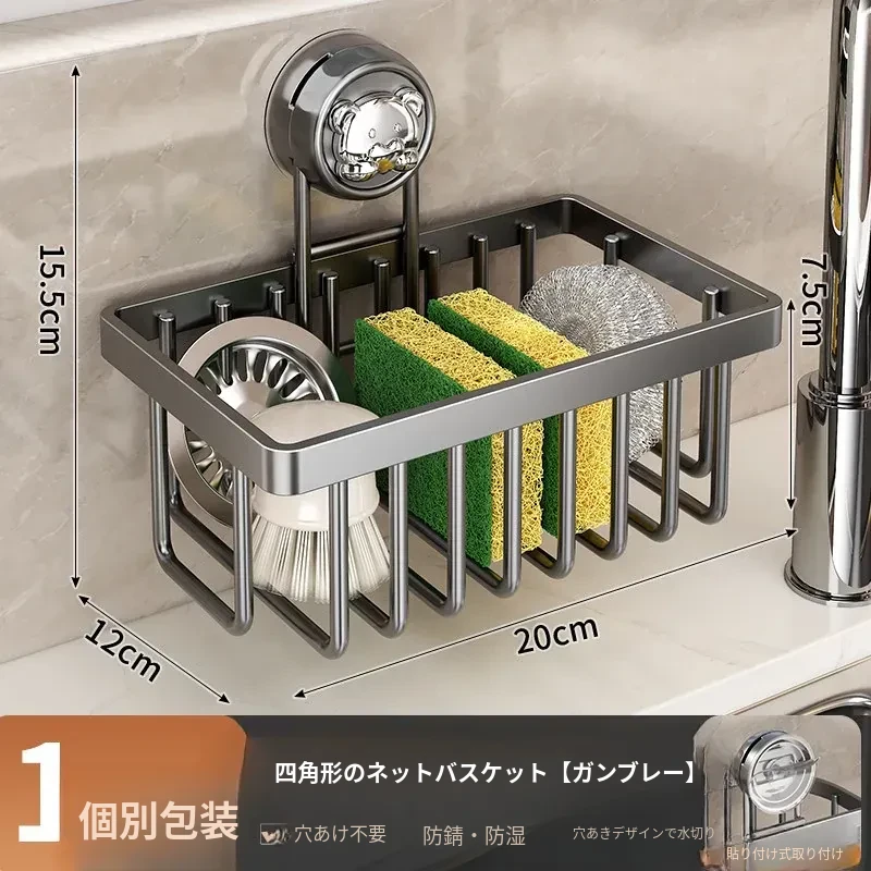 吸盤式キッチン水槽収納ラック - おしゃれで便利なふきん・水切りラック!穴あけ不要の壁掛け設計で、蛇口やスポンジをスマートに収納。キッチンをスッキリさせる必需品!