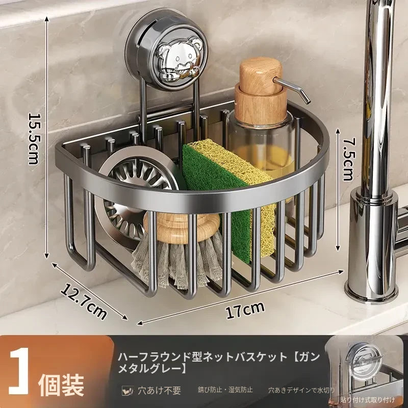 ガンメタル・ハーフサークル吸盤水切りバスケット【1個入り】