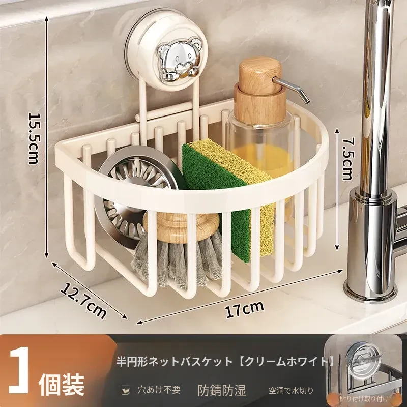 ミルキーホワイト・ハーフサークル吸盤水切りバスケット【1個入り】