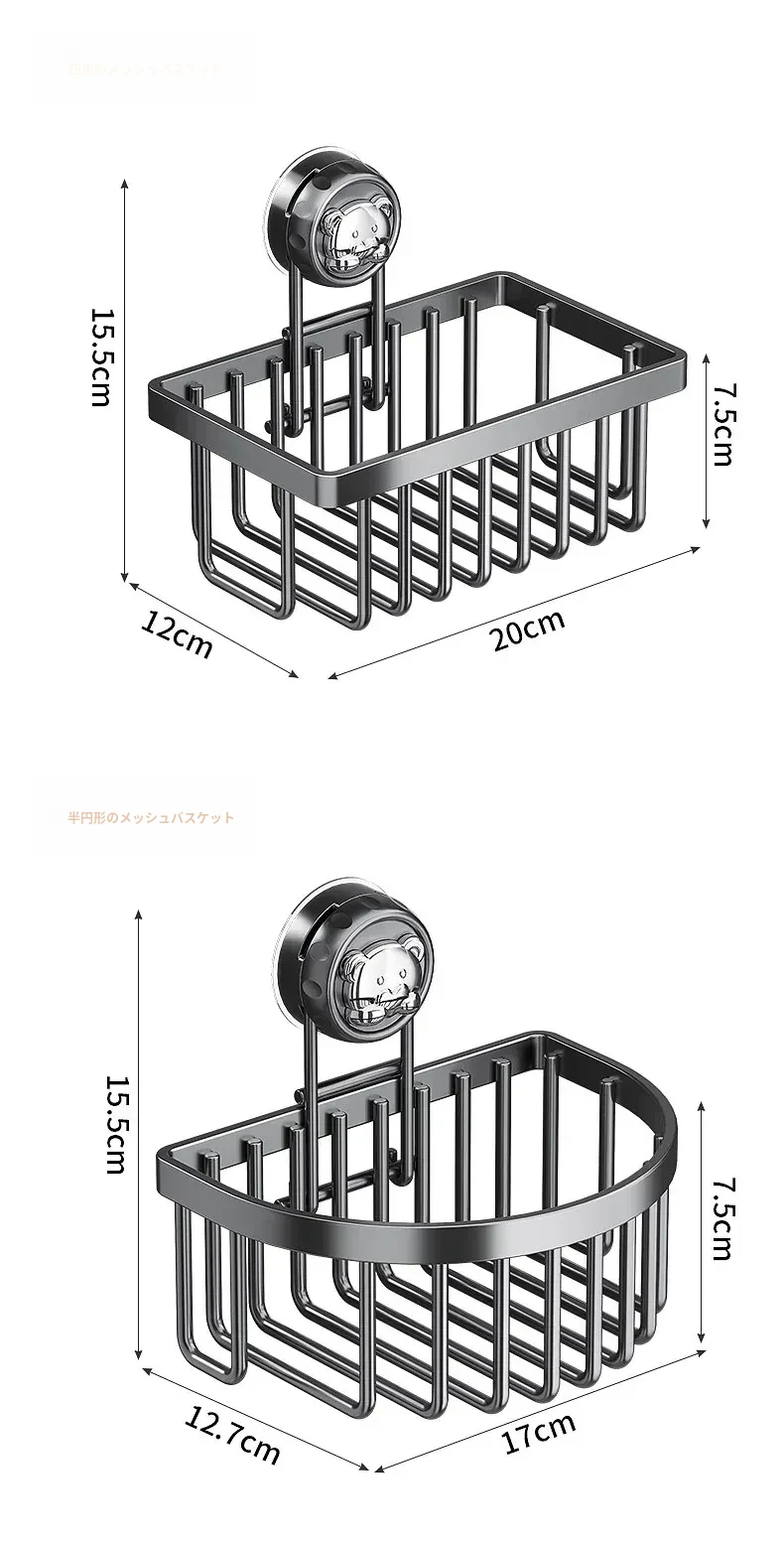 ガンメタル・吸盤水切りバスケット【スクエア+ハーフサークル】