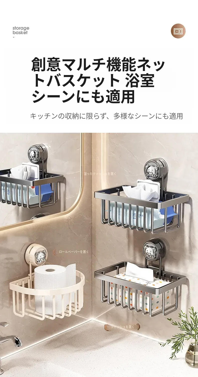 ミルキーホワイト・スクエア吸盤水切りバスケット【1個入り】