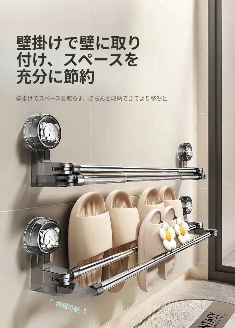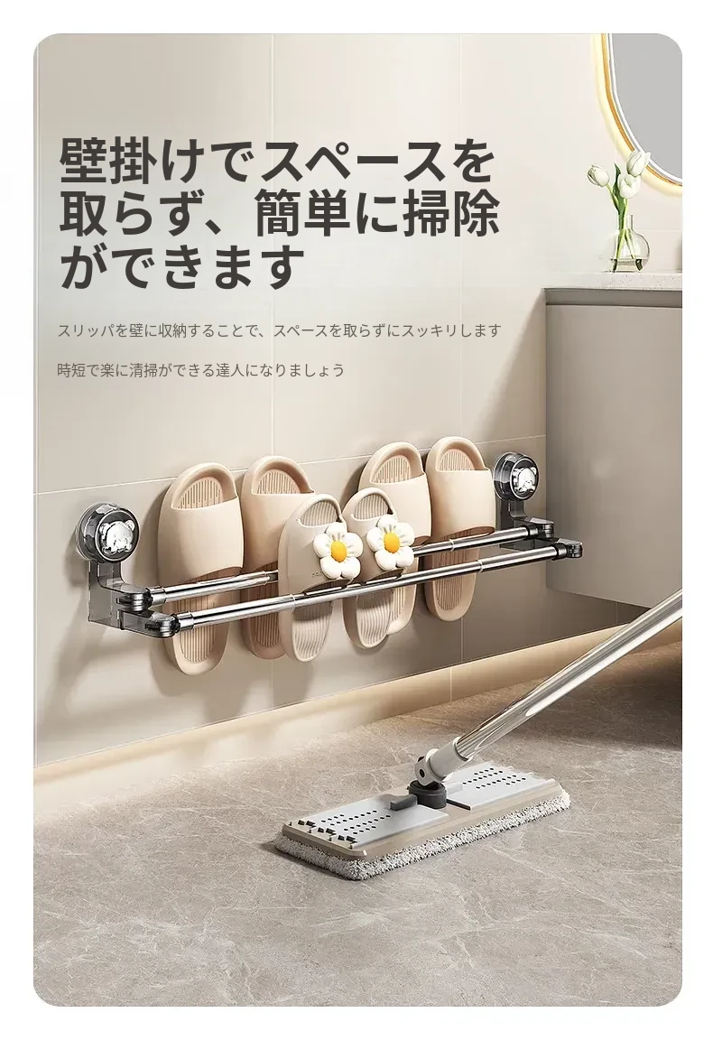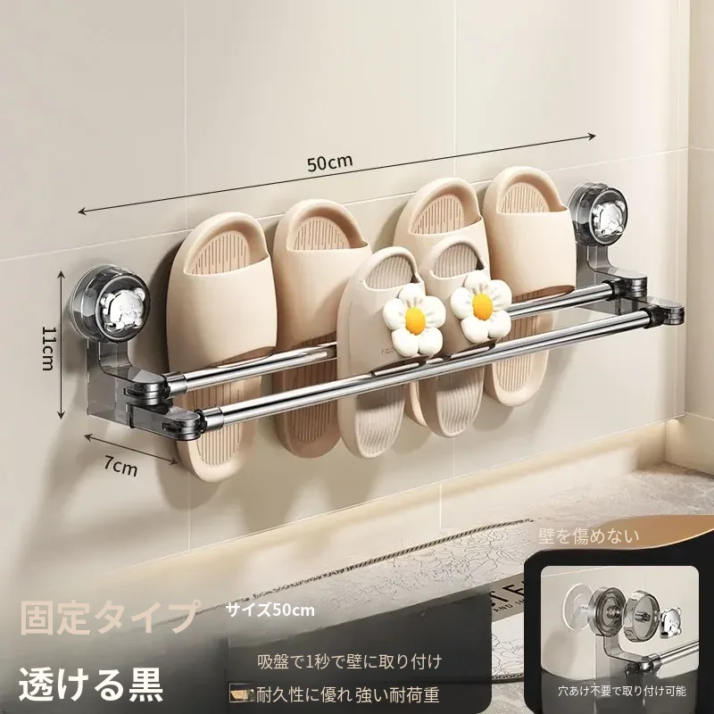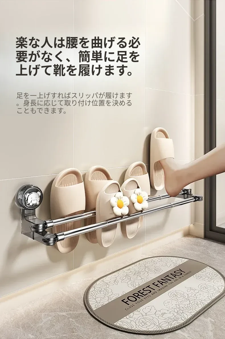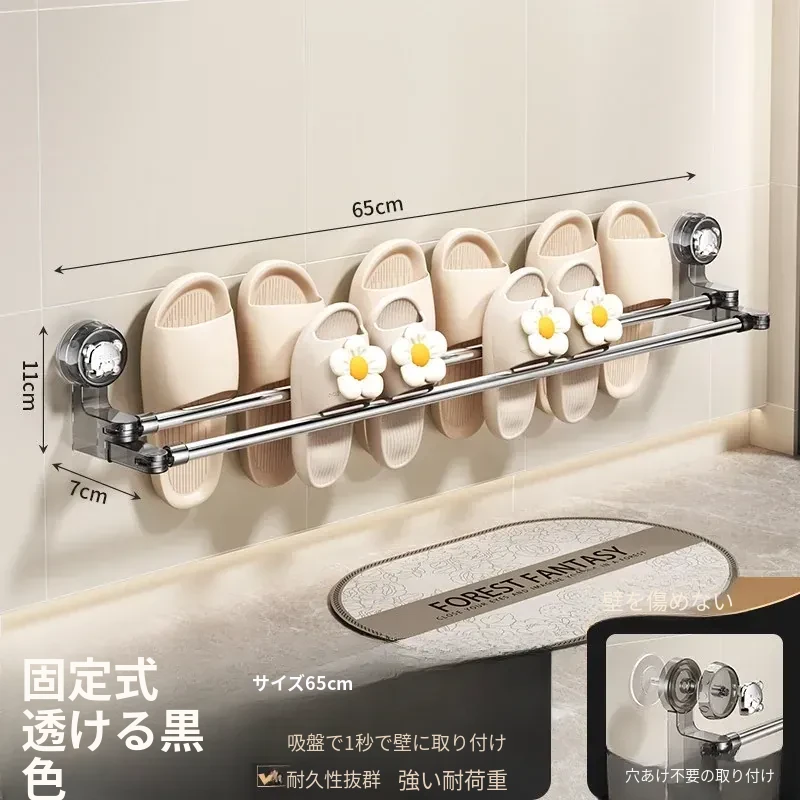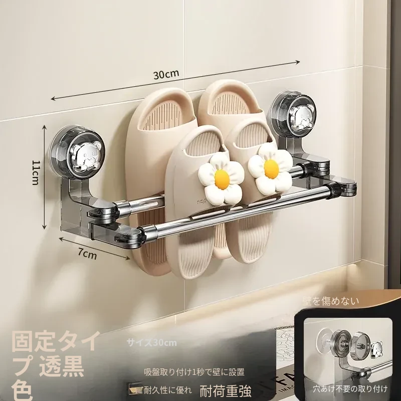 吸盤式スリッパラック - 穴あけ不要の便利なバスルーム収納!水切れの良いデザインで、トイレや浴室のスリッパをすっきり整理。清潔感溢れる空間を手に入れましょう!