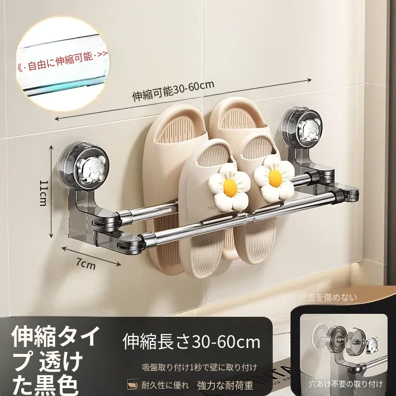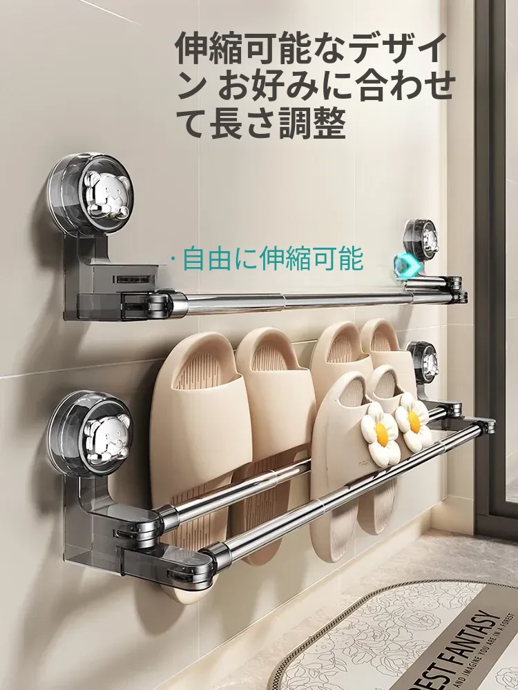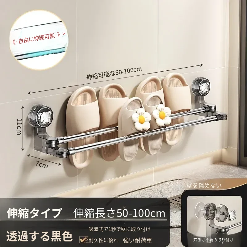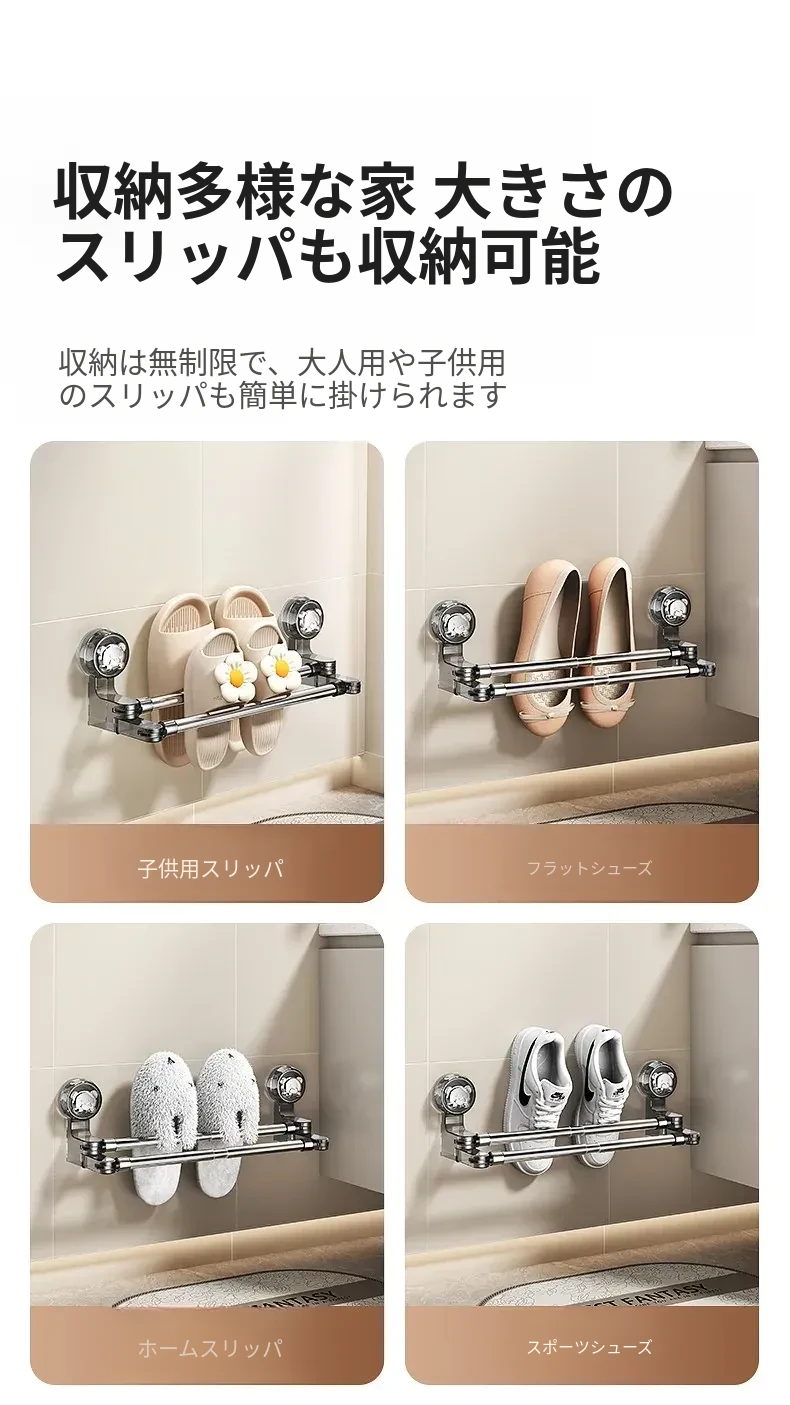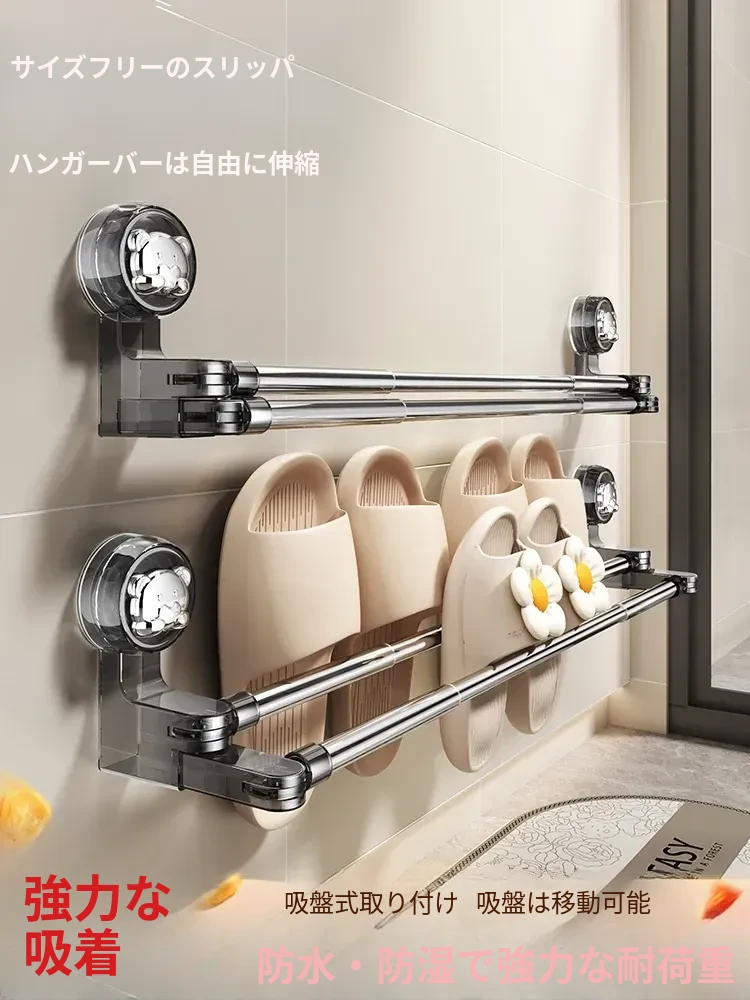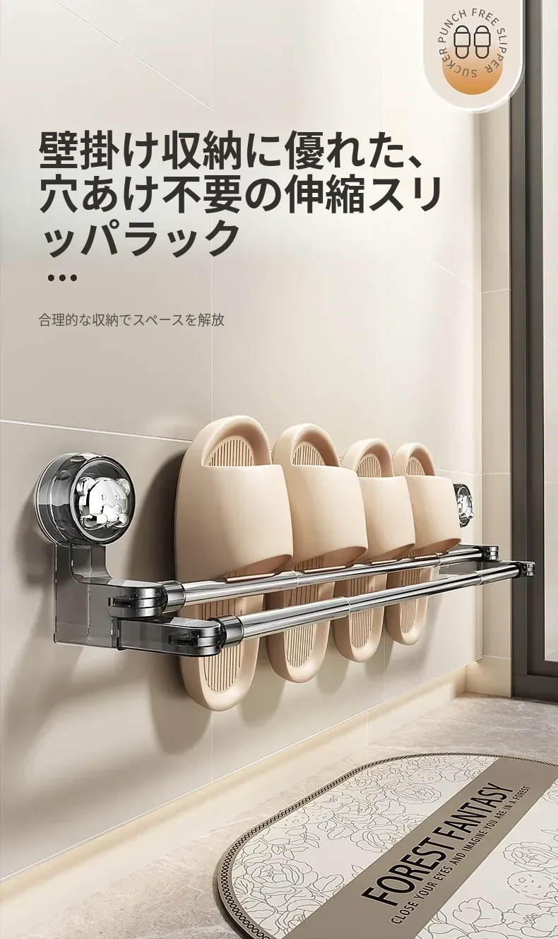 吸盤式スリッパラック - 穴あけ不要の便利なバスルーム収納!水切れの良いデザインで、トイレや浴室のスリッパをすっきり整理。清潔感溢れる空間を手に入れましょう!