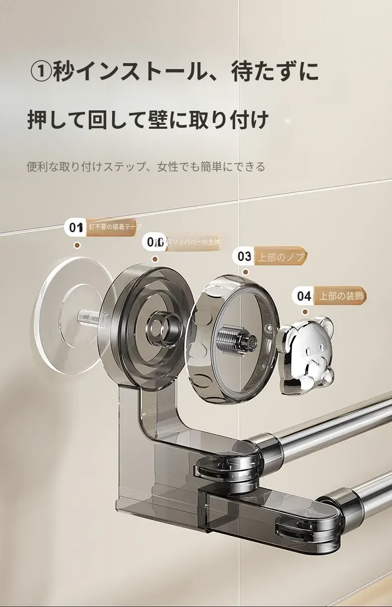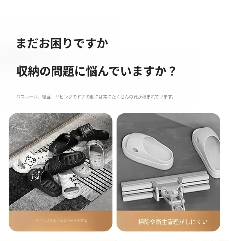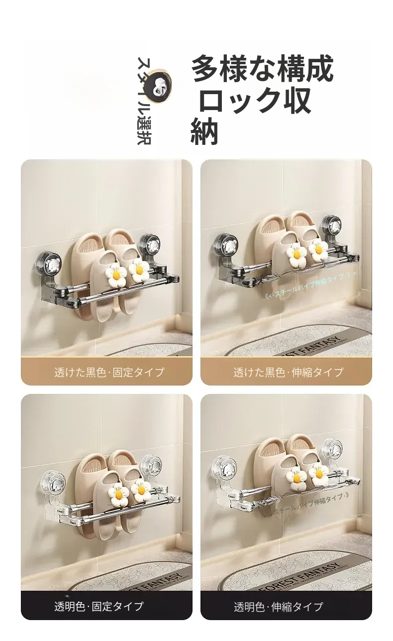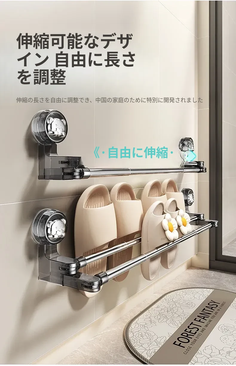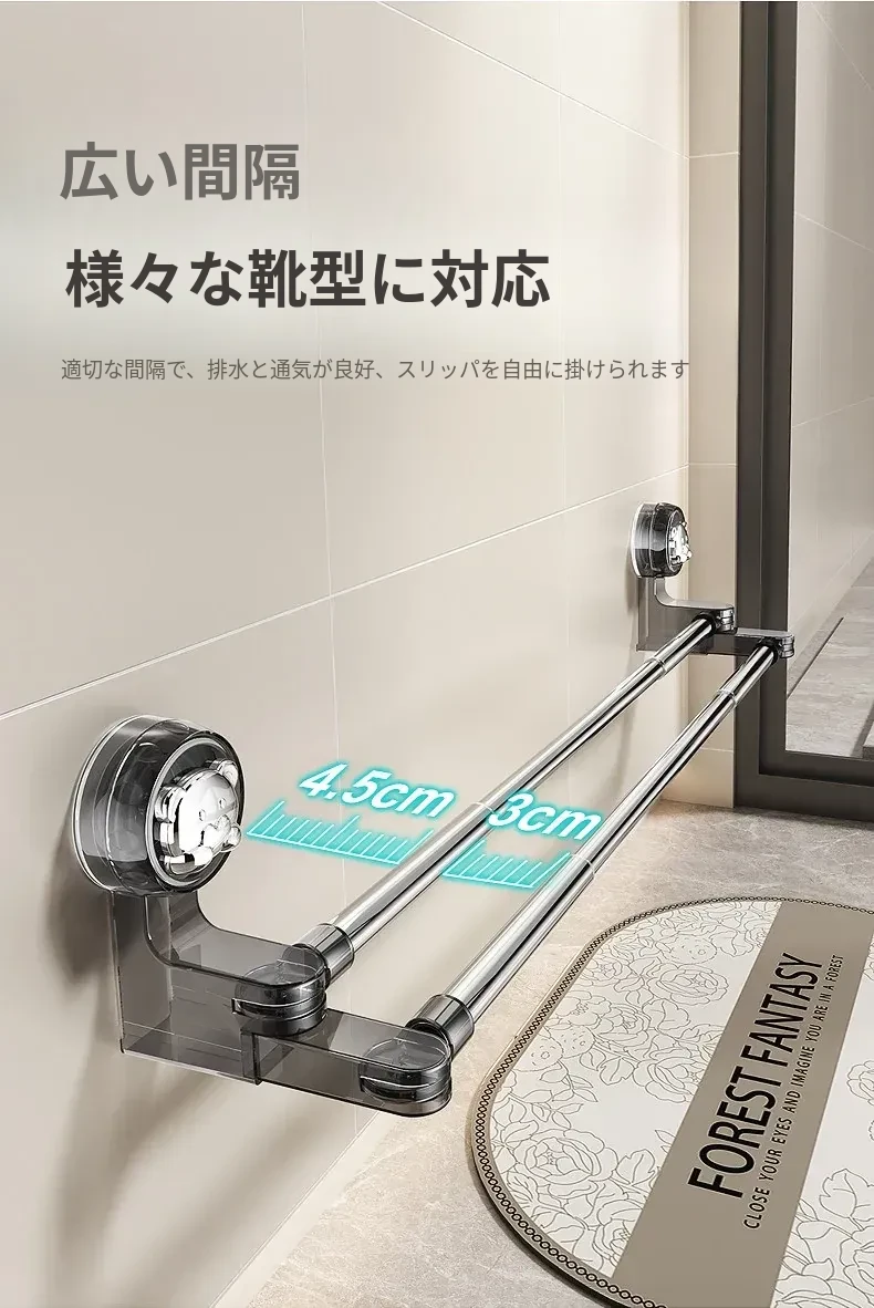 吸盤式スリッパラック - 穴あけ不要の便利なバスルーム収納!水切れの良いデザインで、トイレや浴室のスリッパをすっきり整理。清潔感溢れる空間を手に入れましょう!