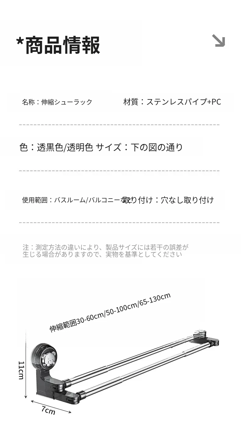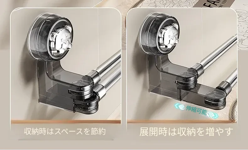 透黒●吸盤二本棒50-100CM【6足掛け可】