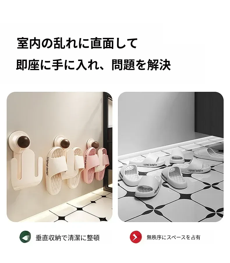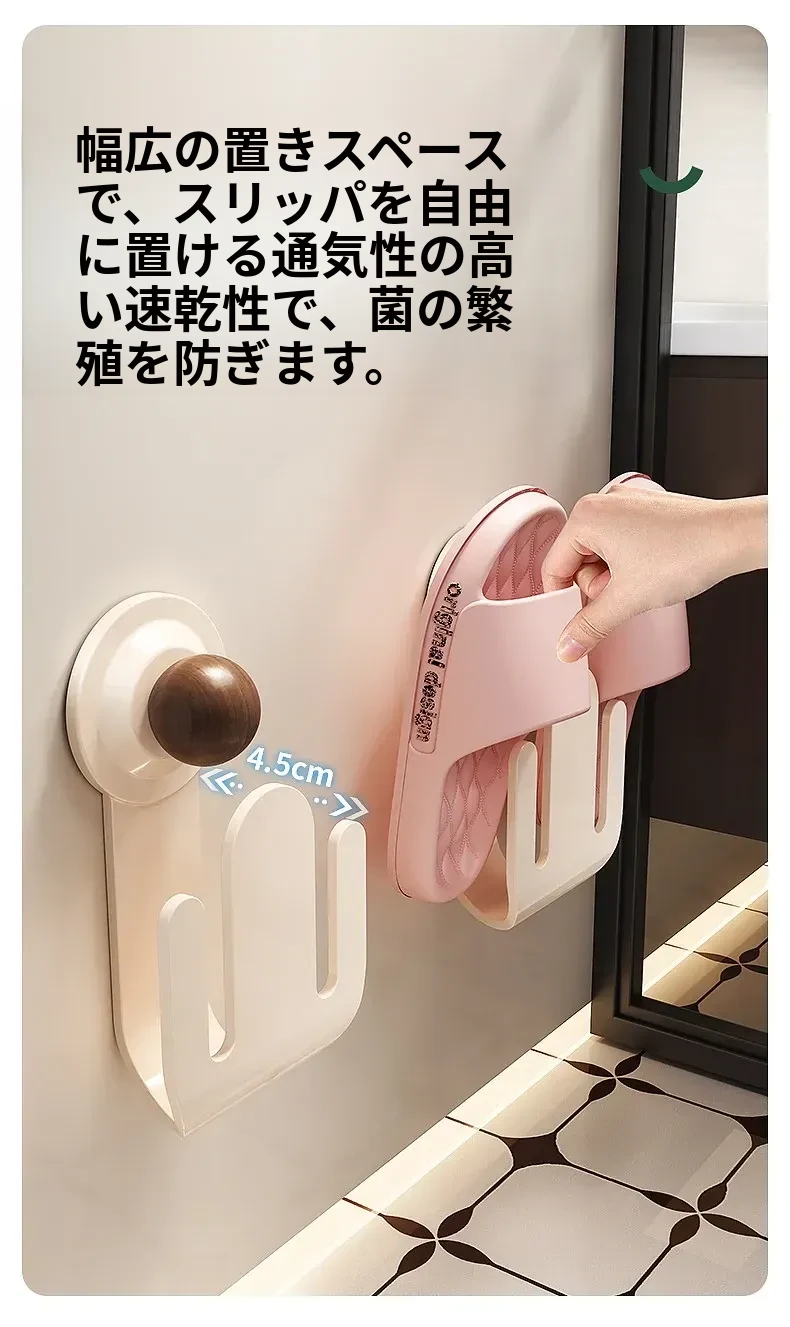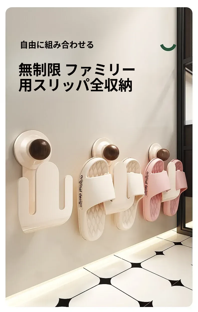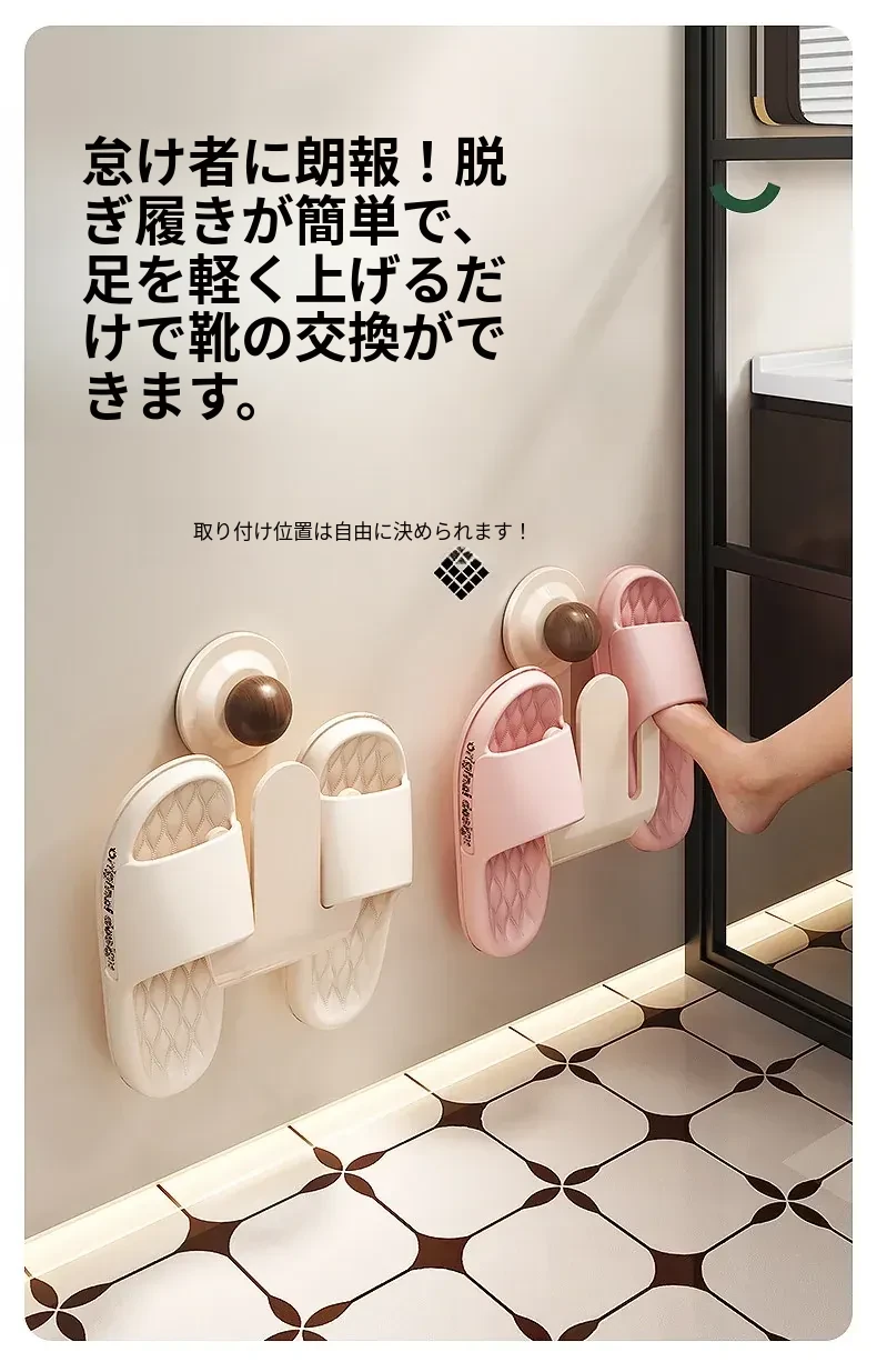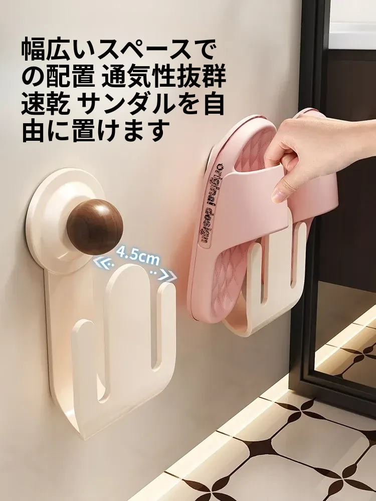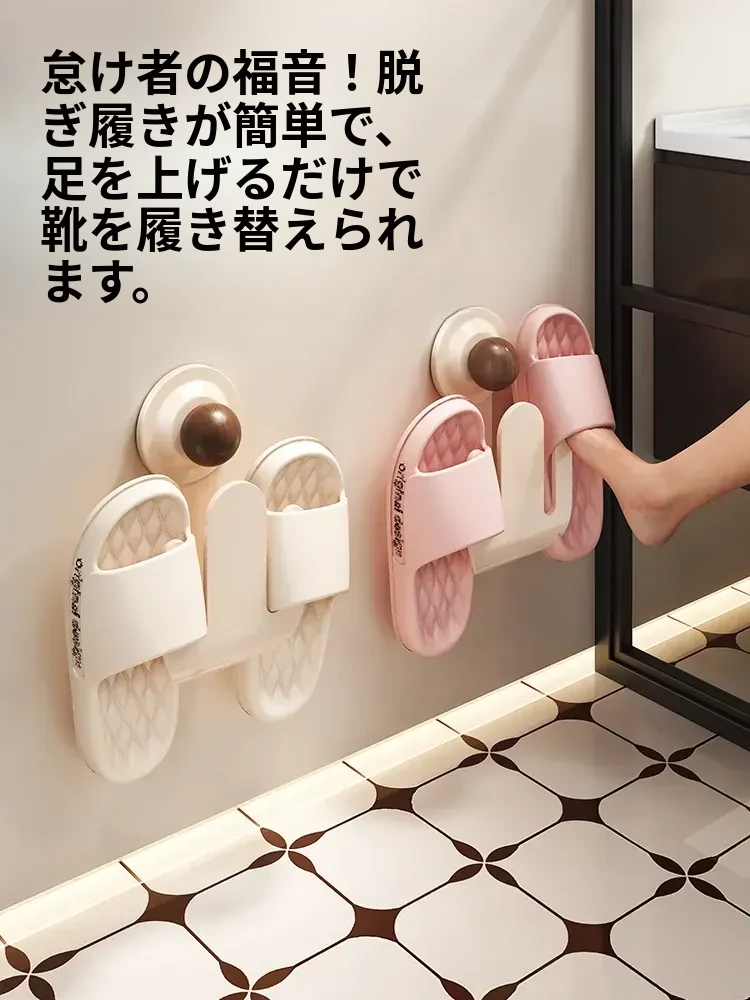 吸盤式スリッパラック 壁掛けで簡単取り付け!トイレやバスルームの湿気を防ぎ、スリッパを整理整頓。おしゃれなデザインでスペースを有効活用、家族全員の靴をすっきり収納!