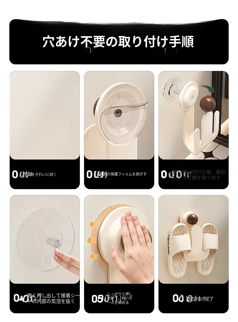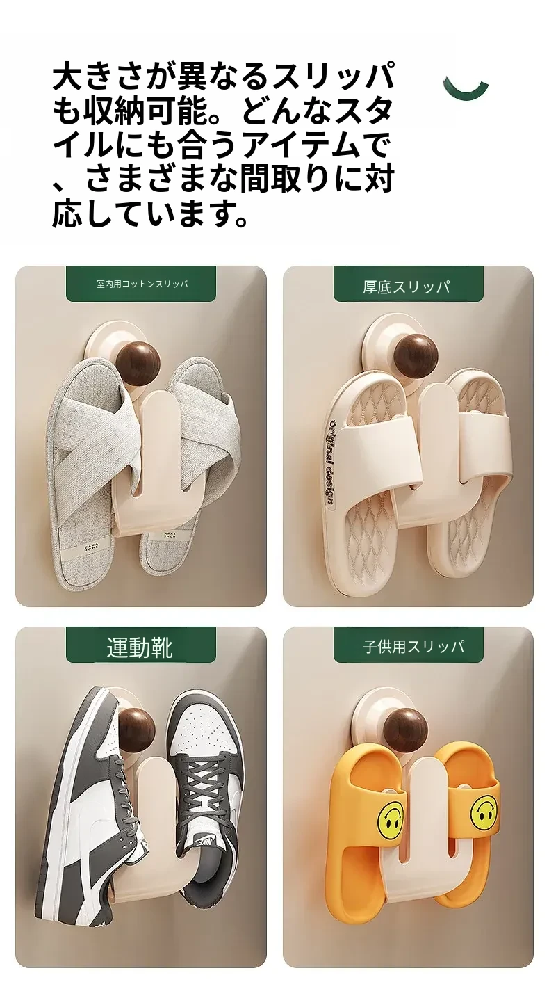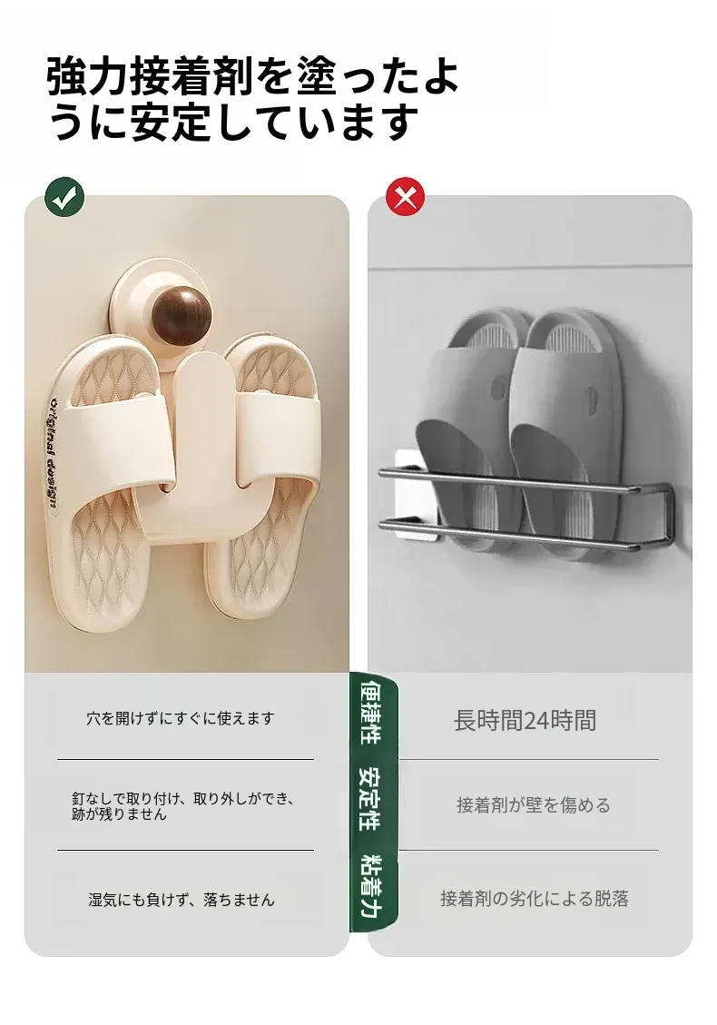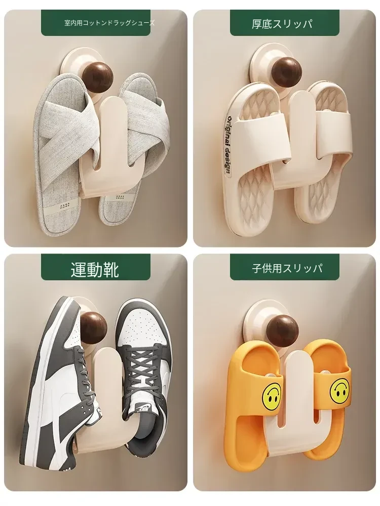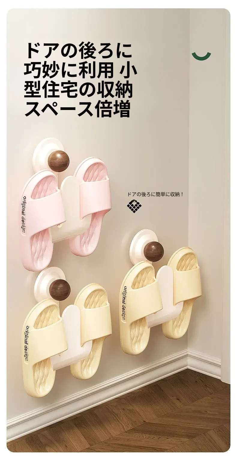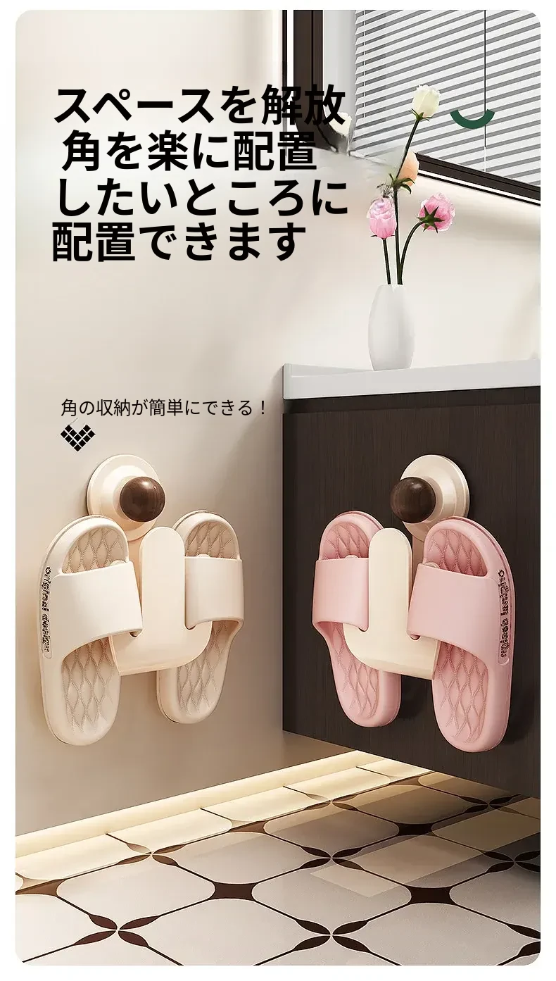 吸盤式スリッパラック 壁掛けで簡単取り付け!トイレやバスルームの湿気を防ぎ、スリッパを整理整頓。おしゃれなデザインでスペースを有効活用、家族全員の靴をすっきり収納!