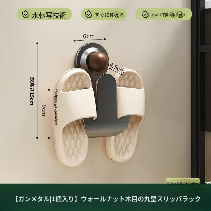 【ガンメタル】ウォールナット調スリッパラック-1個入り
