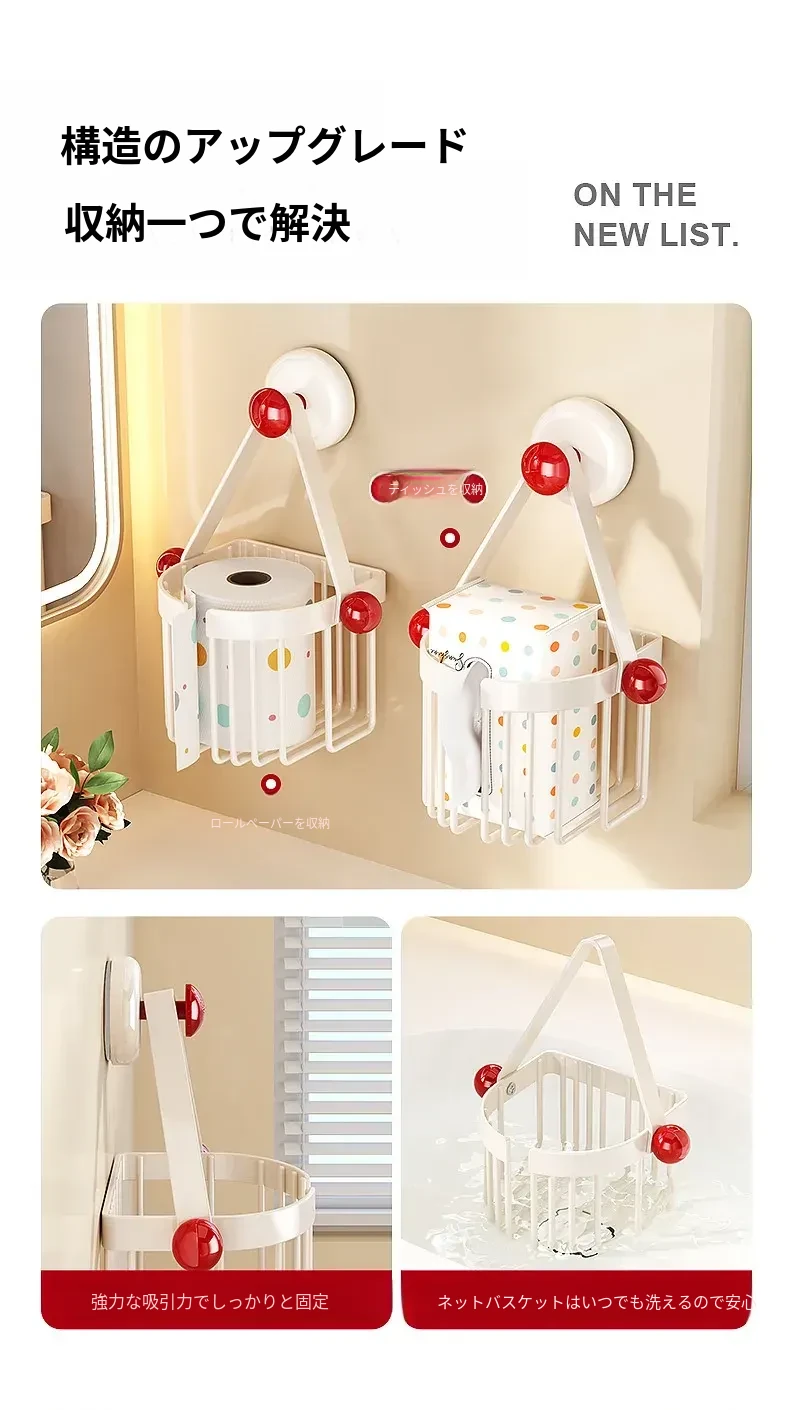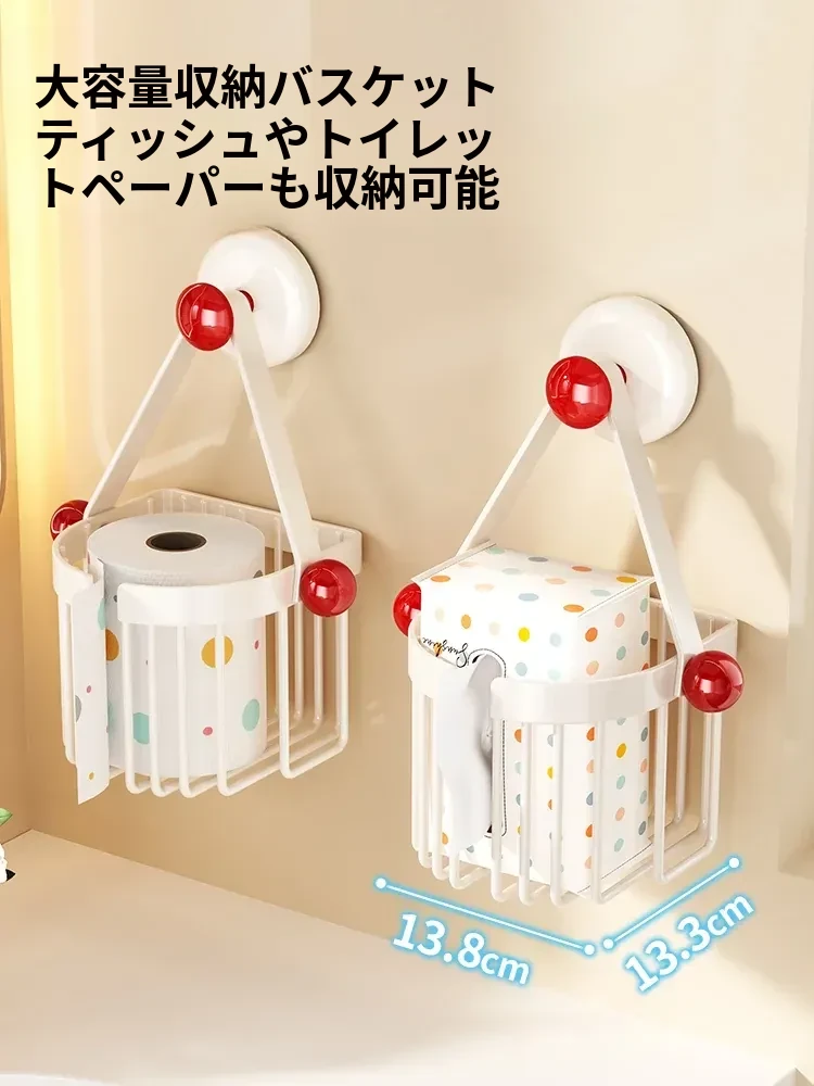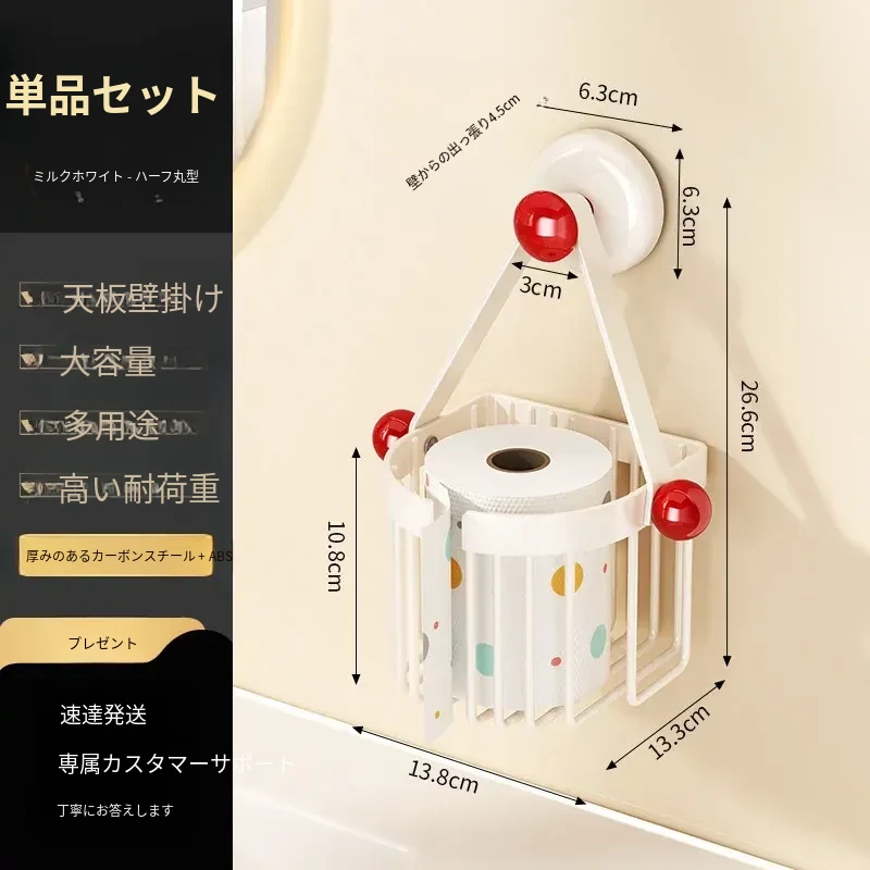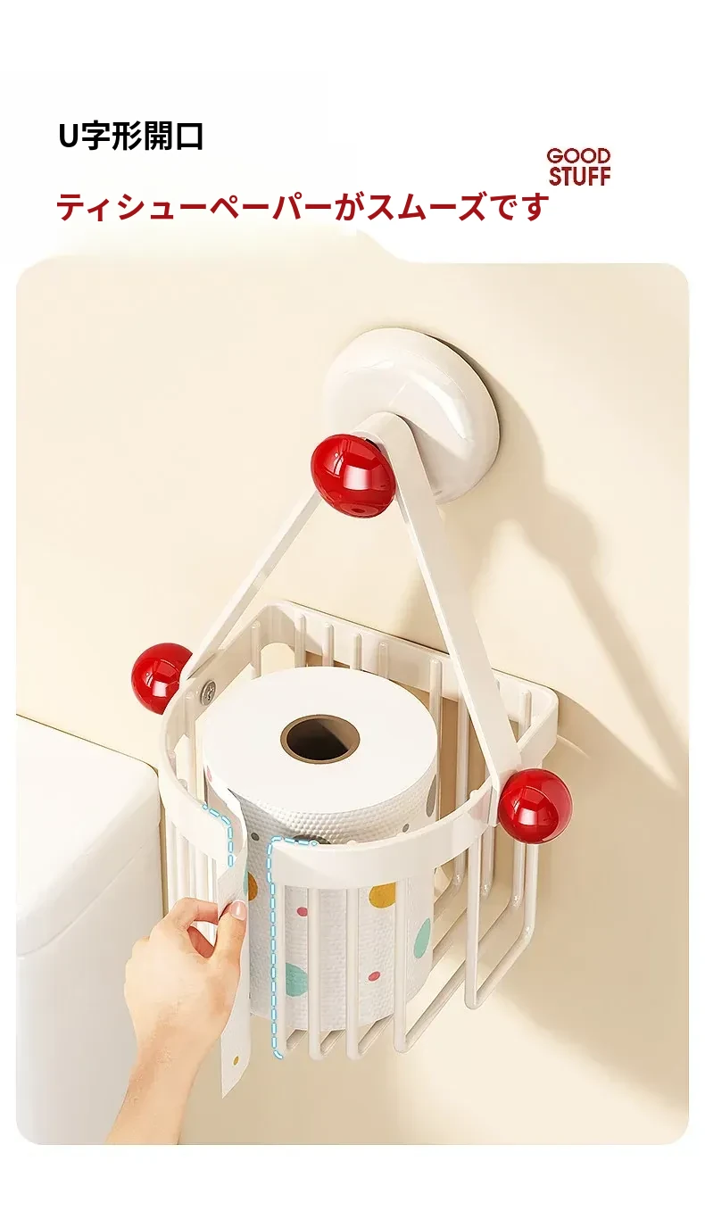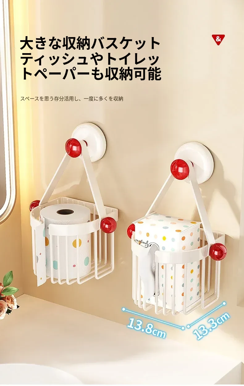 吸盤式トイレットペーパーホルダー - 壁掛けでおしゃれに収納!穴を開けずに簡単取り付け、バスルームやトイレに最適な便利アイテム。洗面台やシャワーエリアをスッキリ整理整頓!