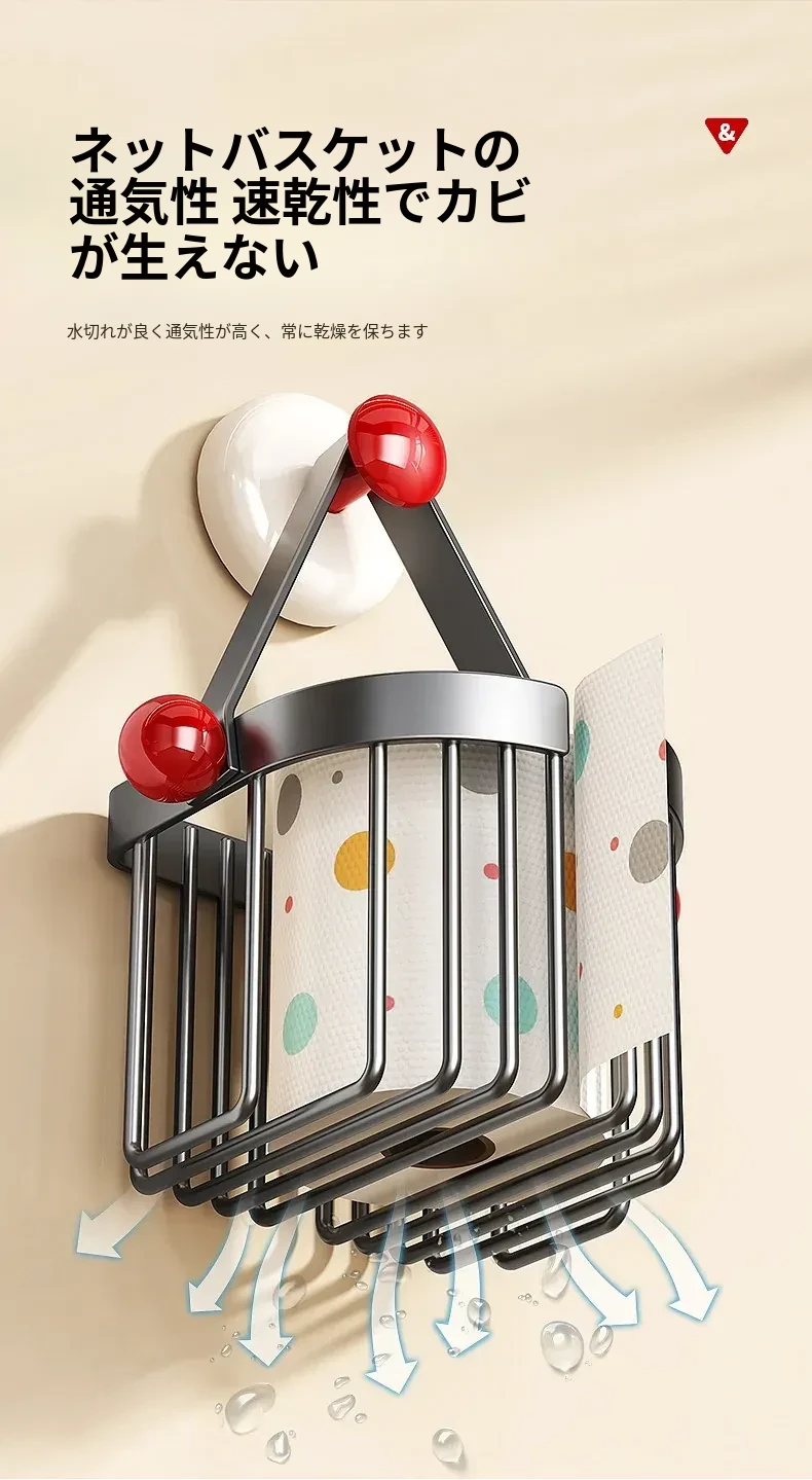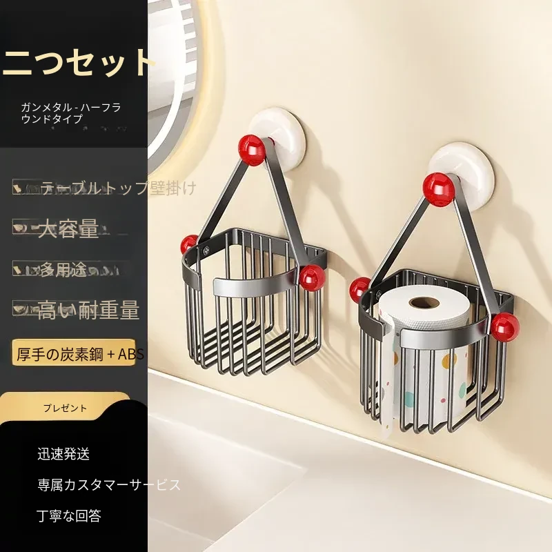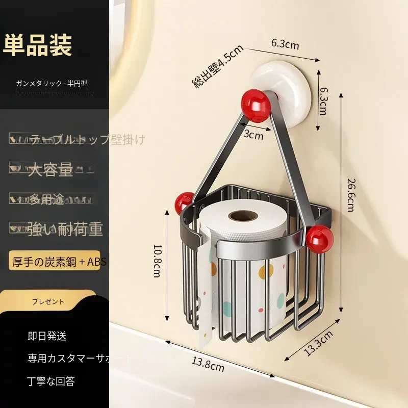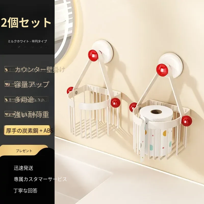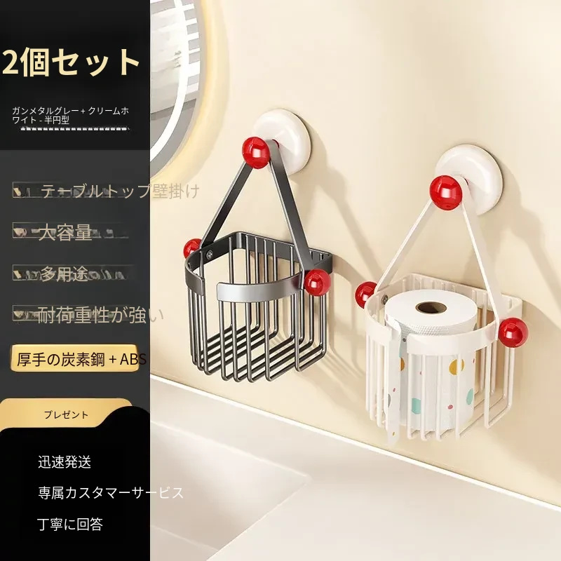 吸盤式トイレットペーパーホルダー - 壁掛けでおしゃれに収納!穴を開けずに簡単取り付け、バスルームやトイレに最適な便利アイテム。洗面台やシャワーエリアをスッキリ整理整頓!