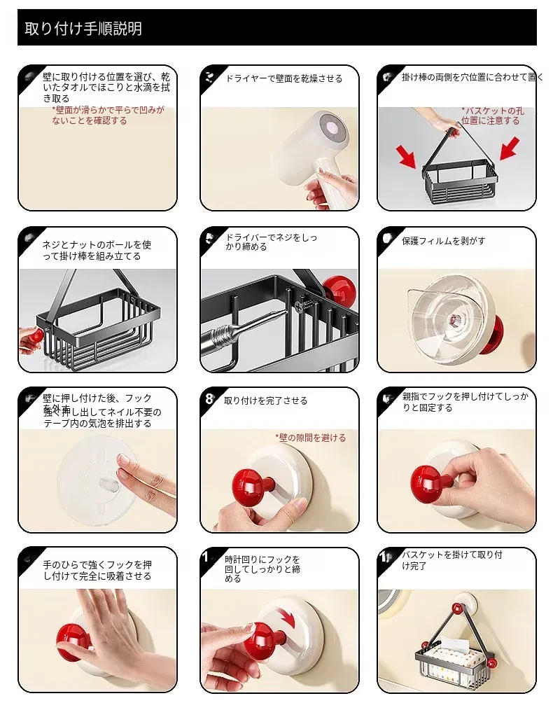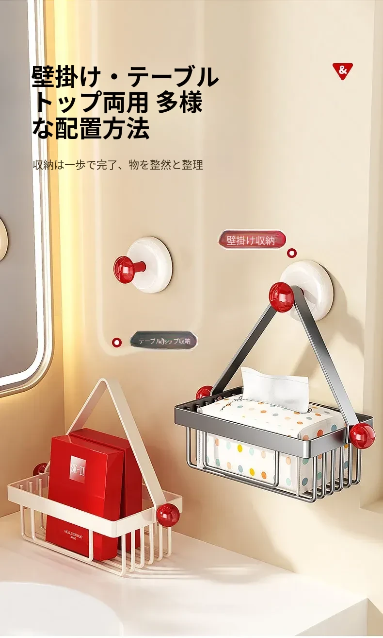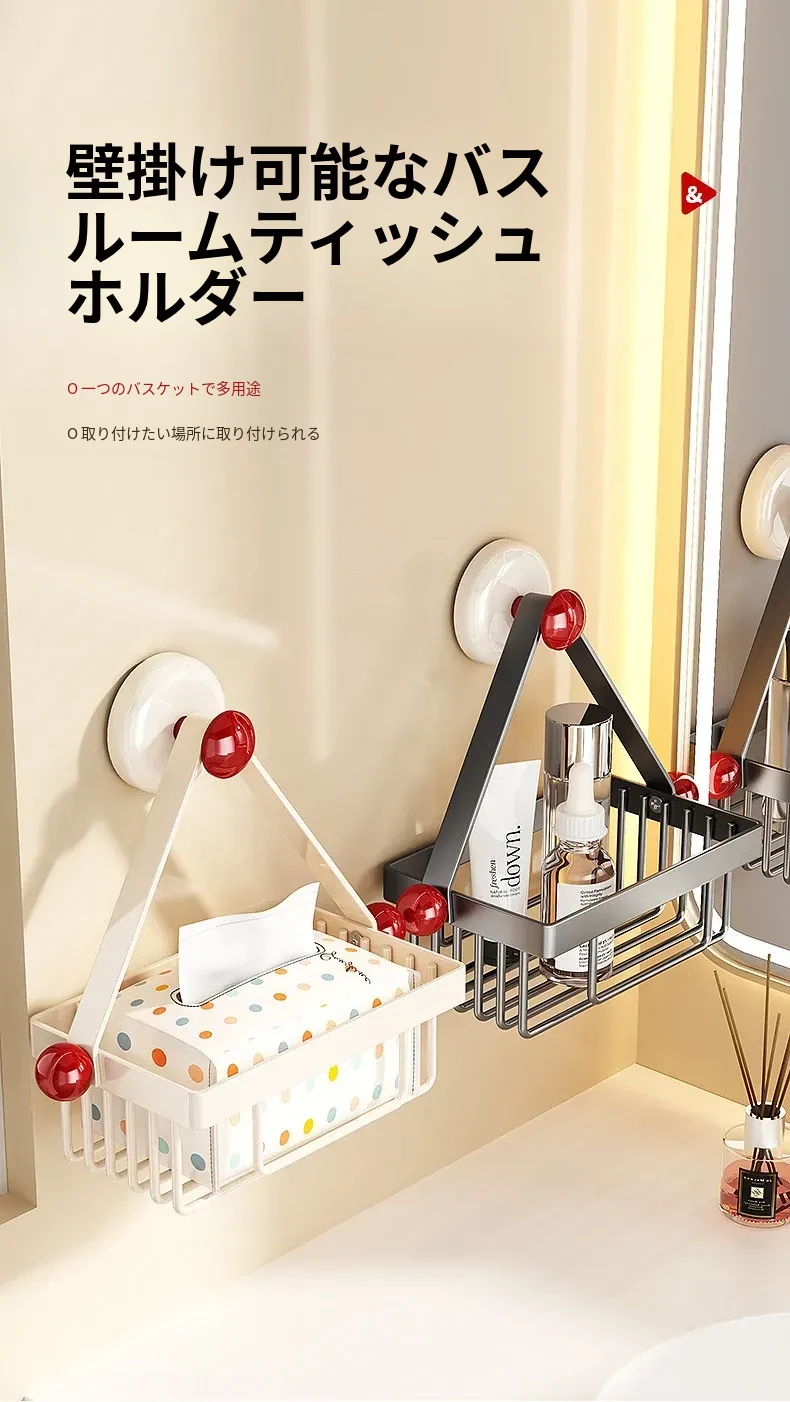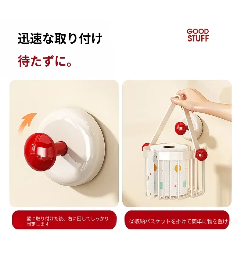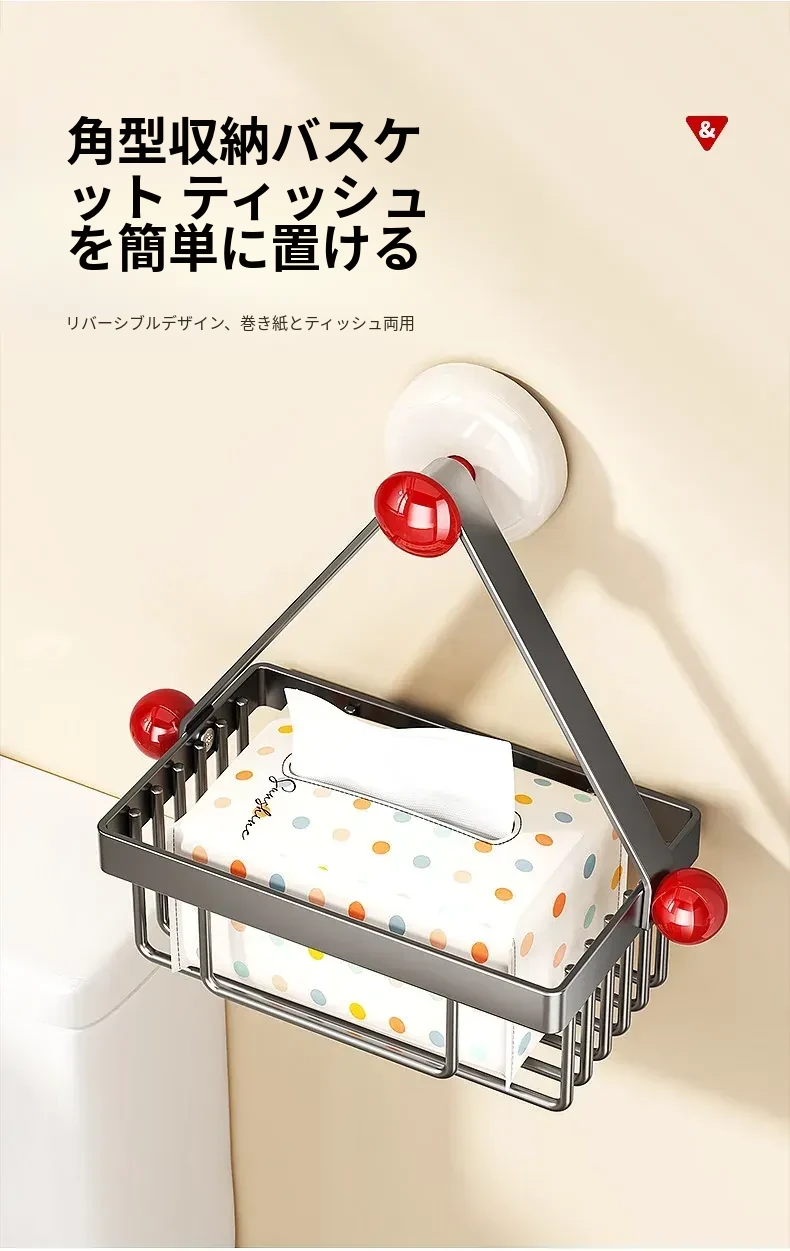 吸盤式トイレットペーパーホルダー - 壁掛けでおしゃれに収納!穴を開けずに簡単取り付け、バスルームやトイレに最適な便利アイテム。洗面台やシャワーエリアをスッキリ整理整頓!