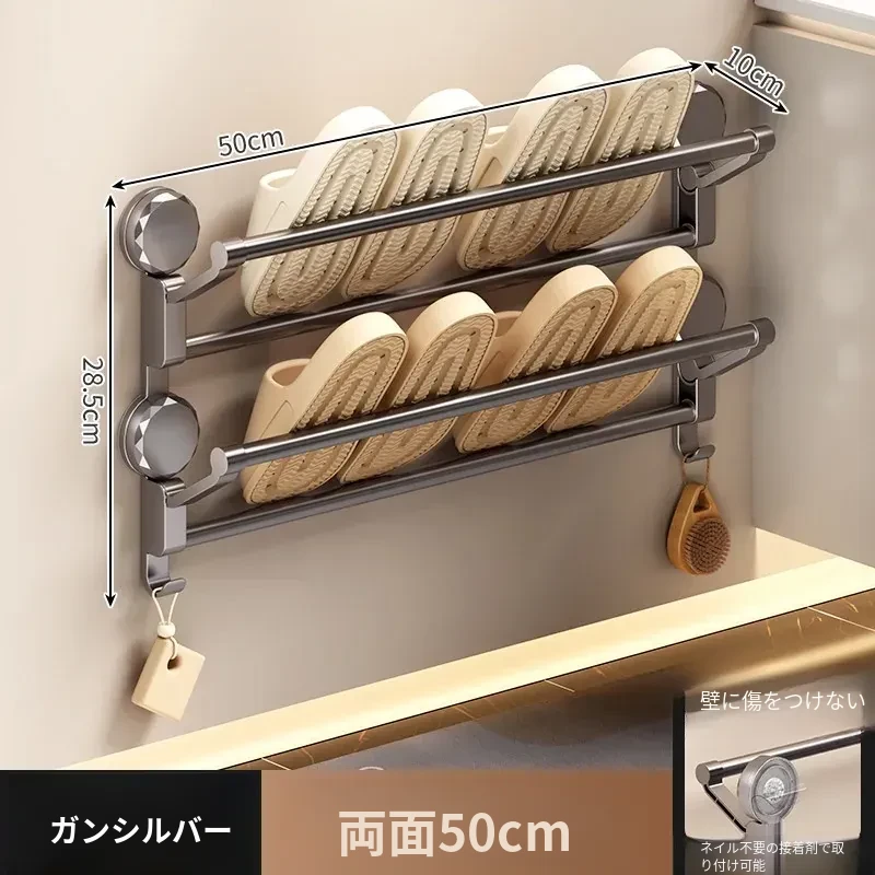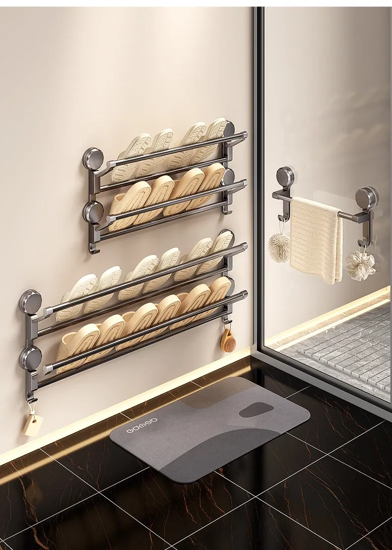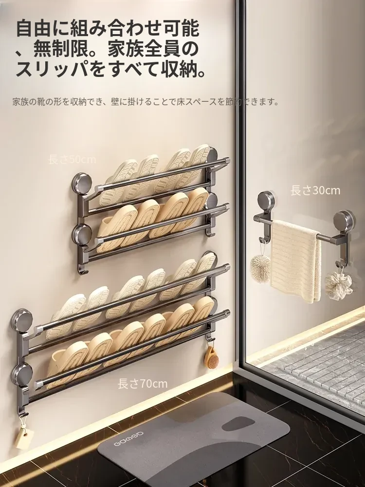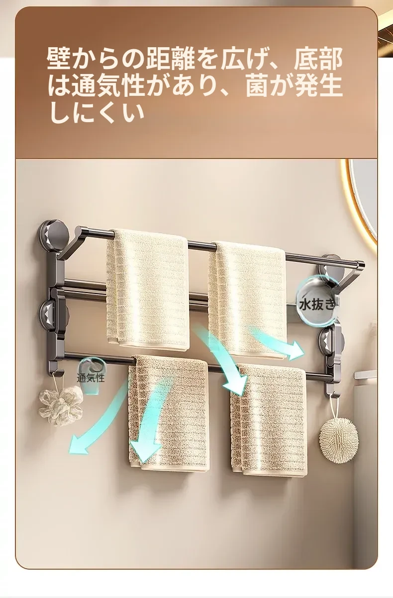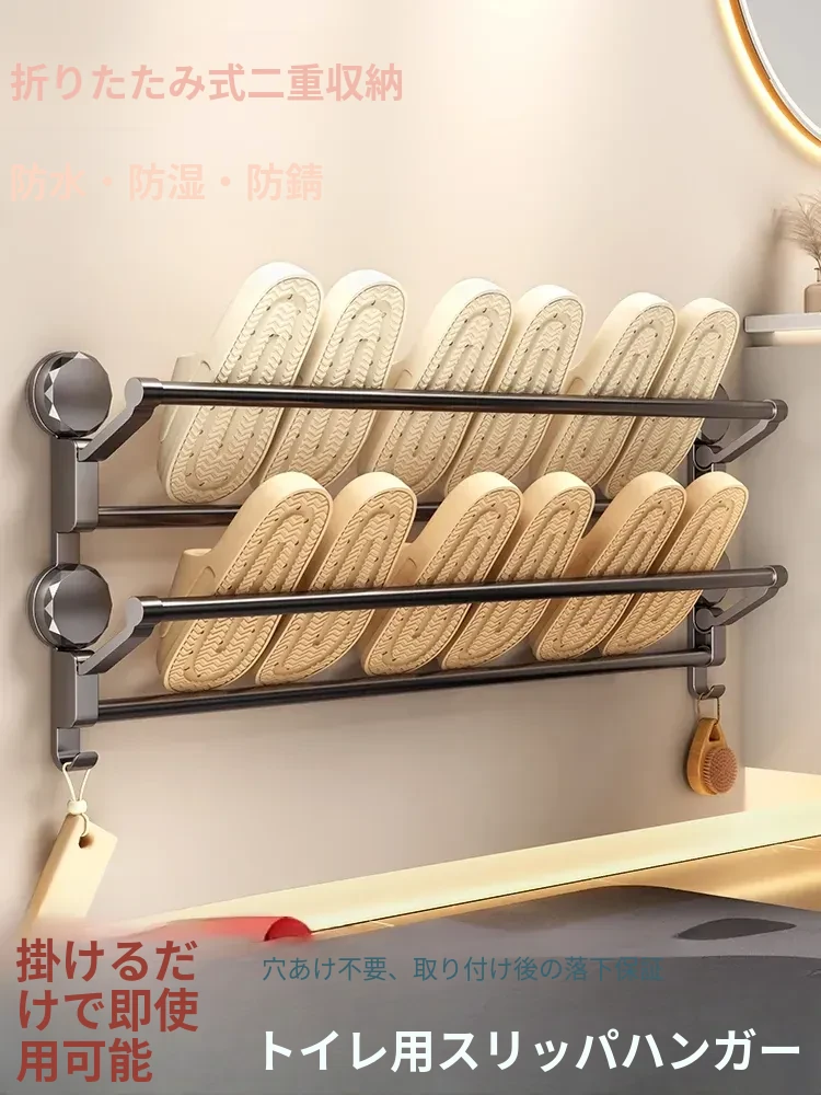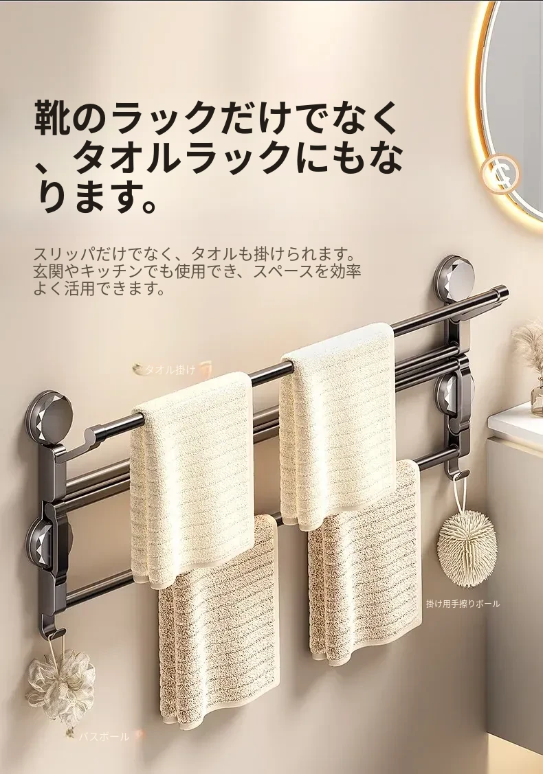 吸盤式トイレドア後折りたたみタオルラック - 壁掛け靴収納の必需品!穴あけ不要で簡単取り付け、バスルームをスッキリ整理整頓!