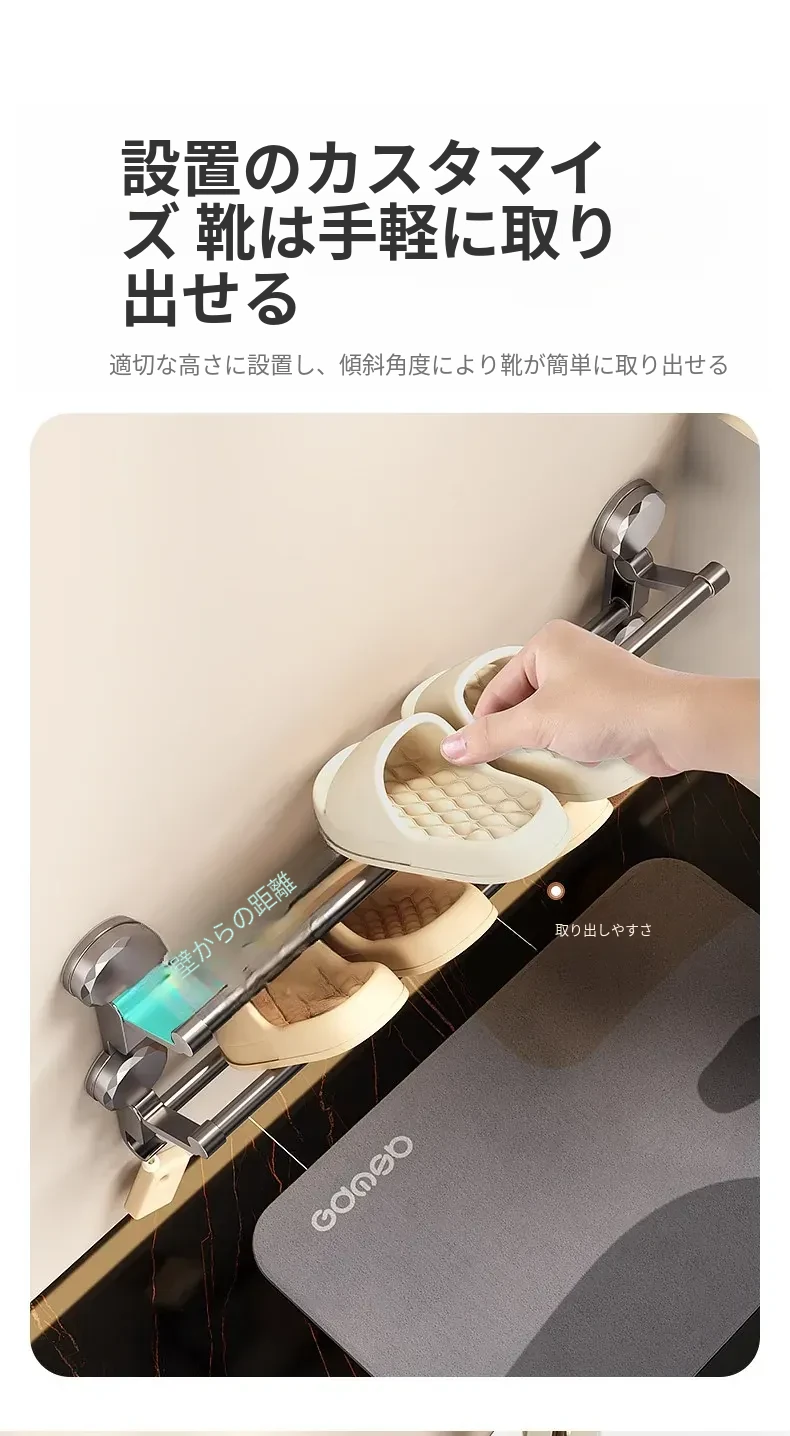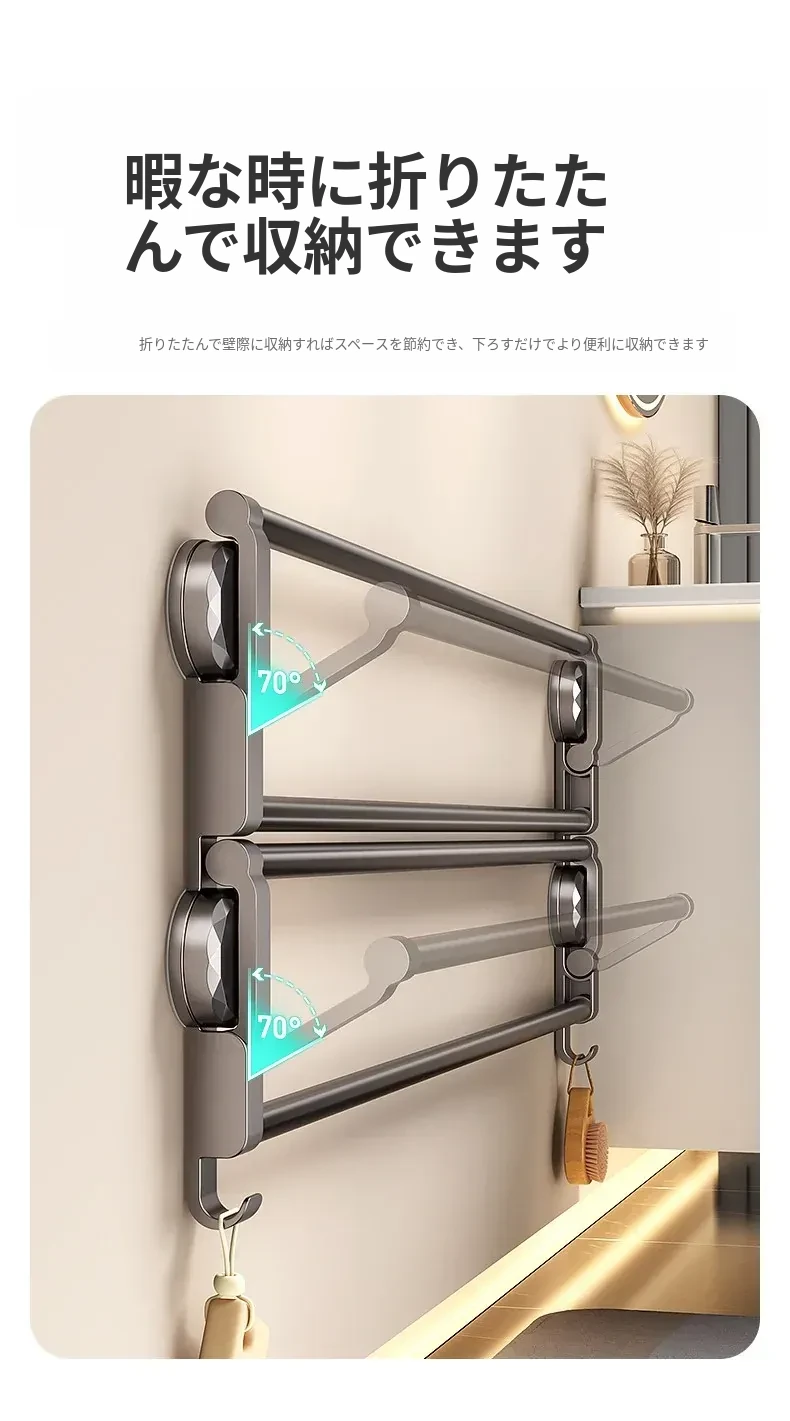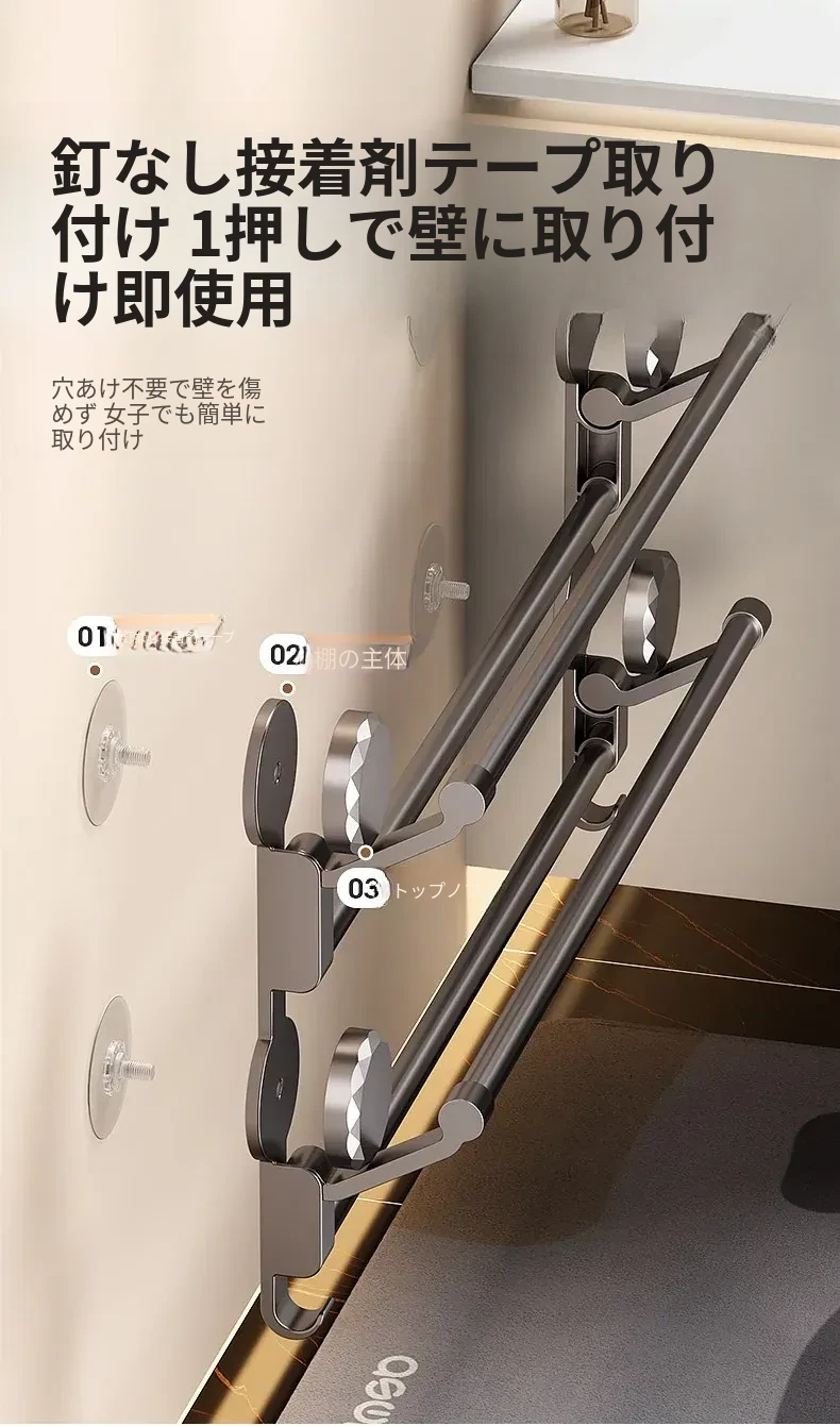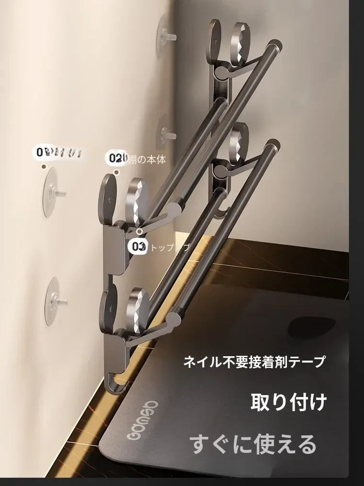 吸盤式トイレドア後折りたたみタオルラック - 壁掛け靴収納の必需品!穴あけ不要で簡単取り付け、バスルームをスッキリ整理整頓!