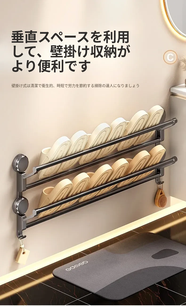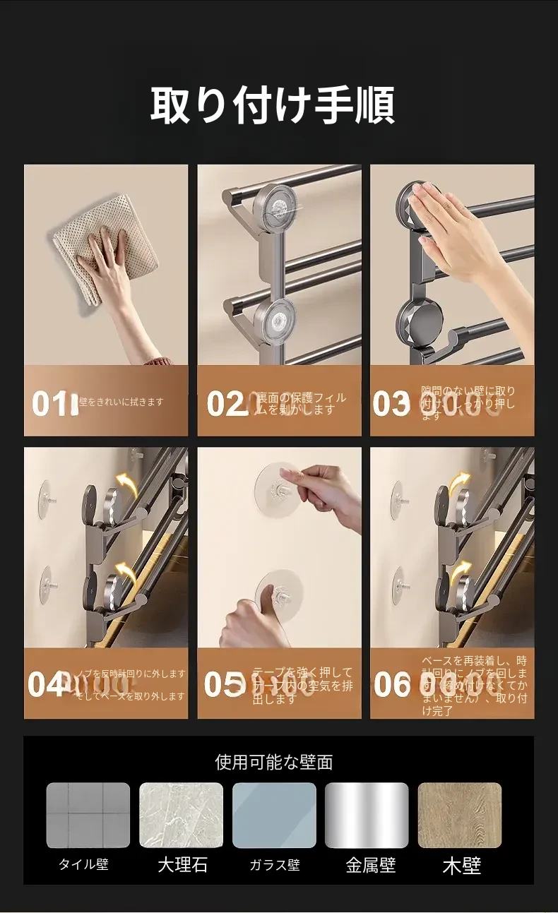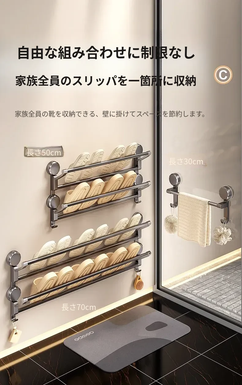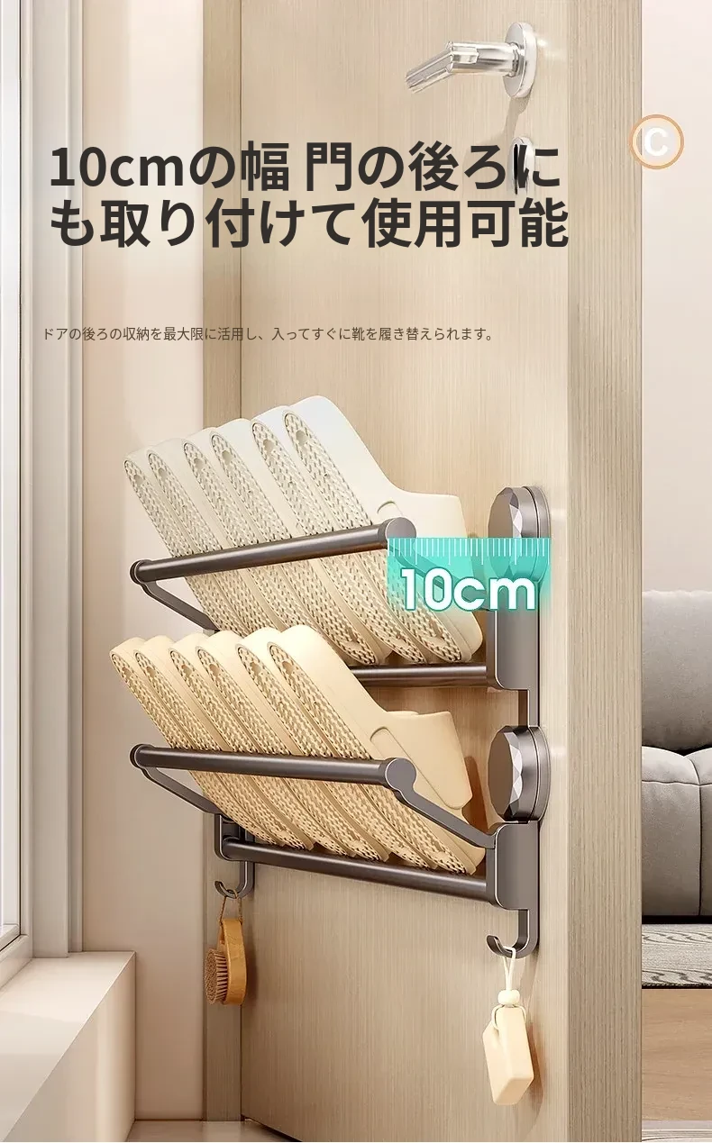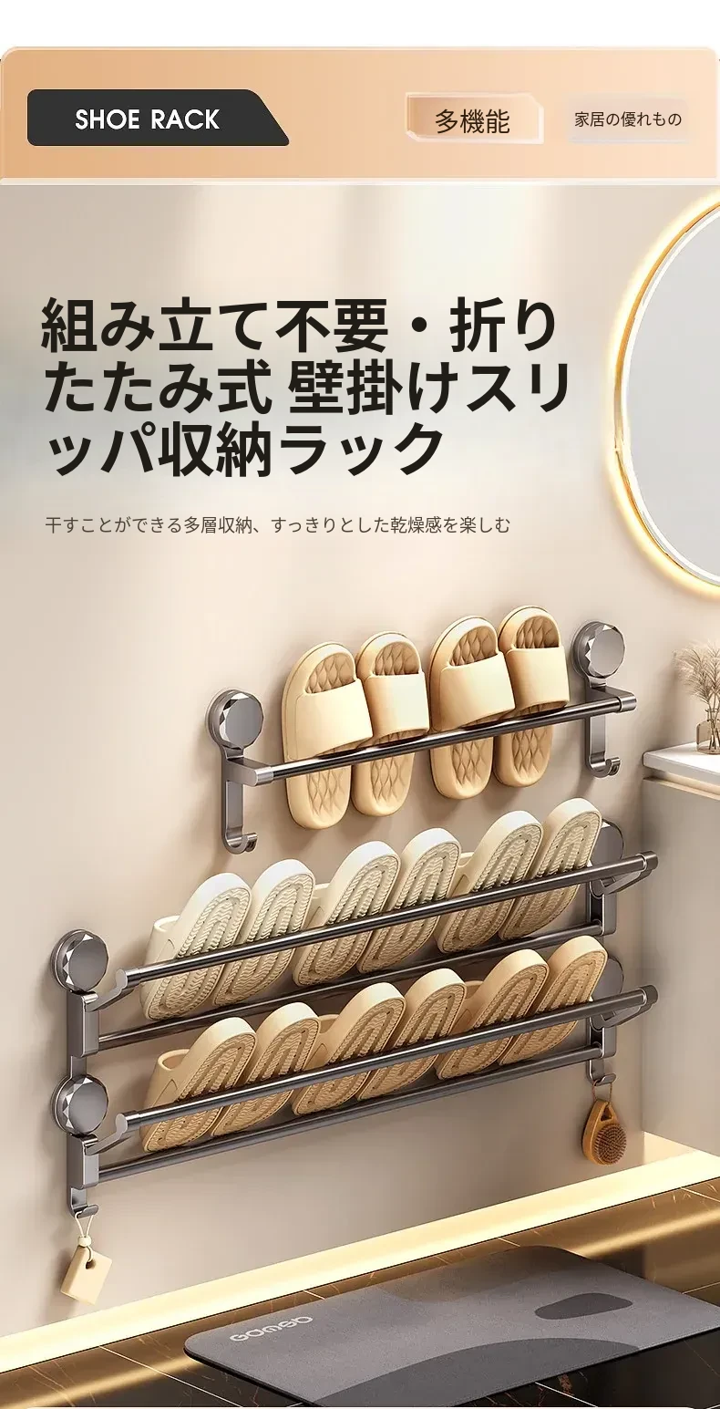 吸盤式トイレドア後折りたたみタオルラック - 壁掛け靴収納の必需品!穴あけ不要で簡単取り付け、バスルームをスッキリ整理整頓!