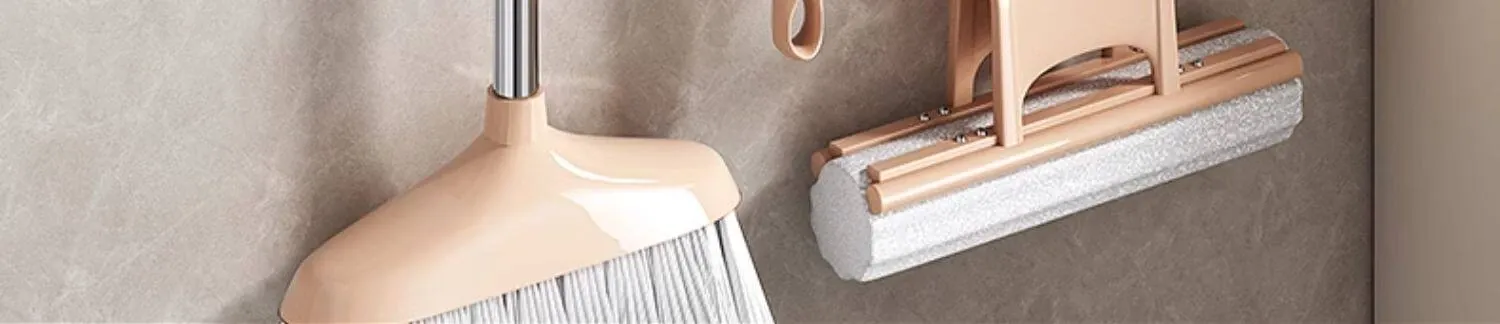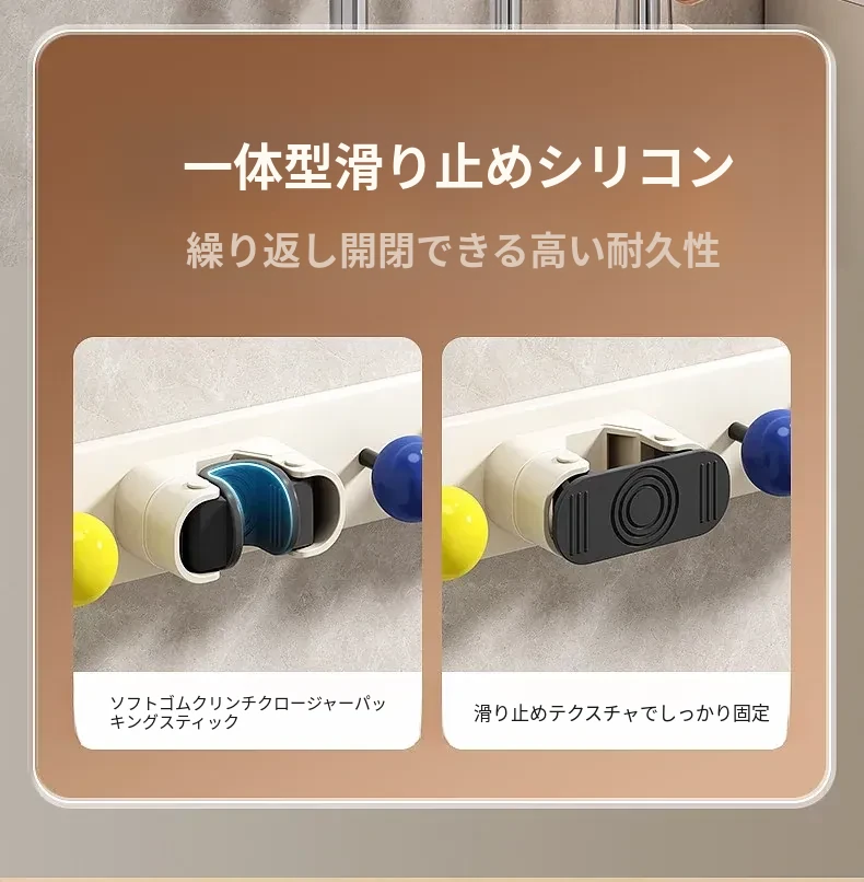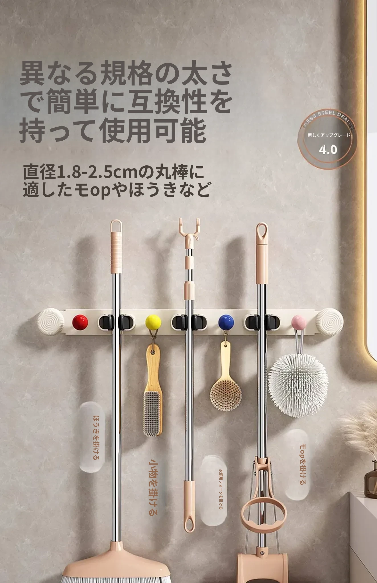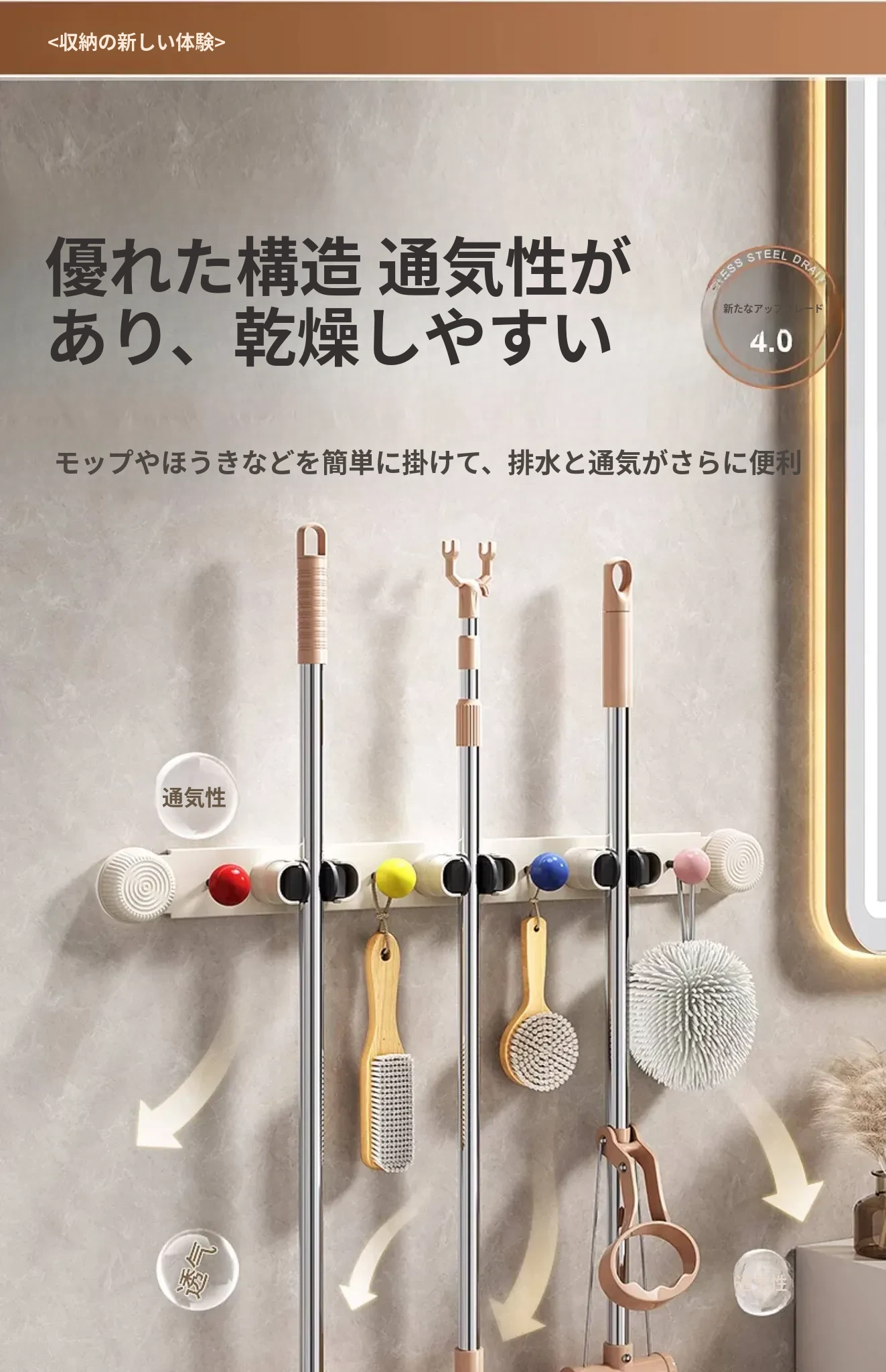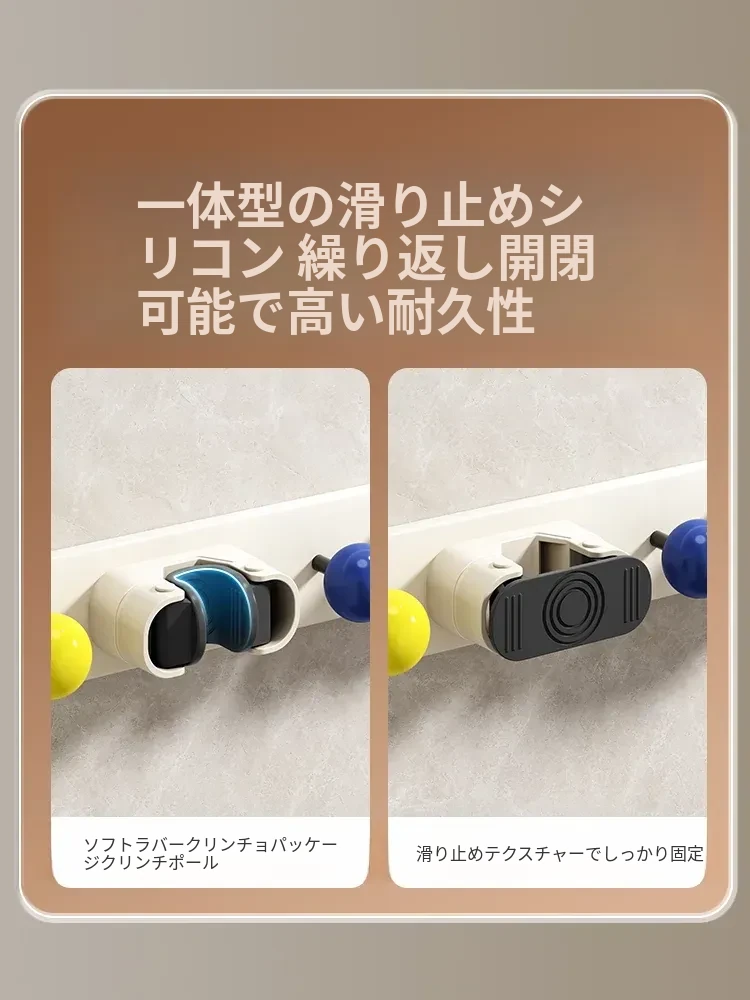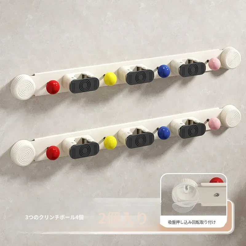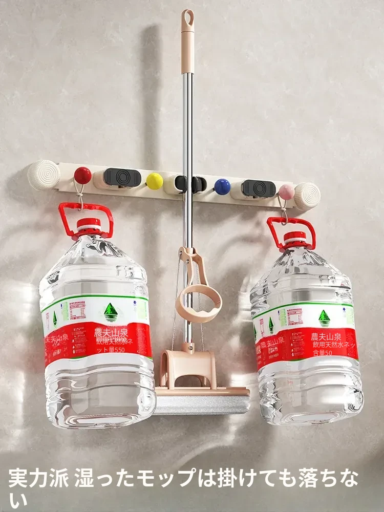 吸盤モップ壁掛けクリップ - 穴を開けずに簡単取り付け!バスルームやトイレの掃除道具をすっきり収納できる、便利なフック付きの固定ラック。お掃除がもっと楽しくなるアイテムです!