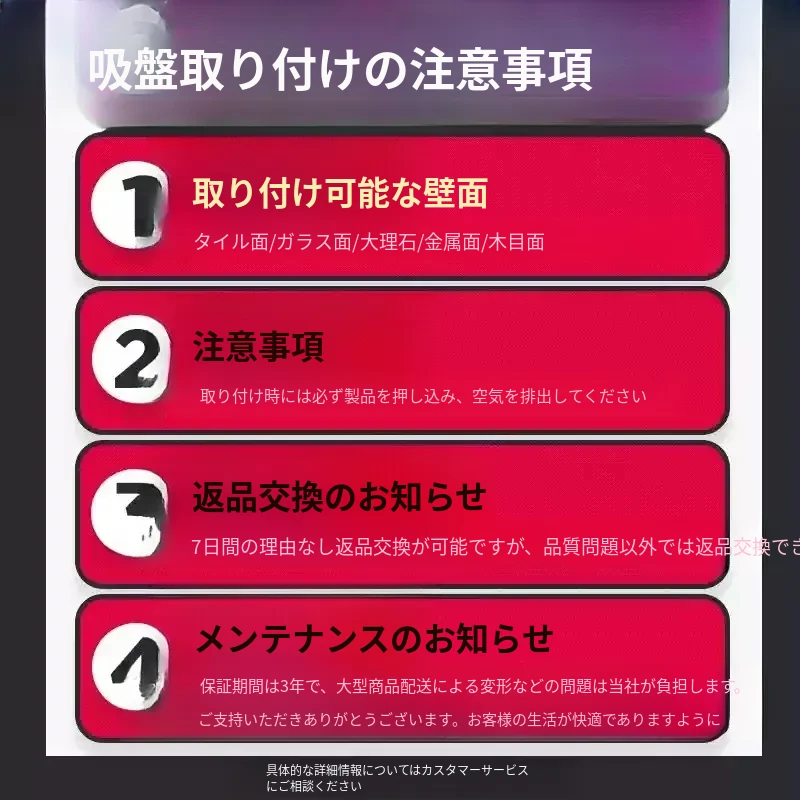 ❗注:"吸盤は壁面に使用できます" 説明をクリックしてください⭐タイル面の使用をお勧めします⭐