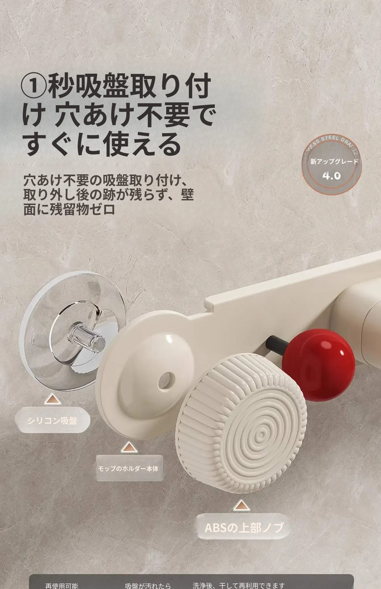 ⭐ 吸盤モップスタンド ⭐ 2クリップ+3クリップ