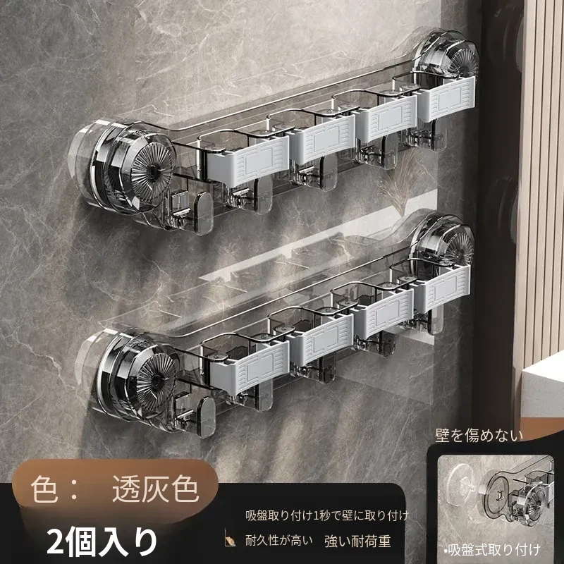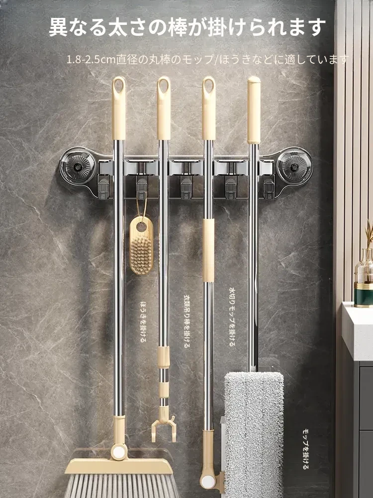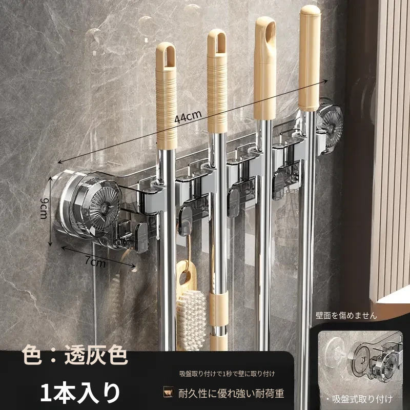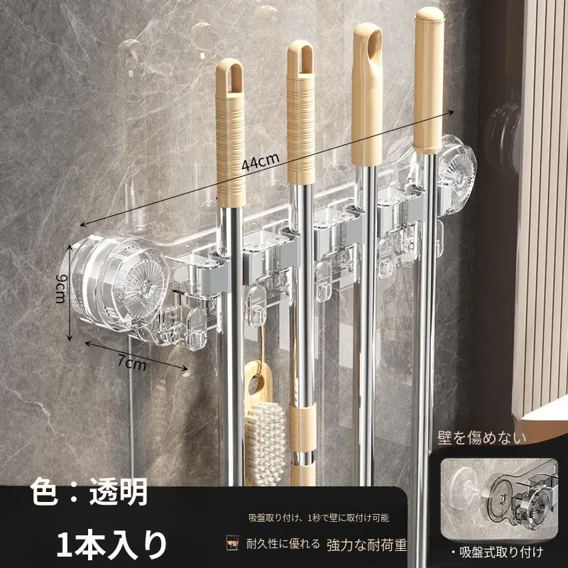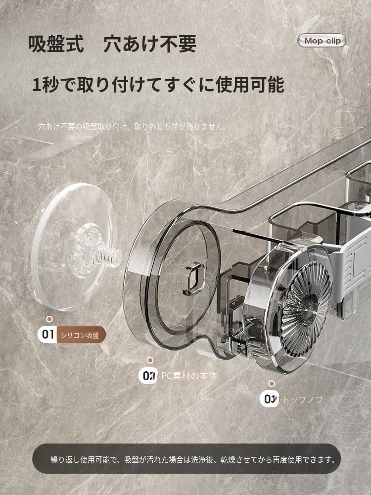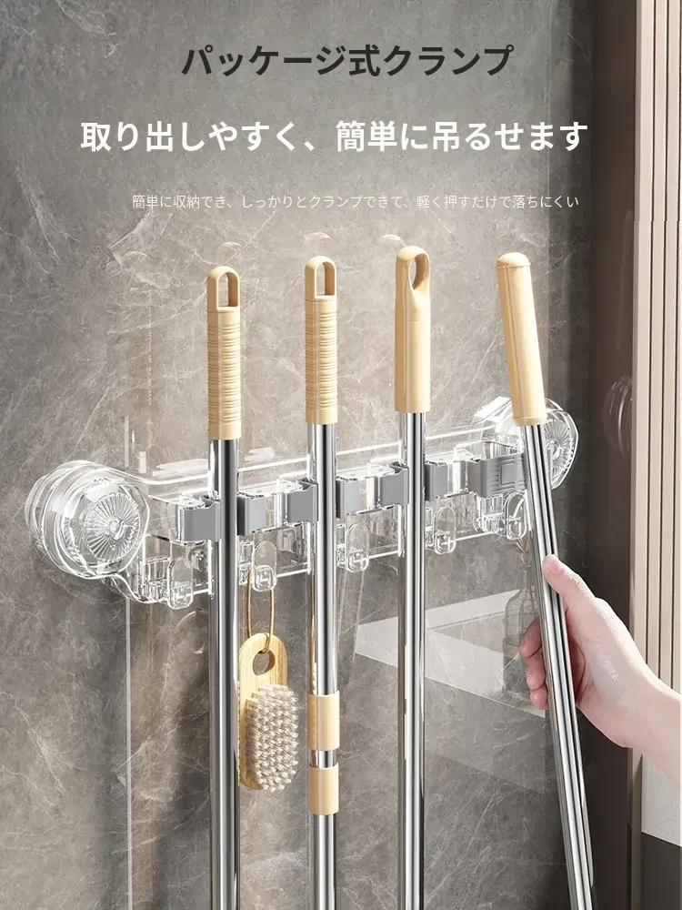 吸盤式モップ壁掛けクリップ、穴あけ不要の掃除道具!便利なモップホルダーで、トイレやバスルームの収納をスマートに!おしゃれで実用的な掃除用具ラックで、スペースを有効活用しましょう!