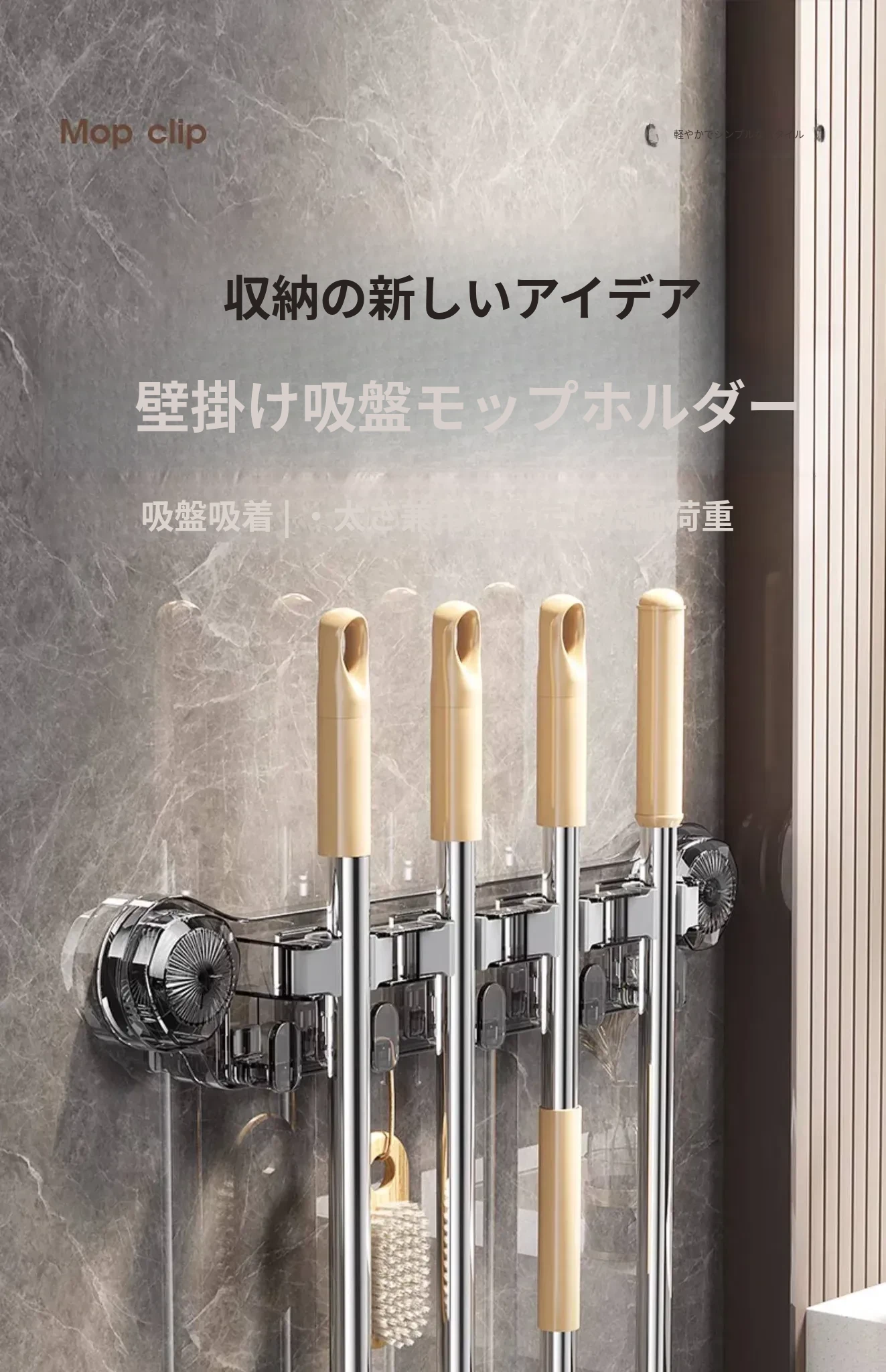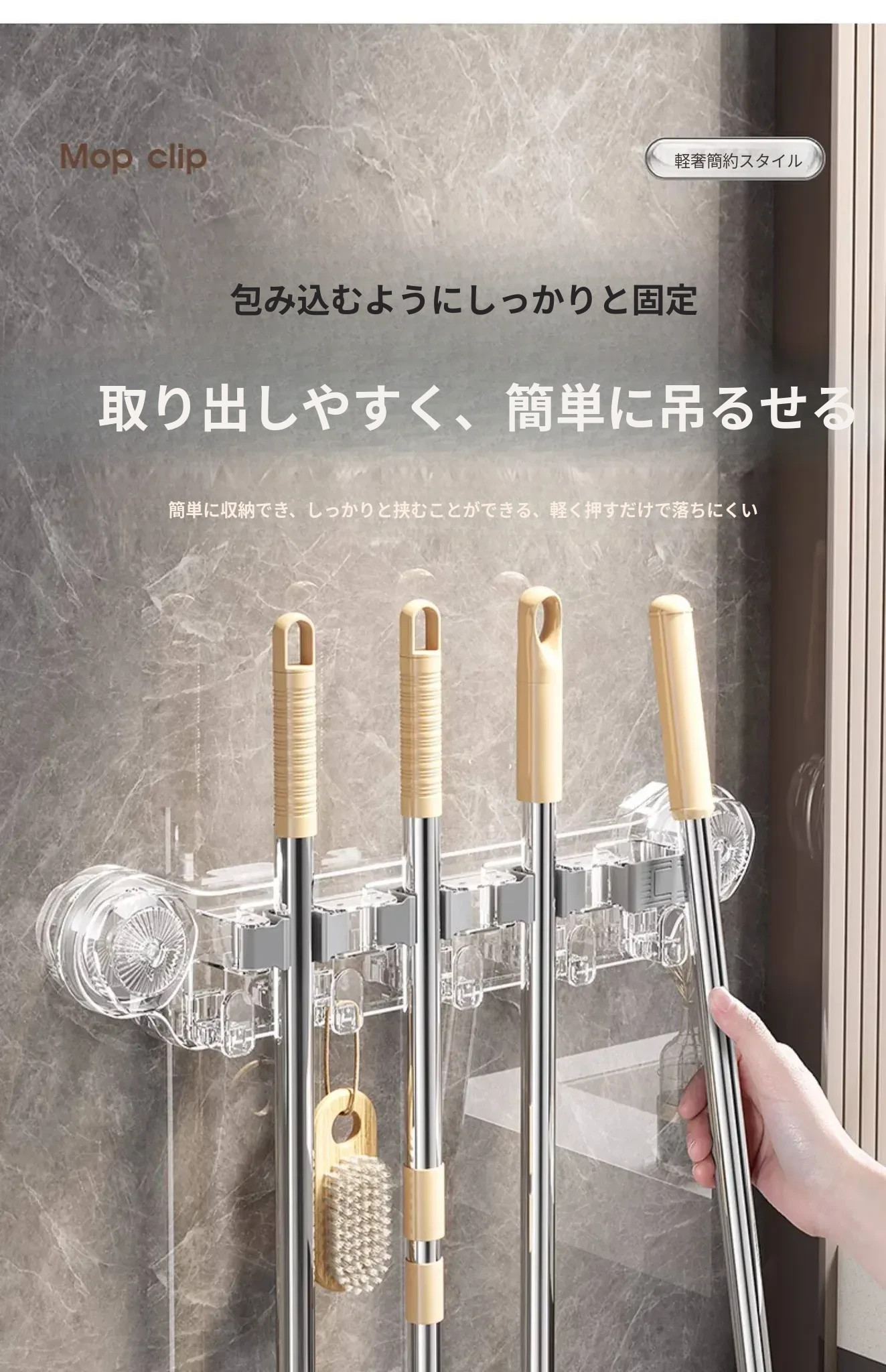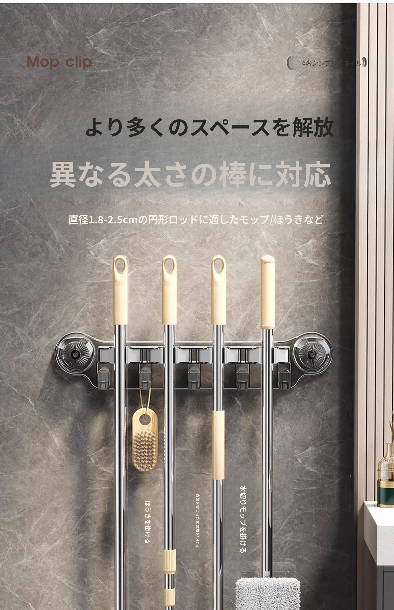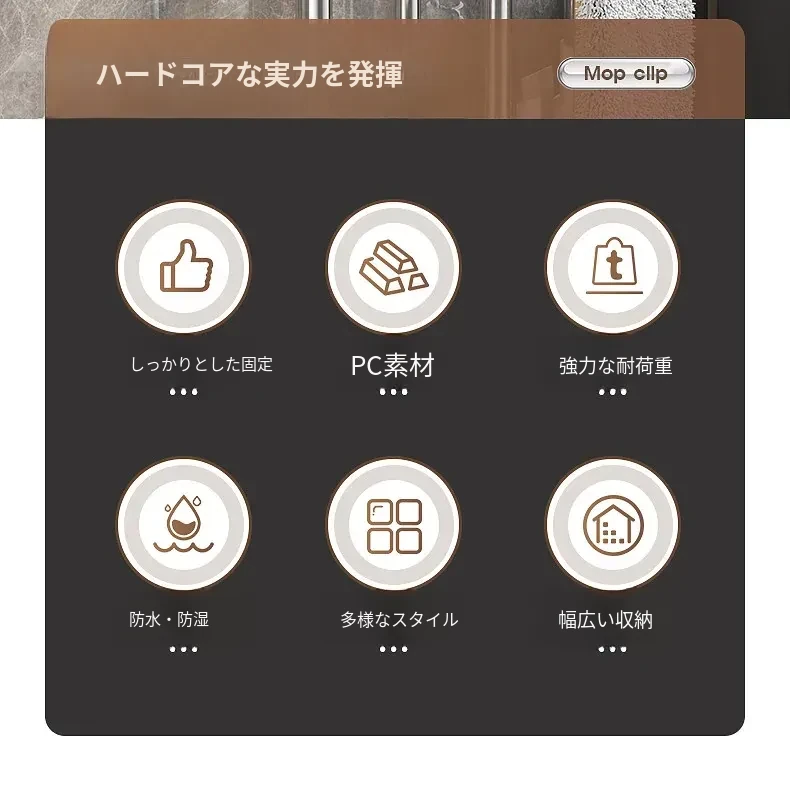 吸盤式モップ壁掛けクリップ、穴あけ不要の掃除道具!便利なモップホルダーで、トイレやバスルームの収納をスマートに!おしゃれで実用的な掃除用具ラックで、スペースを有効活用しましょう!