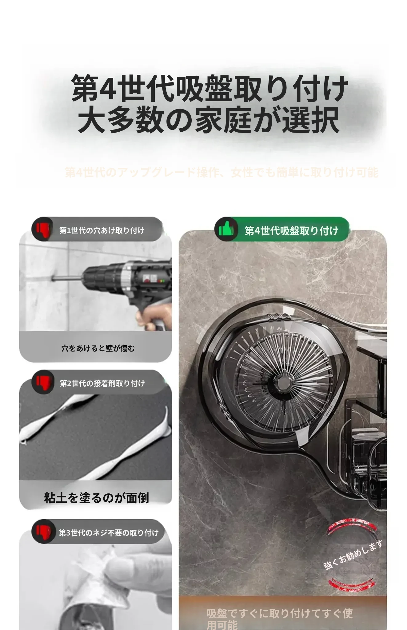 ❗ 注:"吸盤は壁面に使用できます" 説明を見るにはクリックしてください ⭐ タイル面の使用をお勧めします ⭐