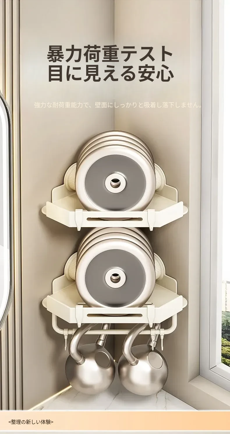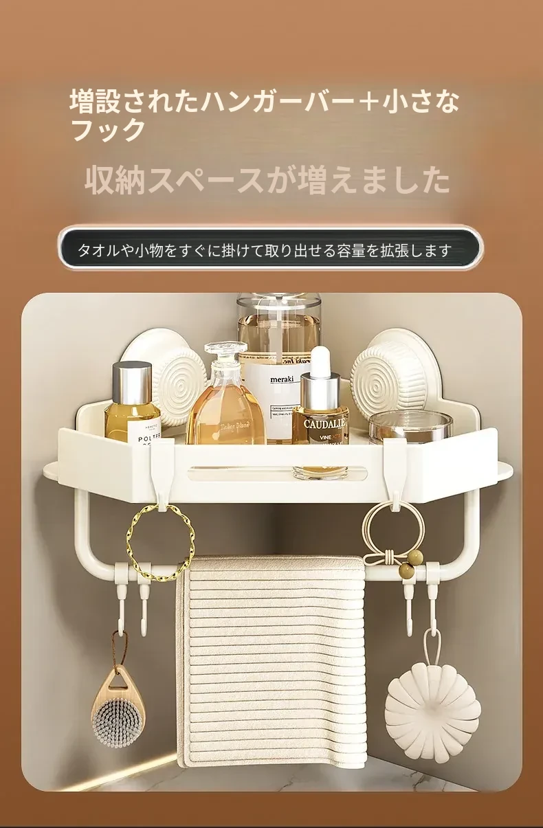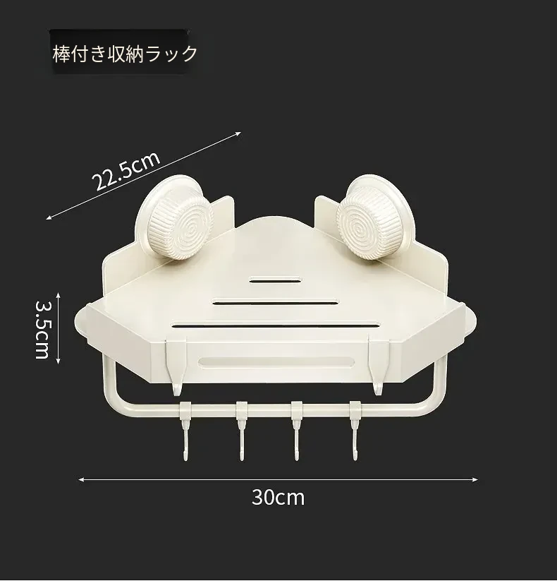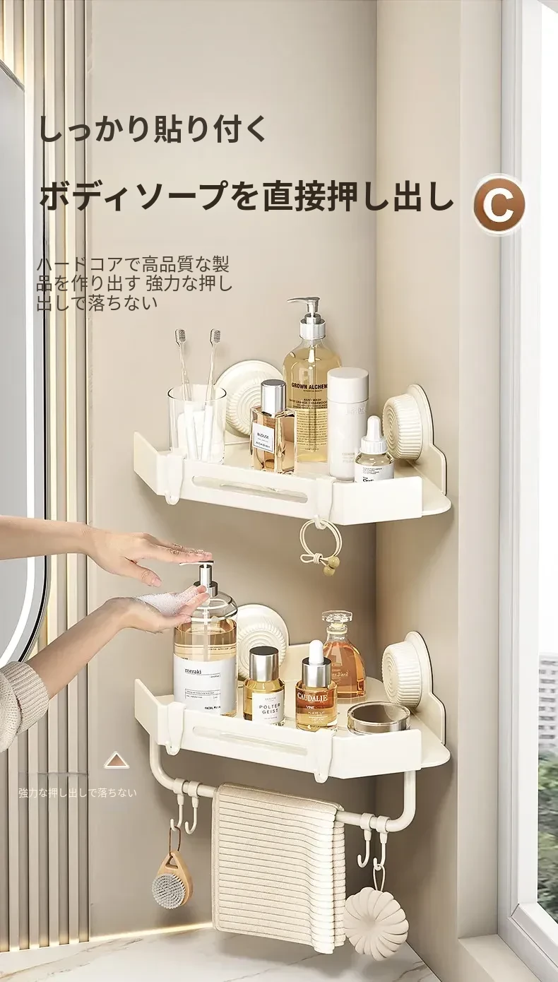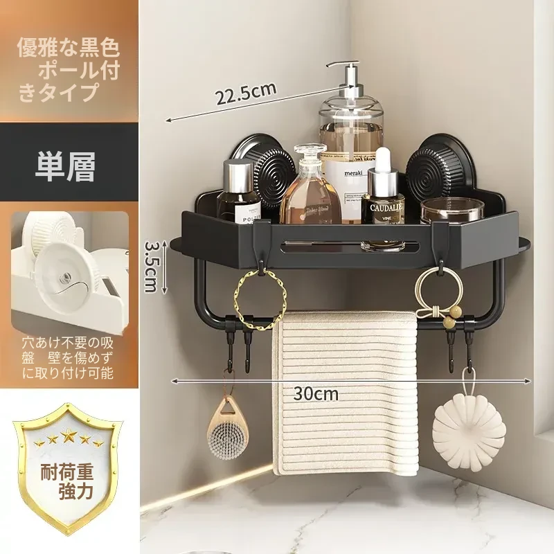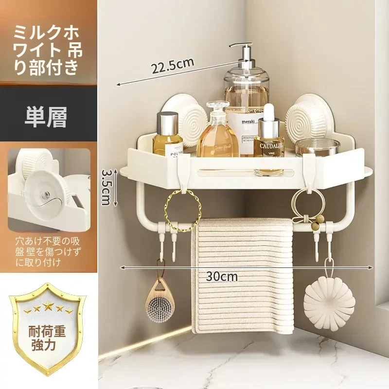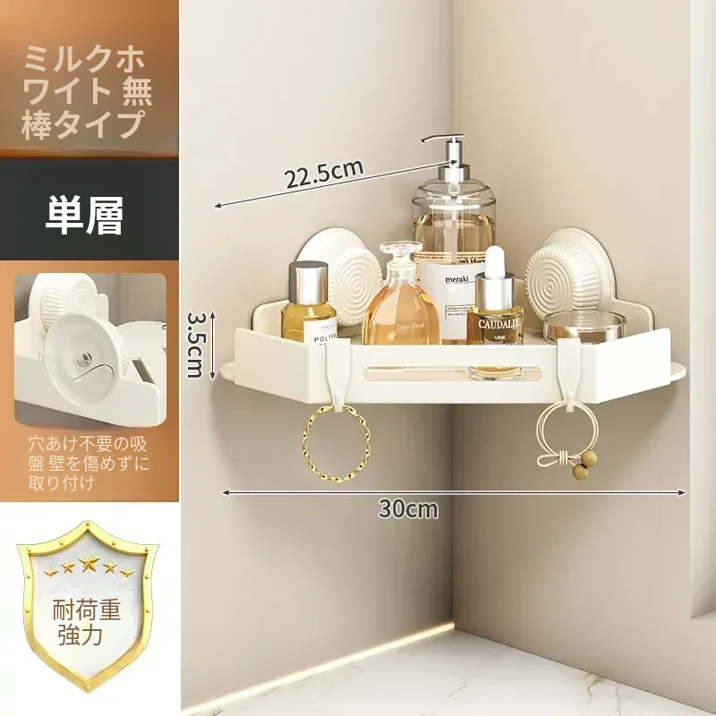 トイレ用吸盤三角収納ラック - 浴室の角にぴったり!穴を開けずに簡単取り付け、洗面台周りをスッキリ整理。使いやすさ抜群の壁掛け収納で、生活をもっと快適に!